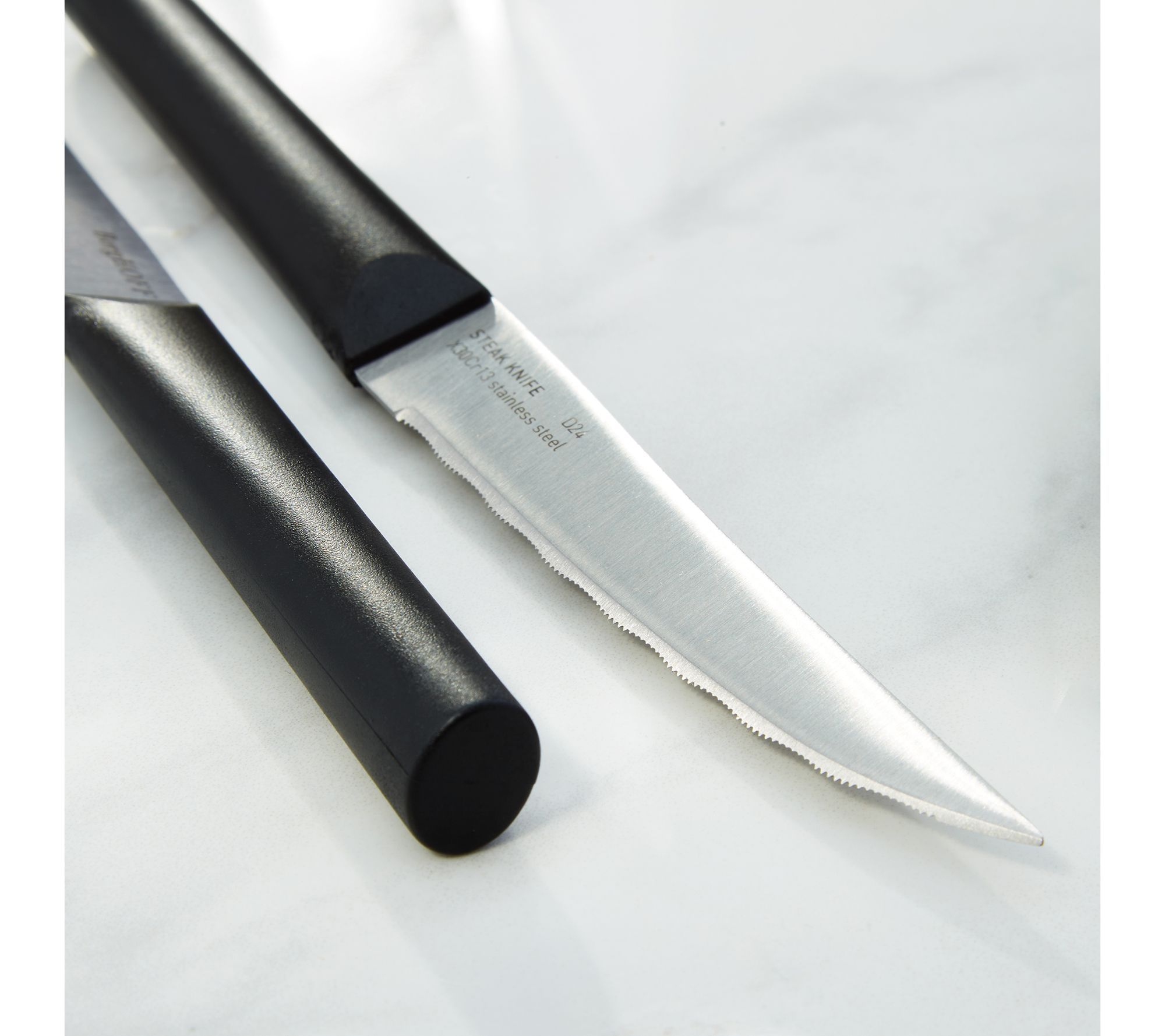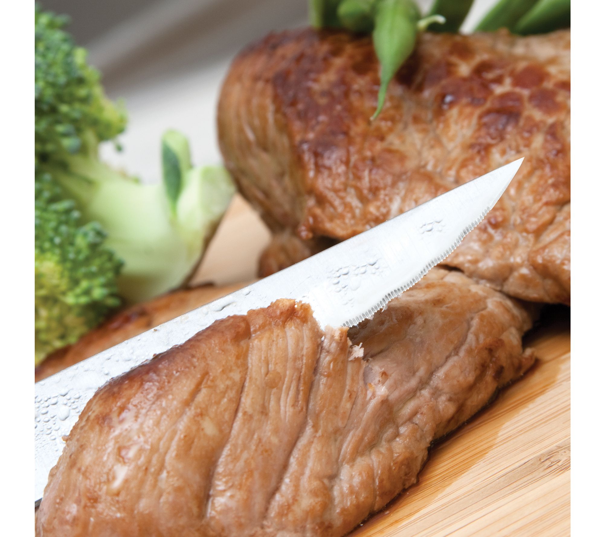 Enjoy your next meal with ease and elegance using the DiNA Matrix steak knife set. Each knife is crafted with a serrated edge to glide effortlessly through meats, while the ergonomic, comfort-grip handles provide a secure hold for precise cuts. Whether you're hosting a special dinner or simply enjoying a family meal, these knives add a touch of sophistication to your dining experience. From BergHOFF.