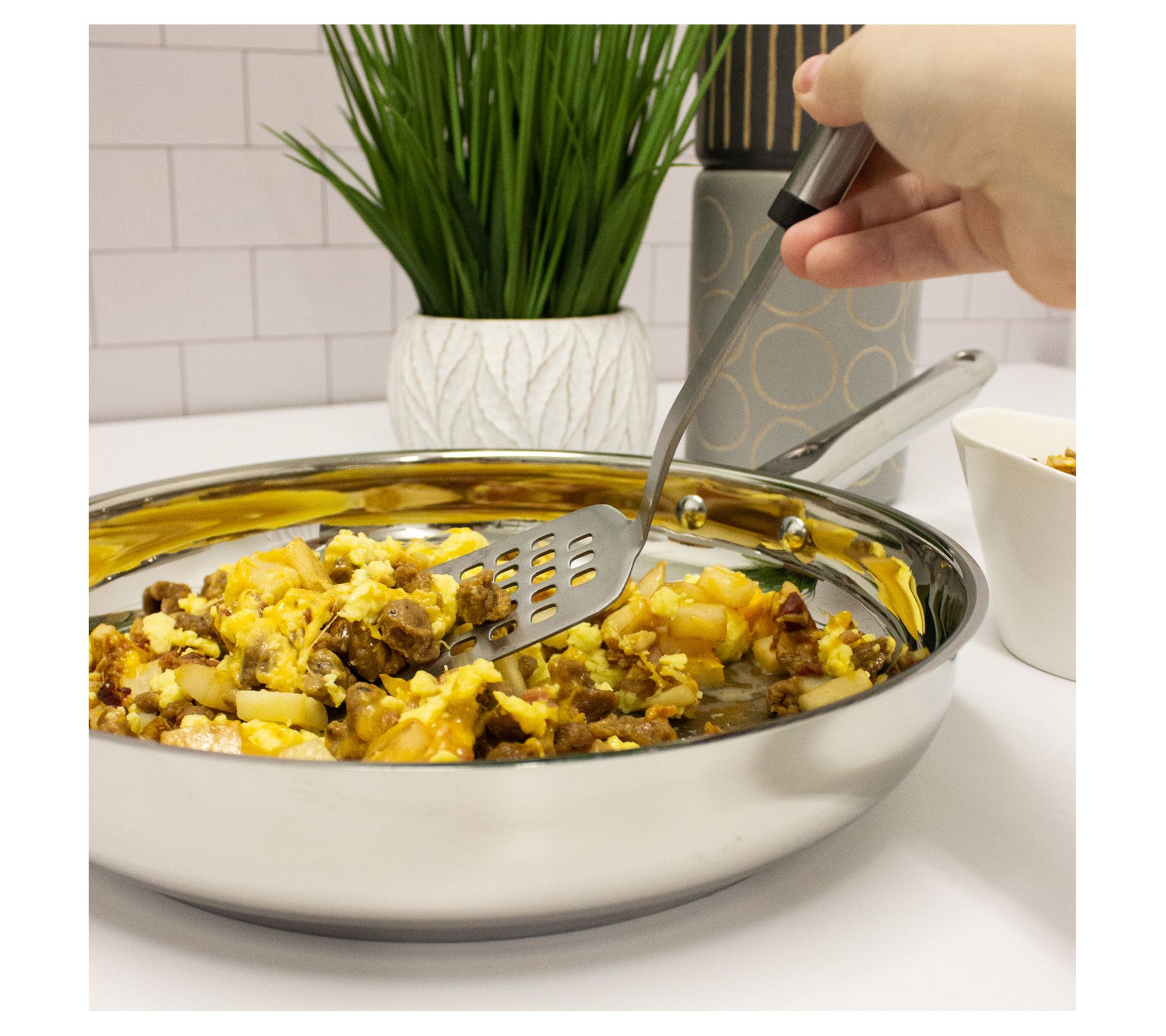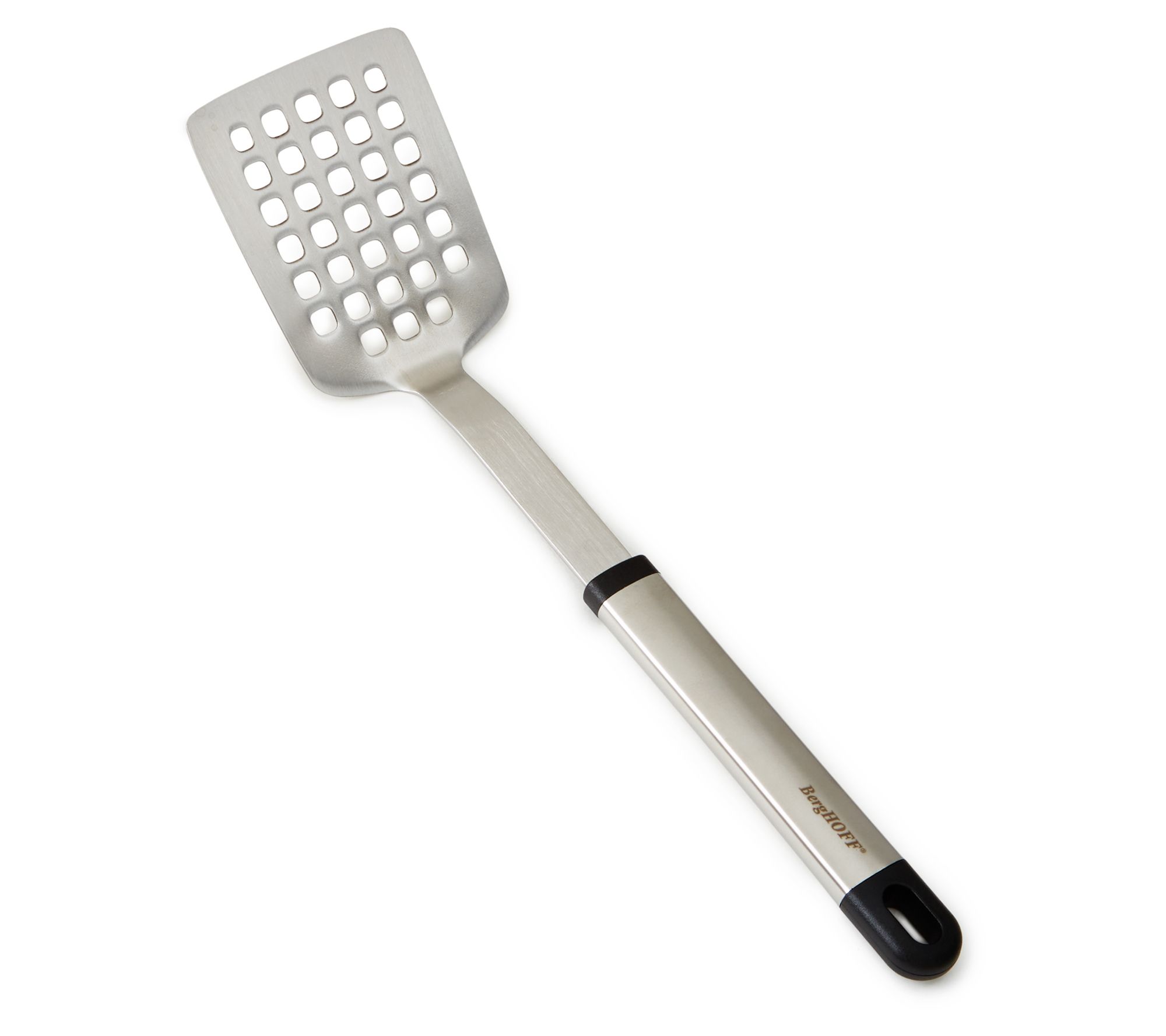 Flipping pancakes, burgers, or fish is a piece of cake with the Berghoff Essentials spatula. The wide head turns your foods efficiently and transfers them neatly without breakage, while fats and liquids drain easily through the perforations. From Berghoff.