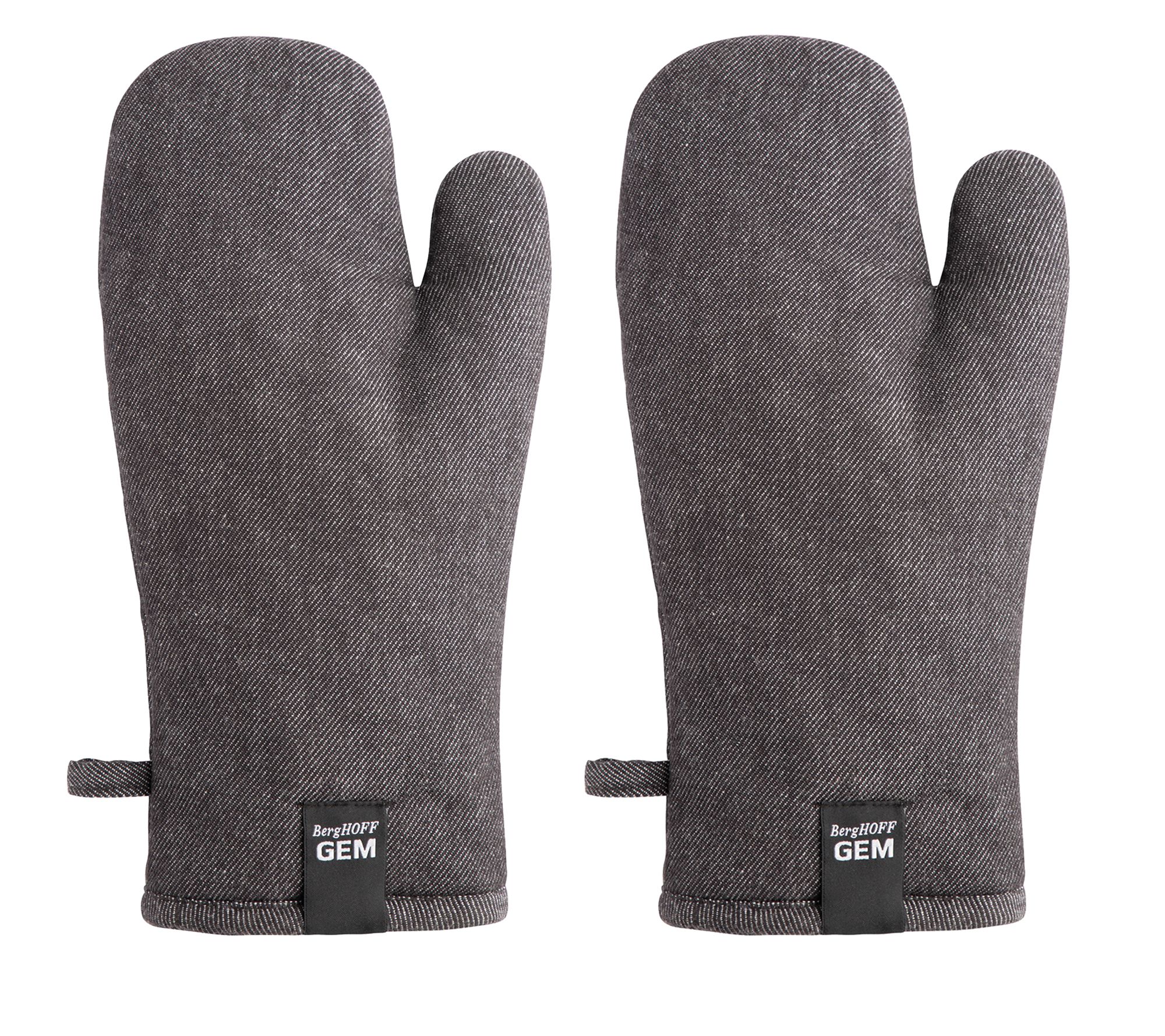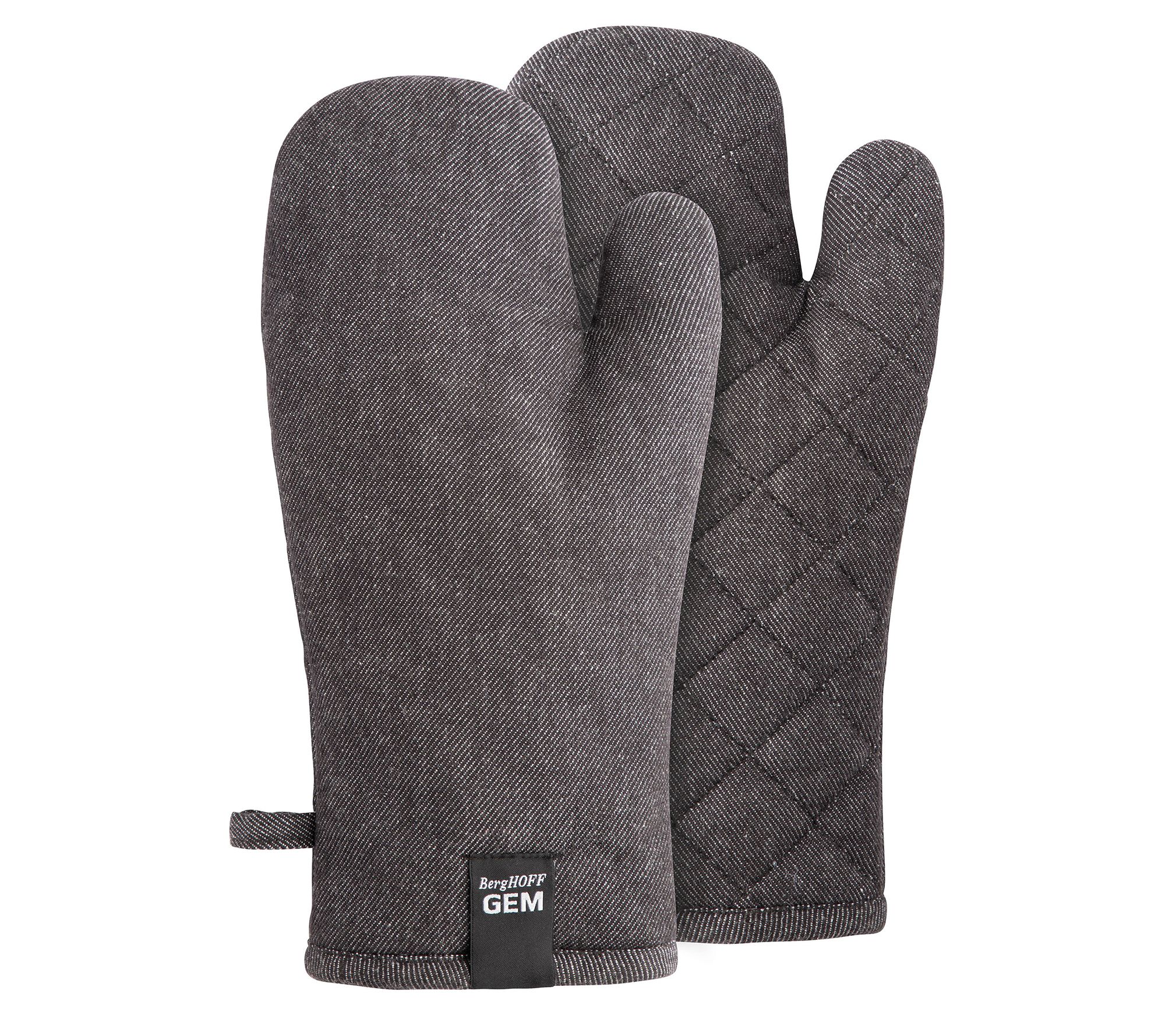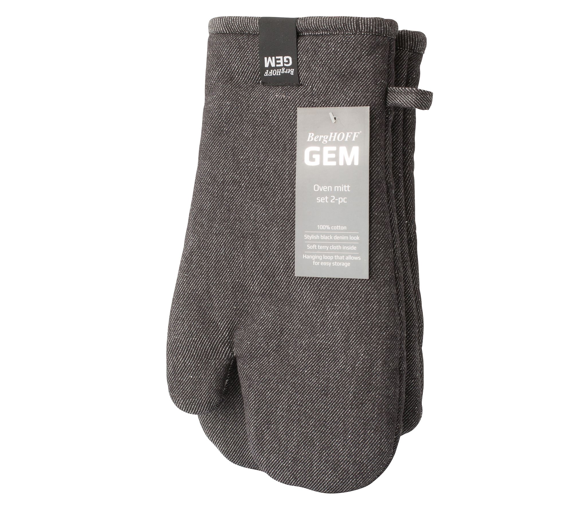 Keep your hands safe while cooking with these Gem oven gloves. Crafted from black denim cotton with a soft terry lining, they deliver durable protection and comfortable use. From BergHOFF.