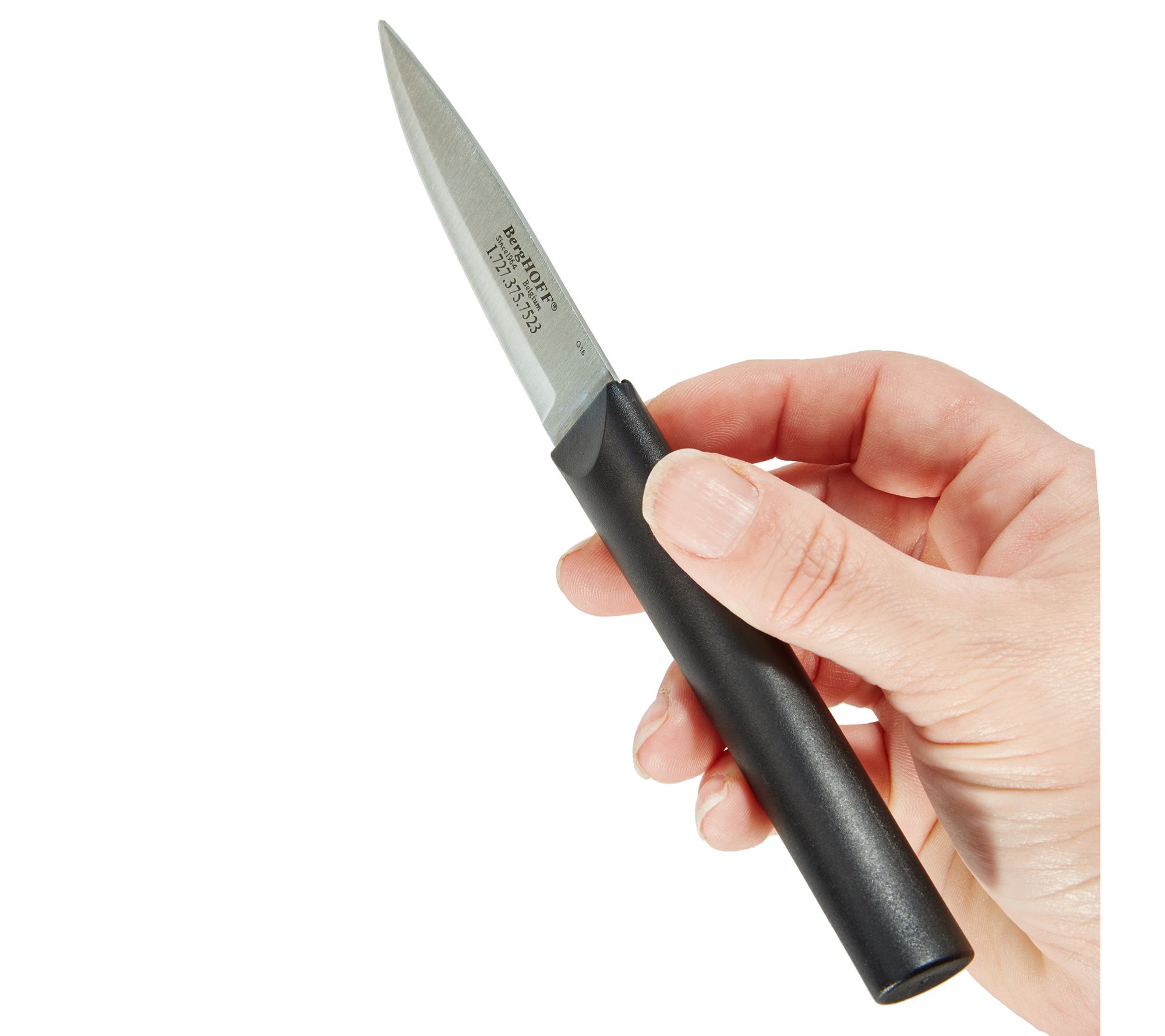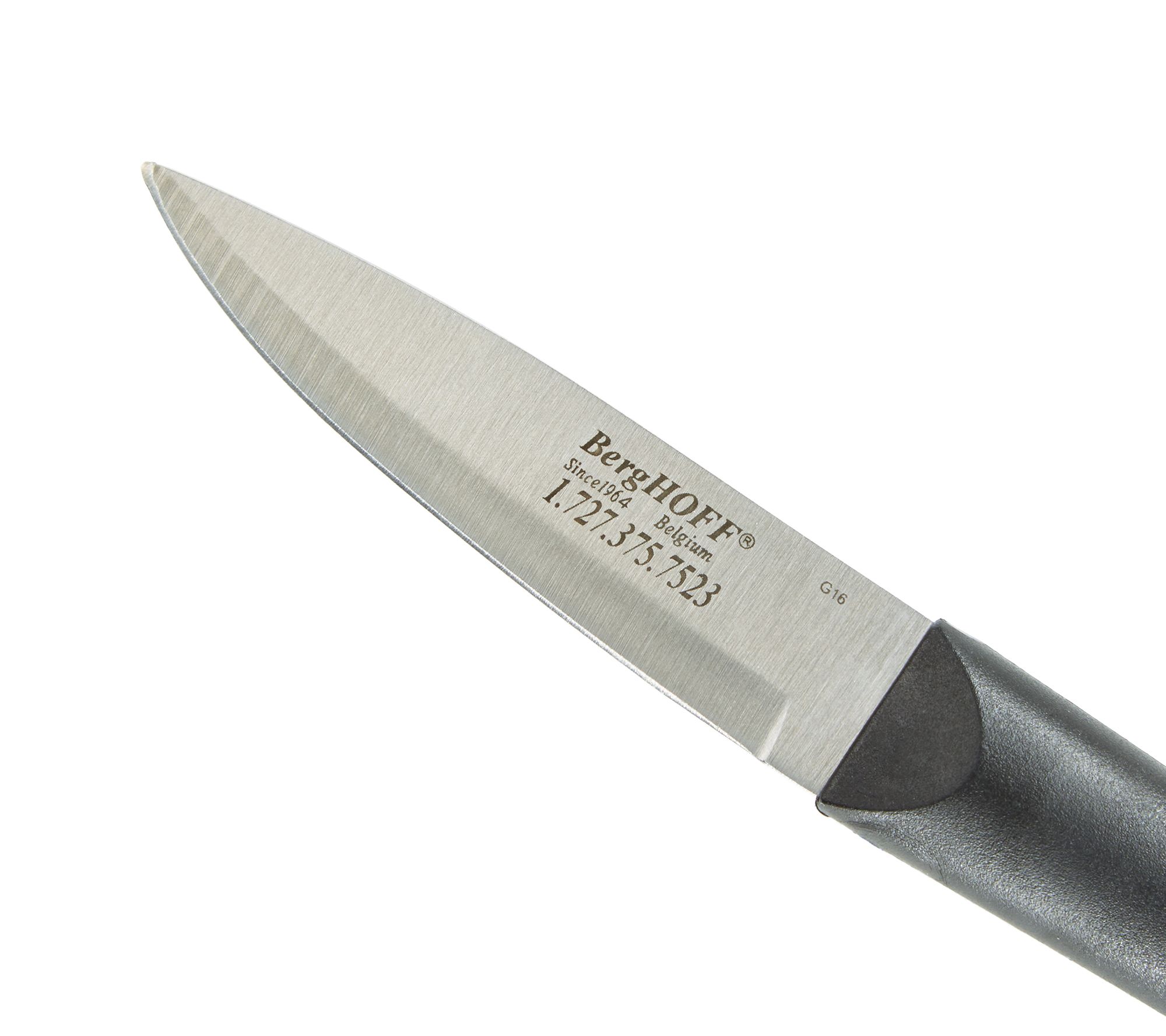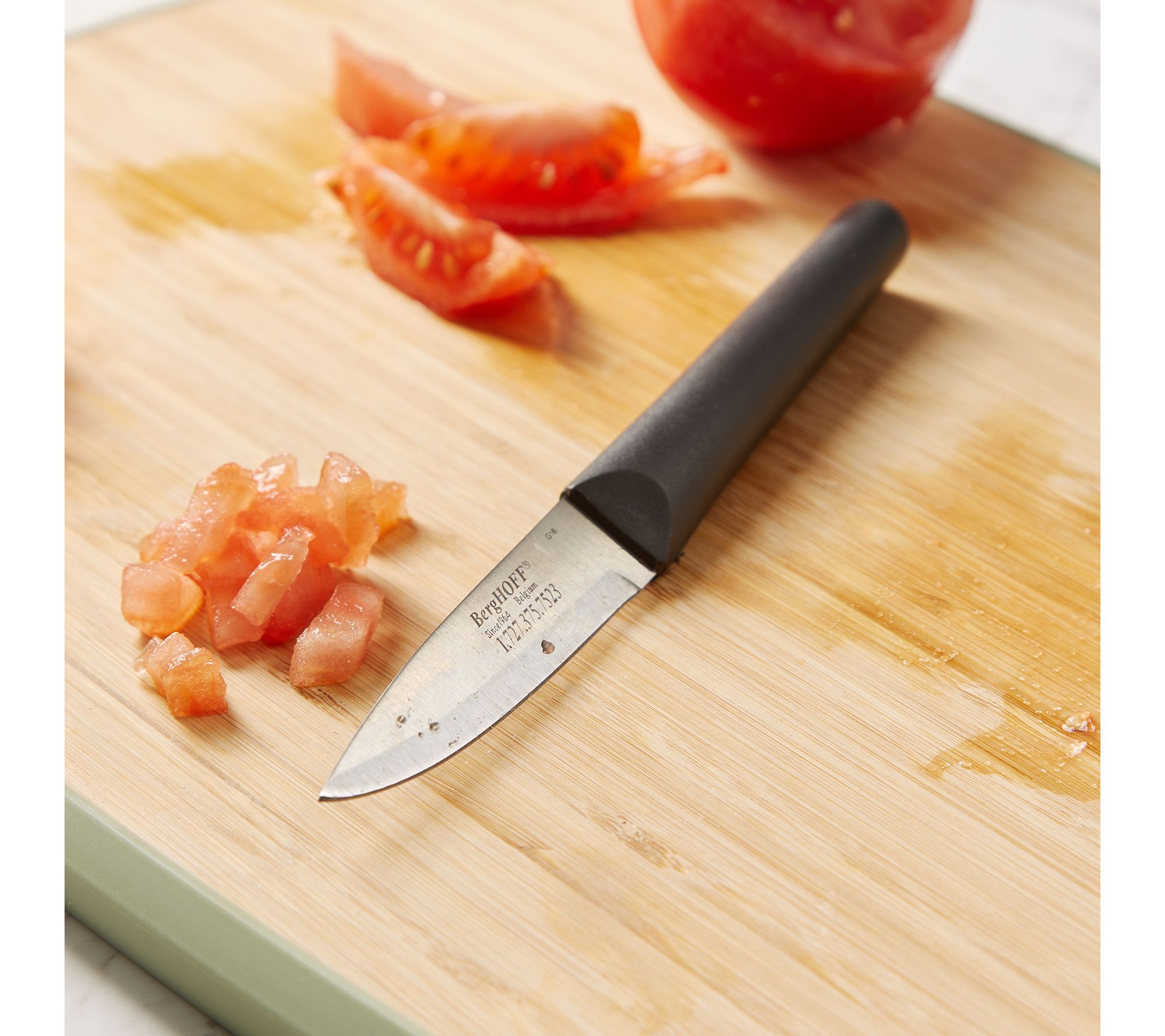 Master every delicate slicing and peeling task with this versatile stainless steel paring knife. Its high-quality, ice-hardened blade maintains a keen edge, while the checkered white handle offers a secure, slip-resistant grip. Whether you're prepping fruits or garnishing a dish, this knife makes the process smooth and efficient. From BergHOFF.