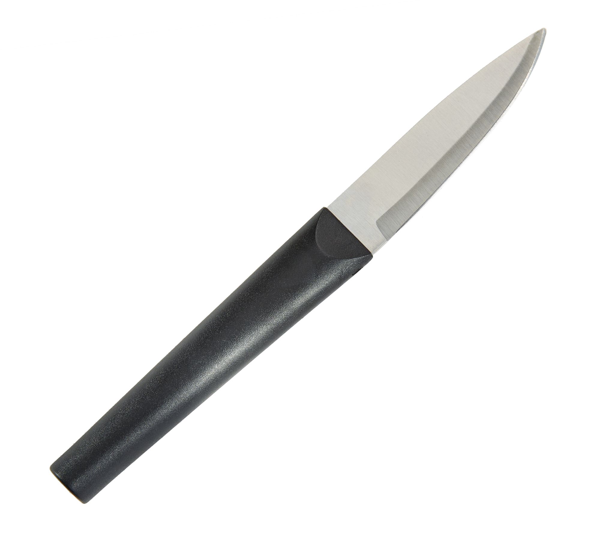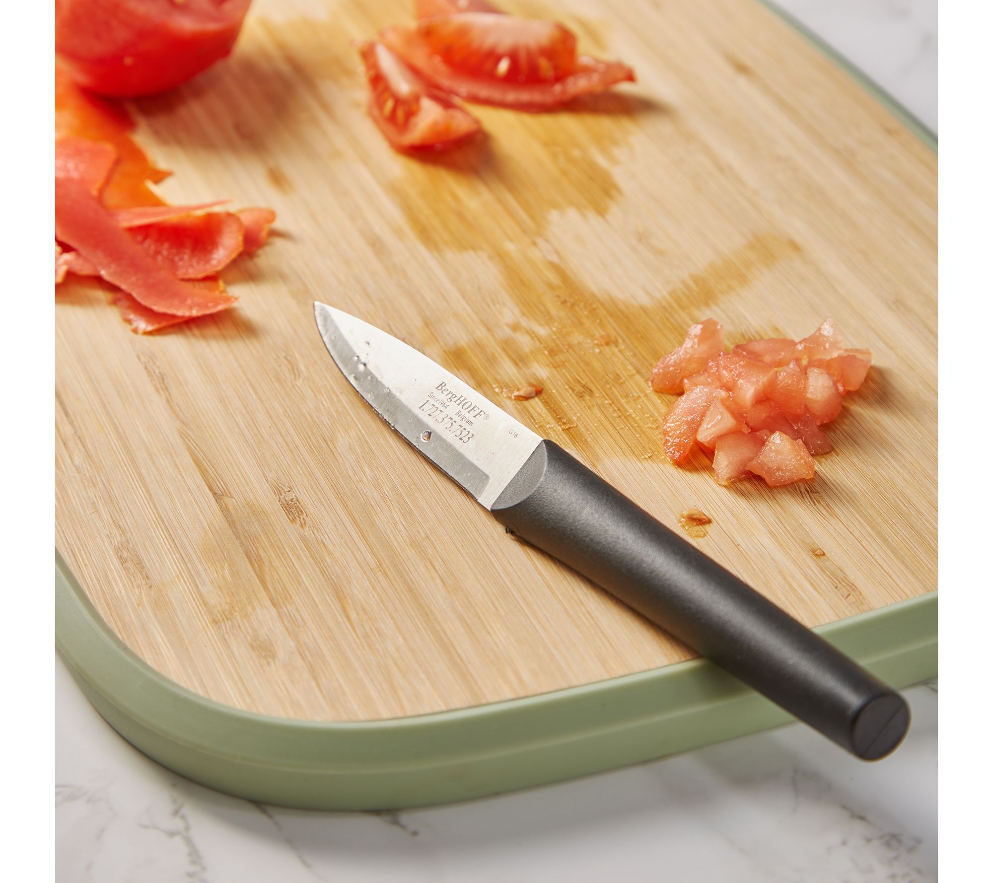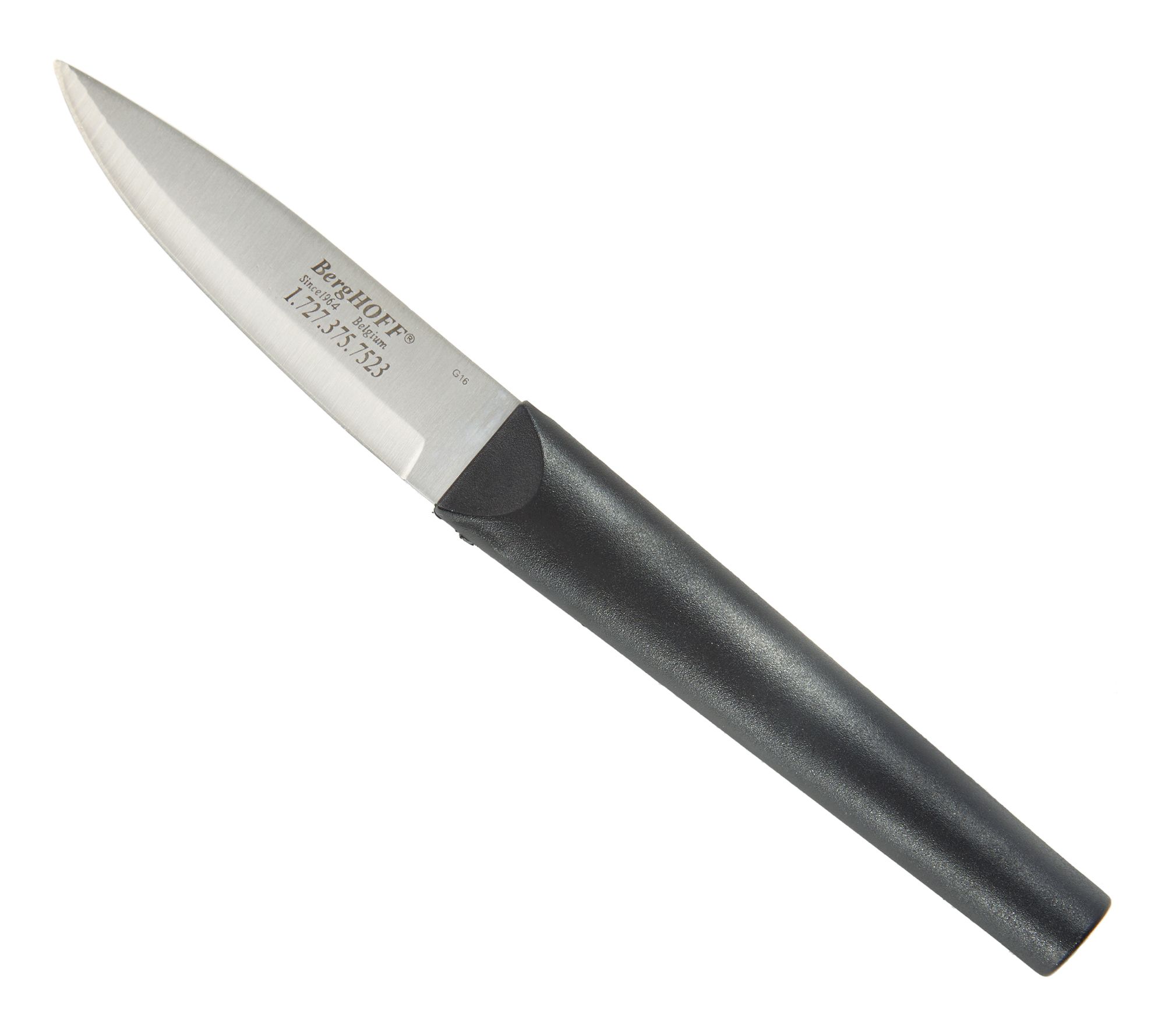Master every delicate slicing and peeling task with this versatile stainless steel paring knife. Its high-quality, ice-hardened blade maintains a keen edge, while the checkered white handle offers a secure, slip-resistant grip. Whether you're prepping fruits or garnishing a dish, this knife makes the process smooth and efficient. From BergHOFF.
