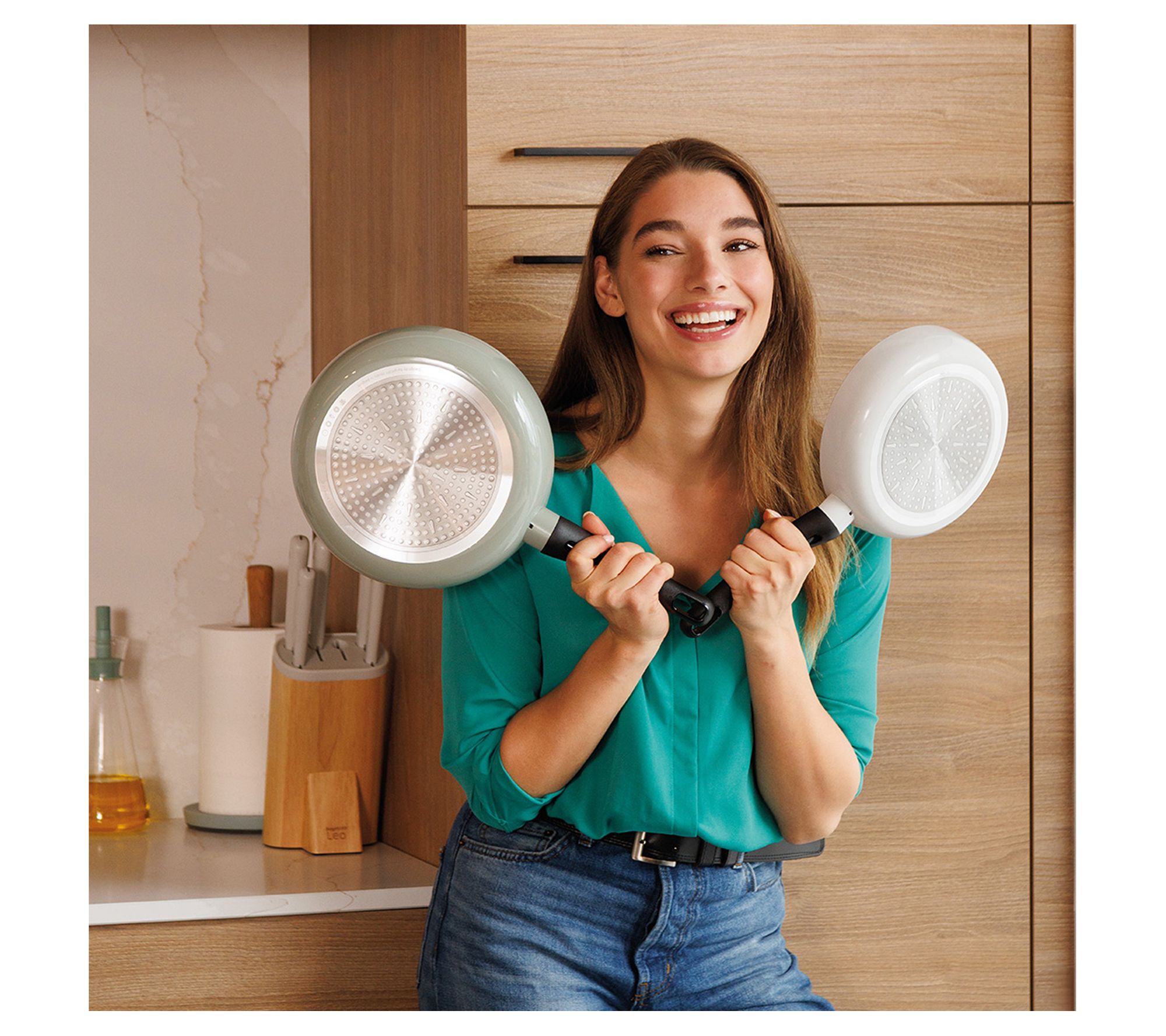 Elevate your cooking experience with the BergHOFF Glints Nonstick Recycled Aluminum Frying Pan. Perfect for anything from morning eggs to evening seared meats, this versatile 8" frying pan ensures excellent heat distribution and even cooking results. The nonstick CeraGreen coating requires little to no oil, making cleanup a breeze. From BergHOFF.