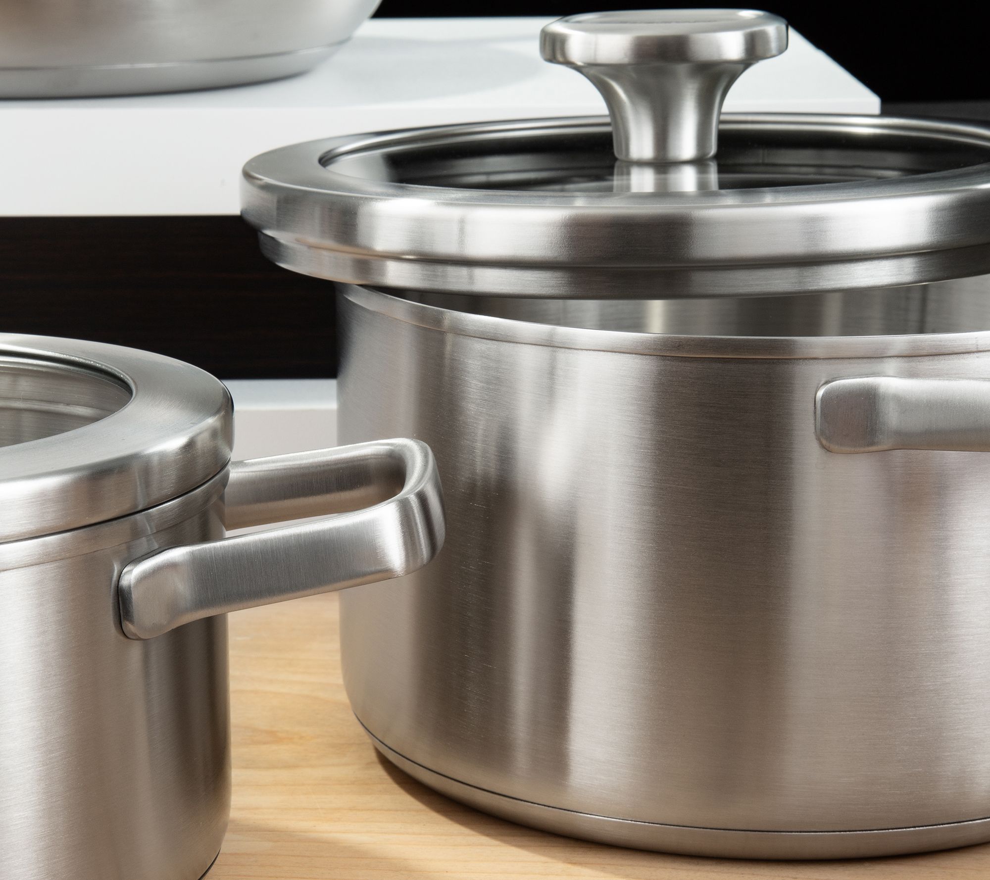 Includes 1.7-qt covered stockpot, 3.6-qt covered stockpot, and 10" fry pan