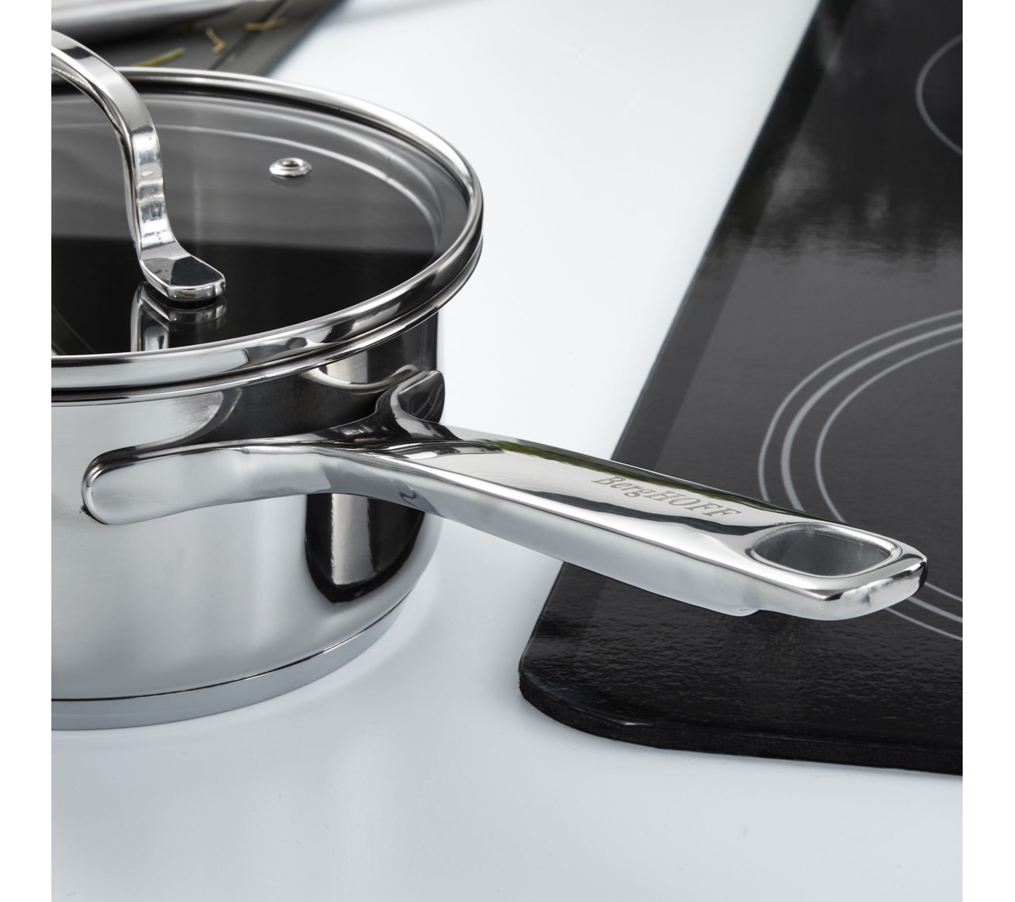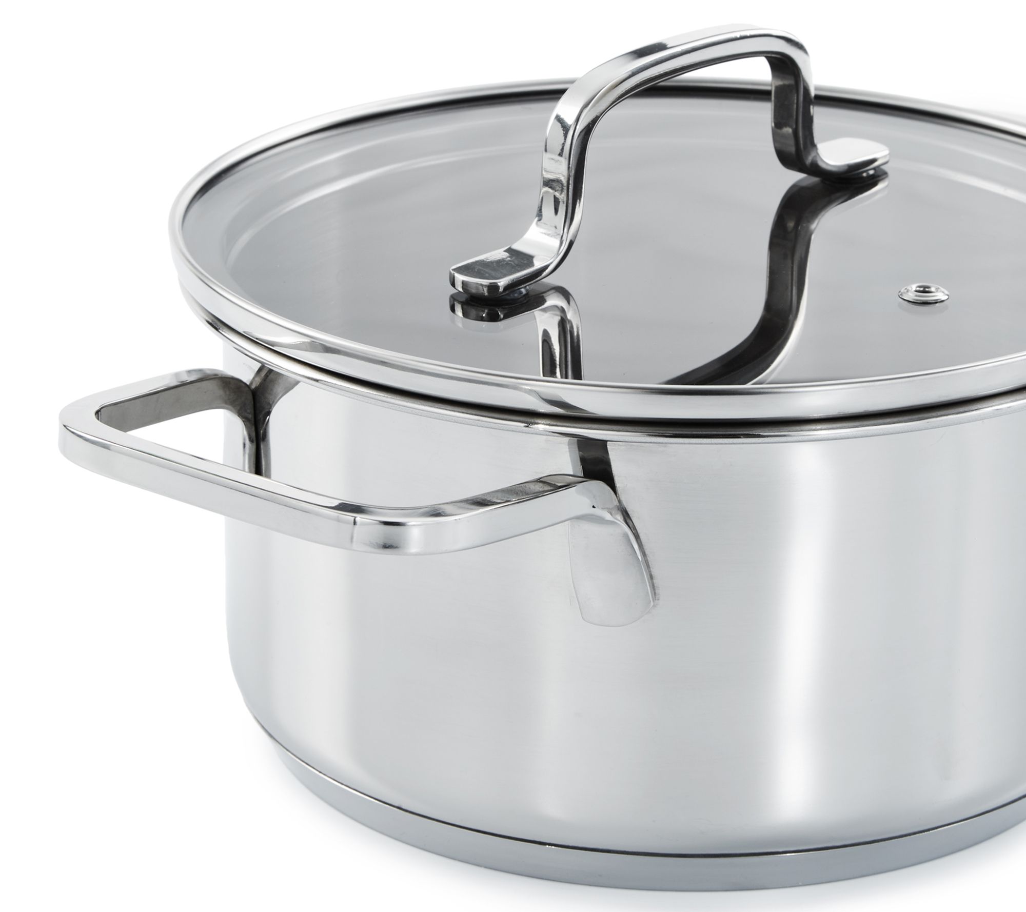 Elevate your culinary skills with the BergHOFF Helix 5pc 18/10 stainless steel cookware set. Designed with an ergonomic handle for a comfortable grip, these versatile pans ensure even heat distribution for perfect cooking results. Dishwasher-safe and compatible with various cooktops, this set is both convenient and durable. From BergHOFF.