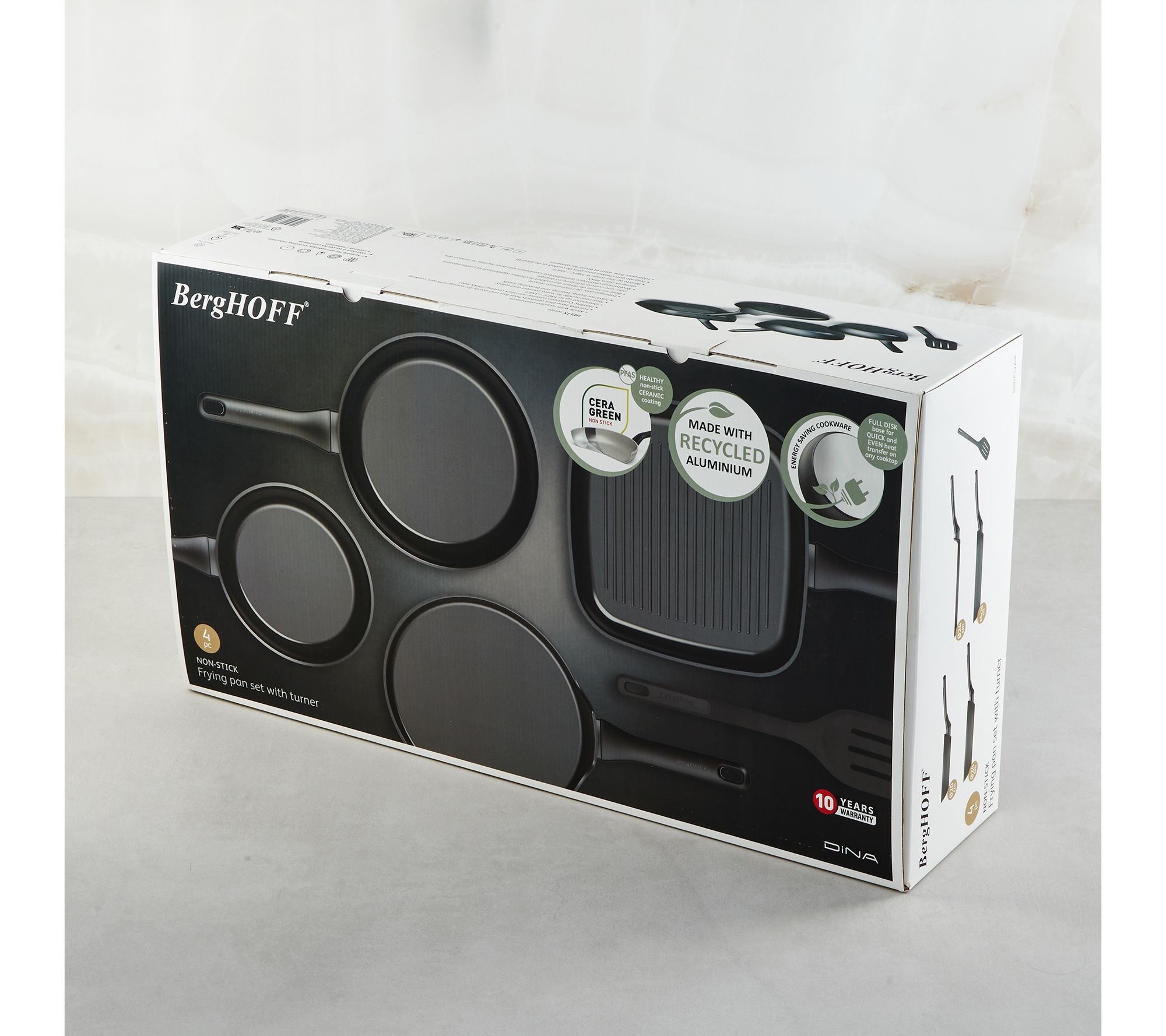 Cook up a variety of dishes with the versatile BergHOFF Helix five-piece nonstick specialty pan set with slotted turner. Whether you're making eggs for breakfast, searing meats for dinner, or flipping pancakes, this set offers the right tool for every meal. Featuring high-quality nonstick coating and a slotted turner, you'll enjoy easy cooking and cleanup. From BergHOFF.
