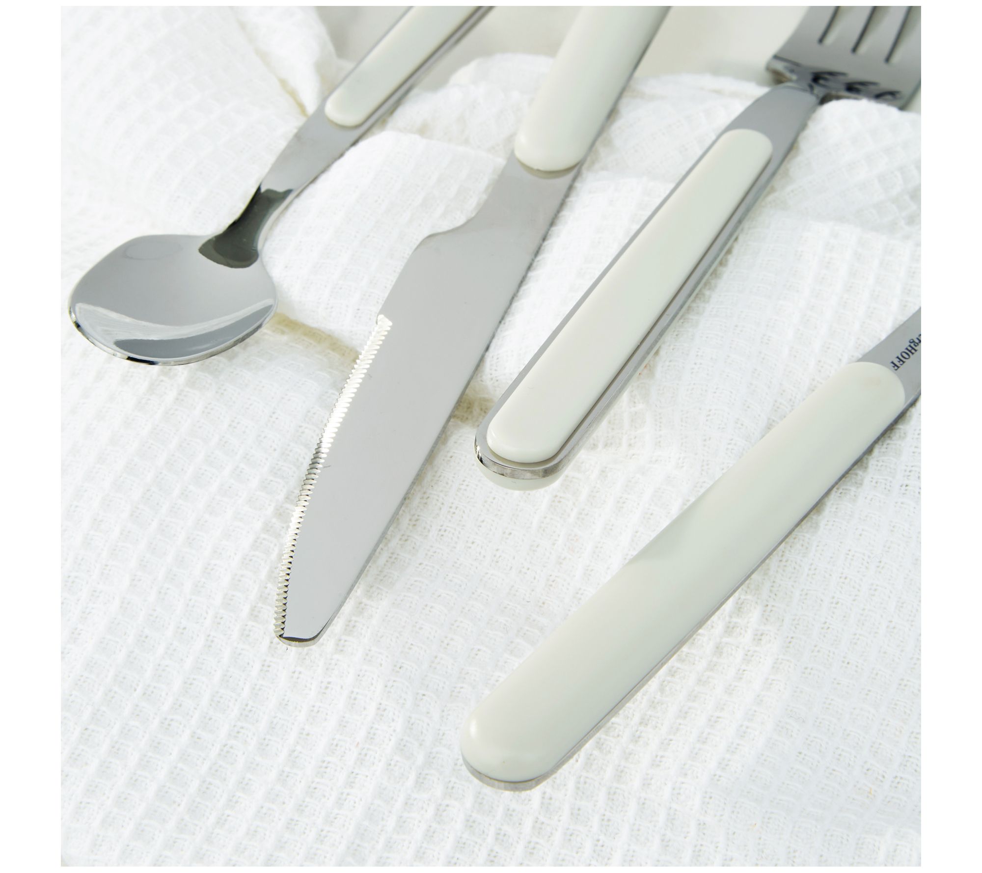 • Includes six dinner knives, six dinner forks, six dinner spoons, and six teaspoons