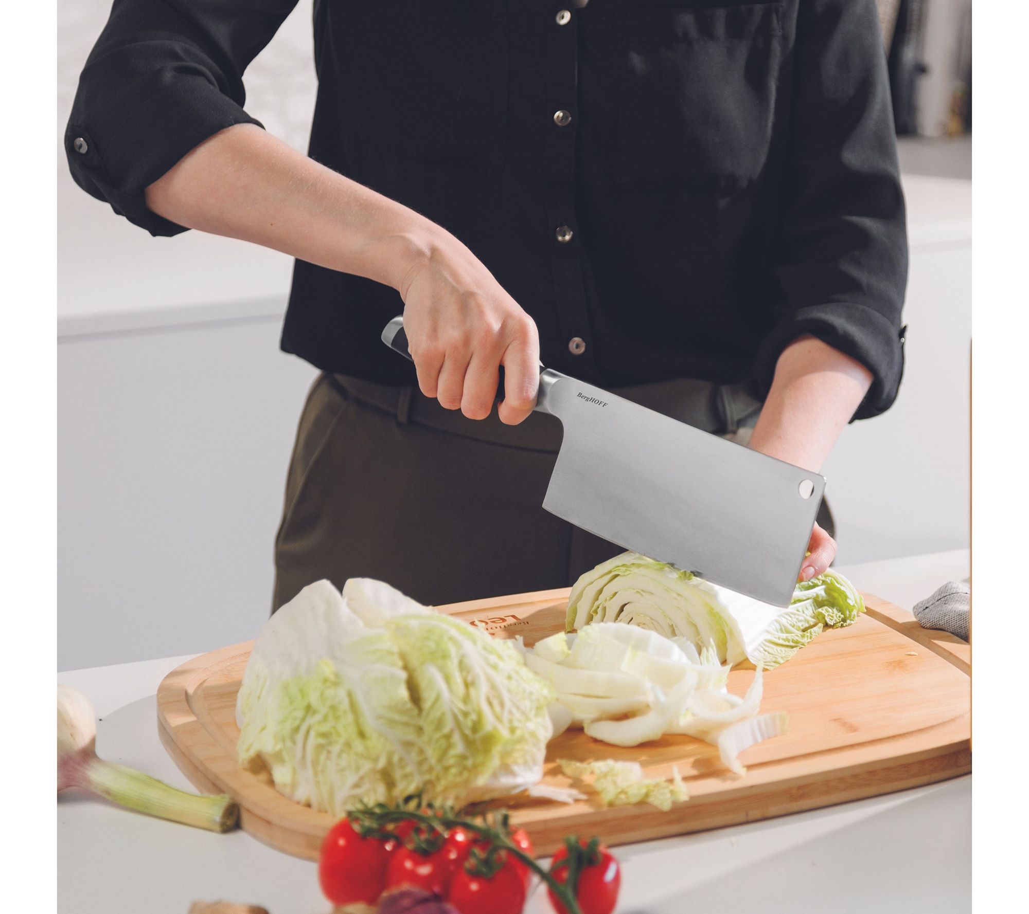 • Includes 8" chef's knife, 4.75" utility knife, 7" santoku knife, 6.25" cleaver, and 8.75" x 5.25" x 4.25" knife block