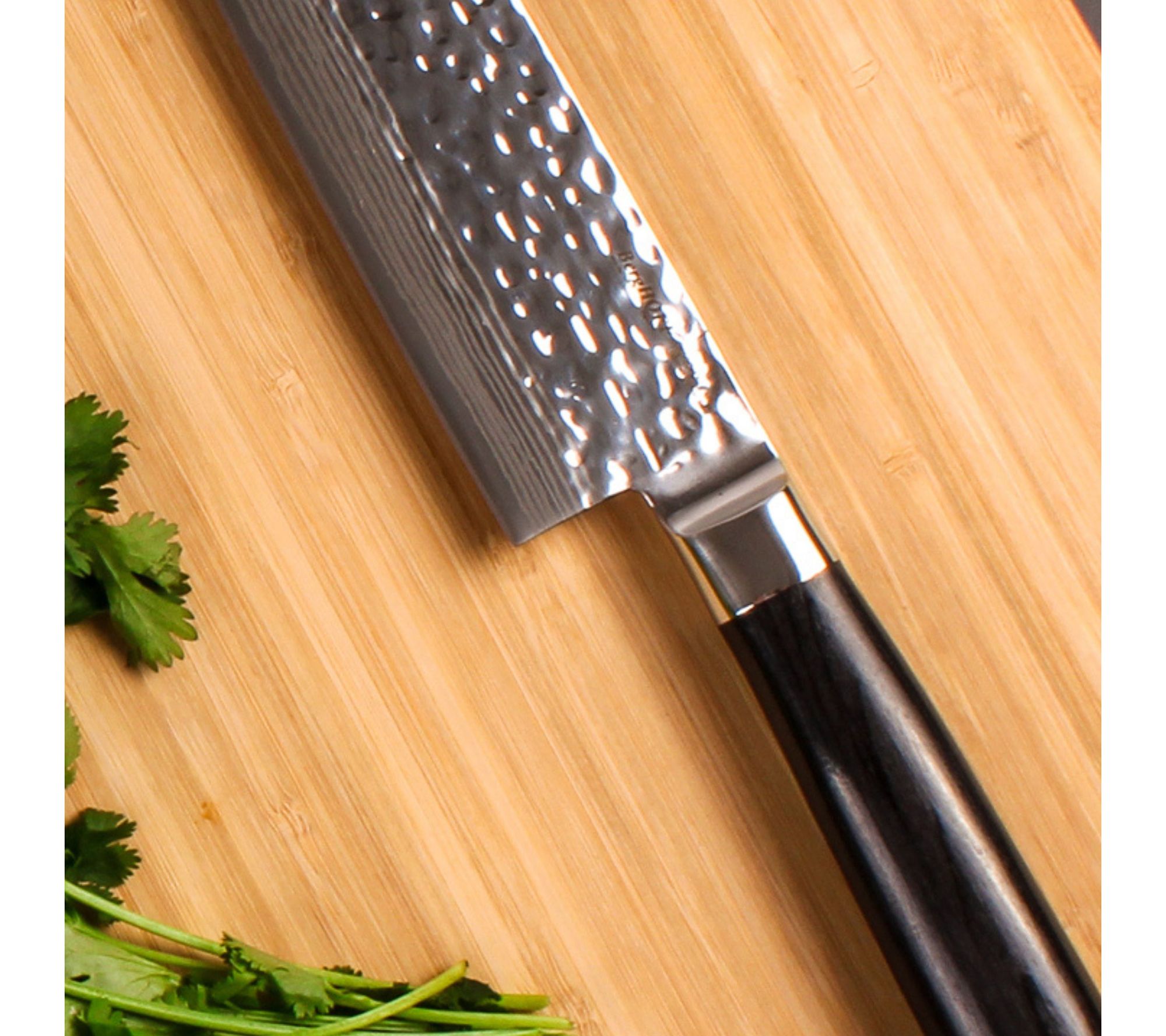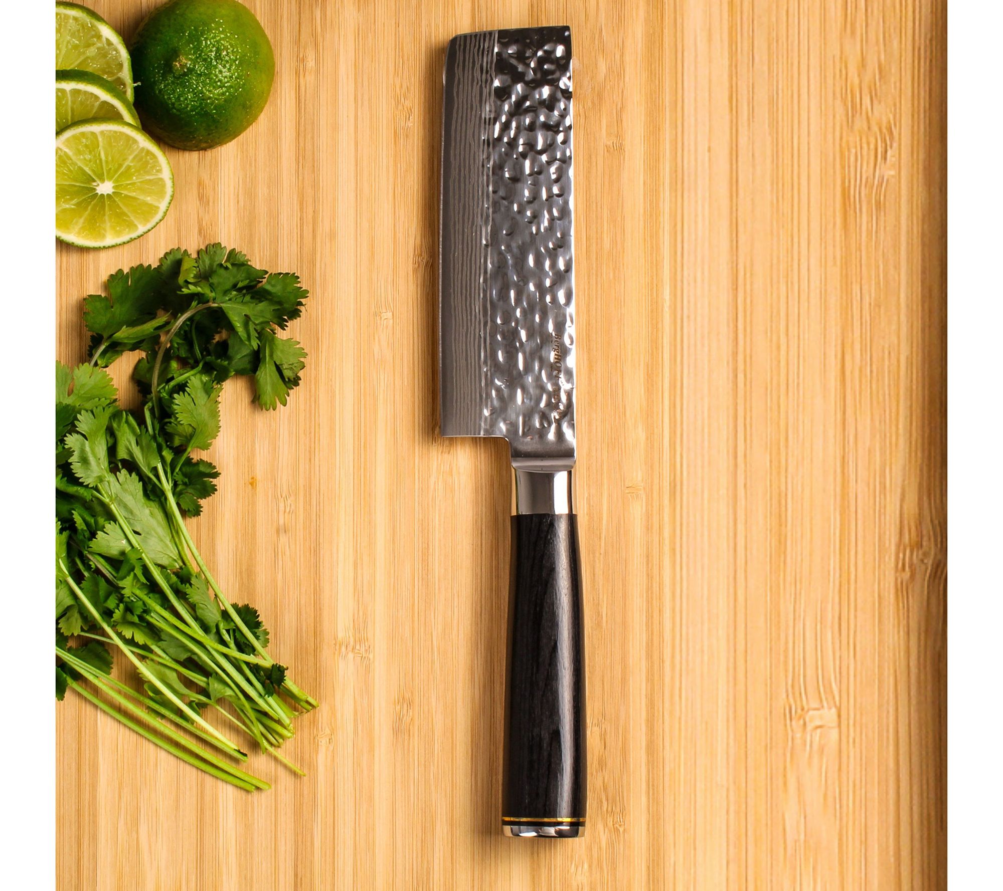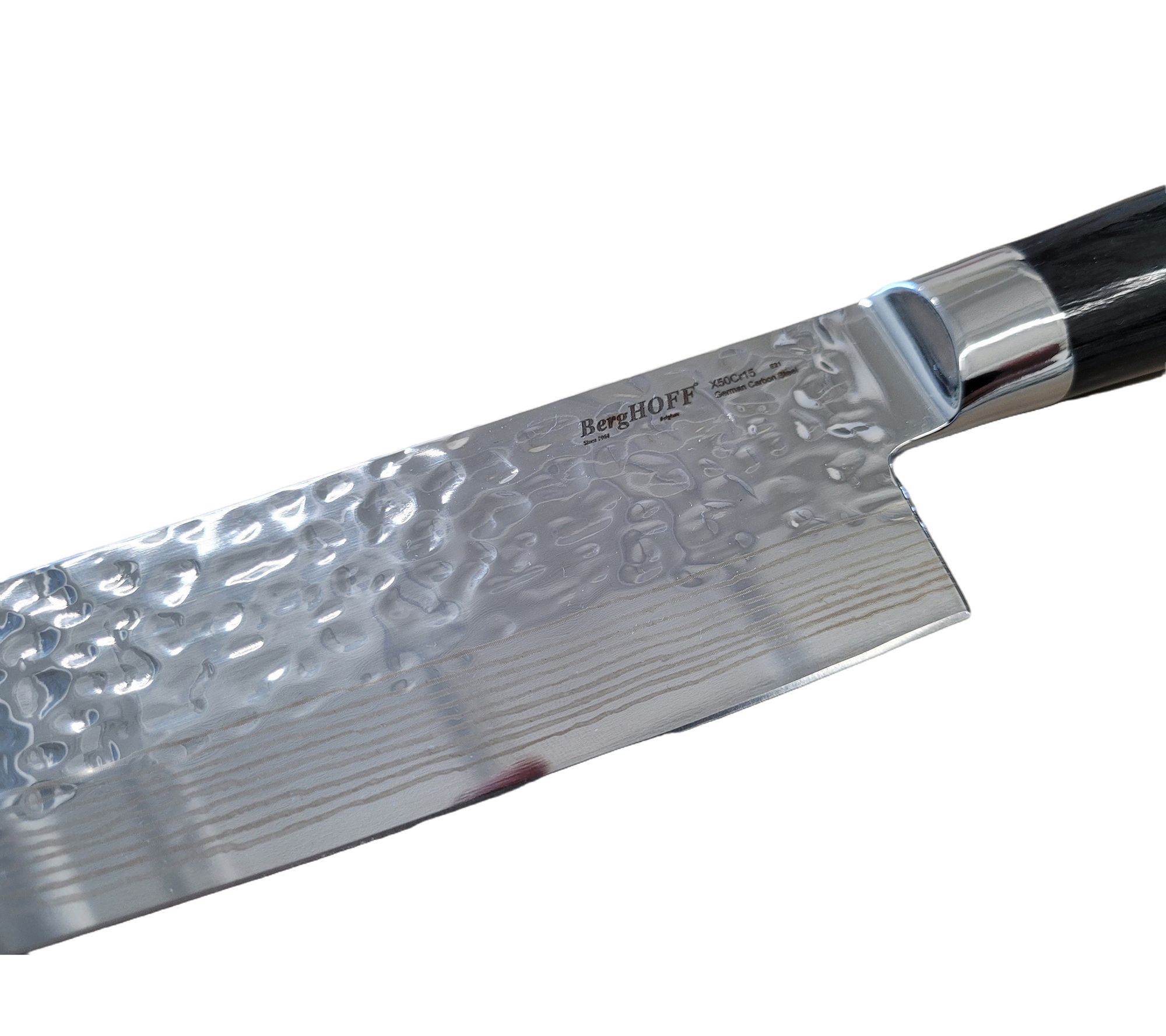Elevate your culinary game with the BergHOFF Martello 5.5" cleaver, boasting a high-quality German carbon stainless steel blade and an ergonomic comfort-grip handle. Designed not just for performance but also for aesthetics, its intricate hammer dot patterning enhances both strength and elegance. From BergHOFF.