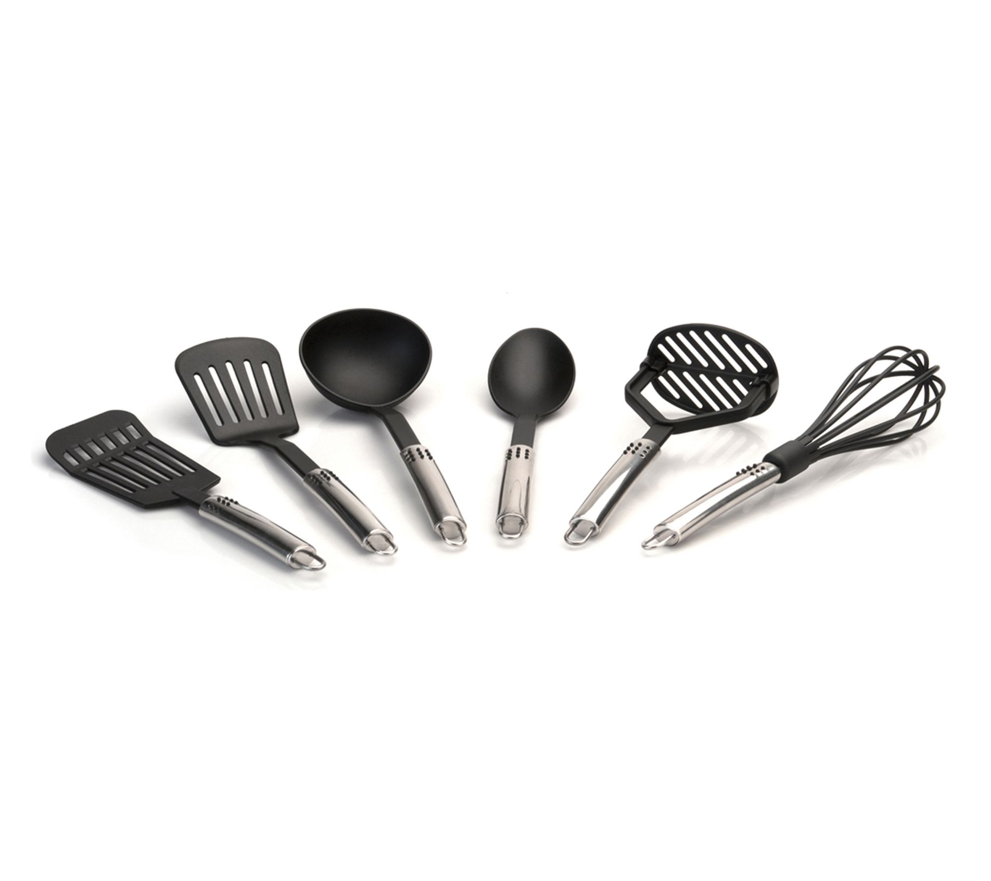 • Includes whisk, potato masher, soup ladle, serving spoon, slotted turner, angled turner, and apron