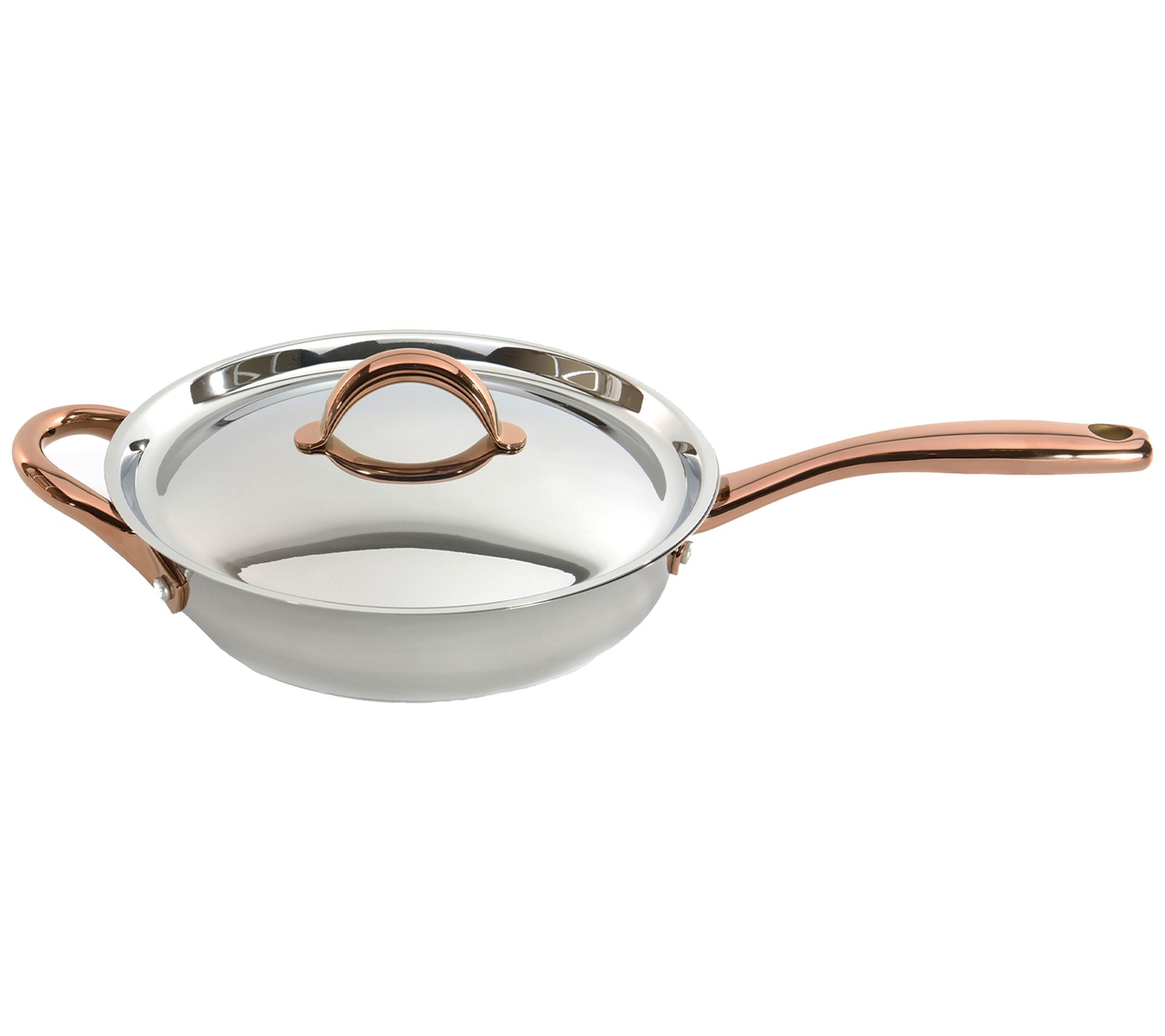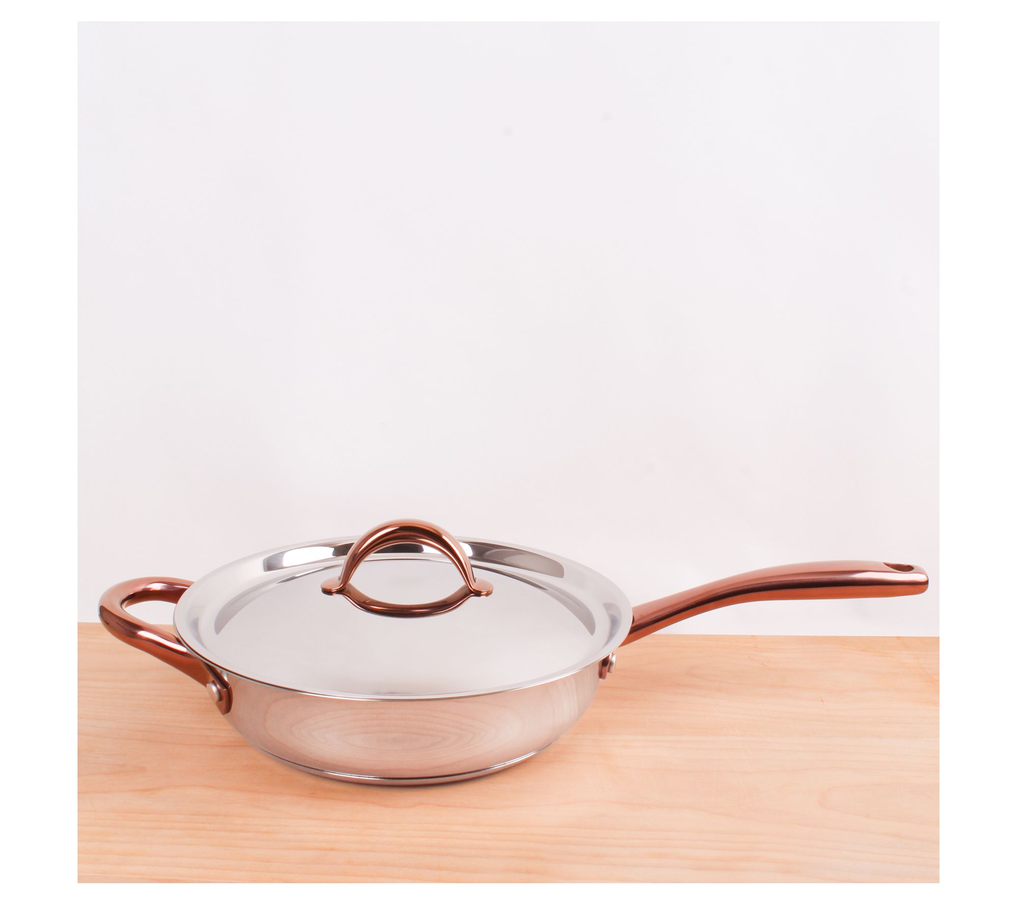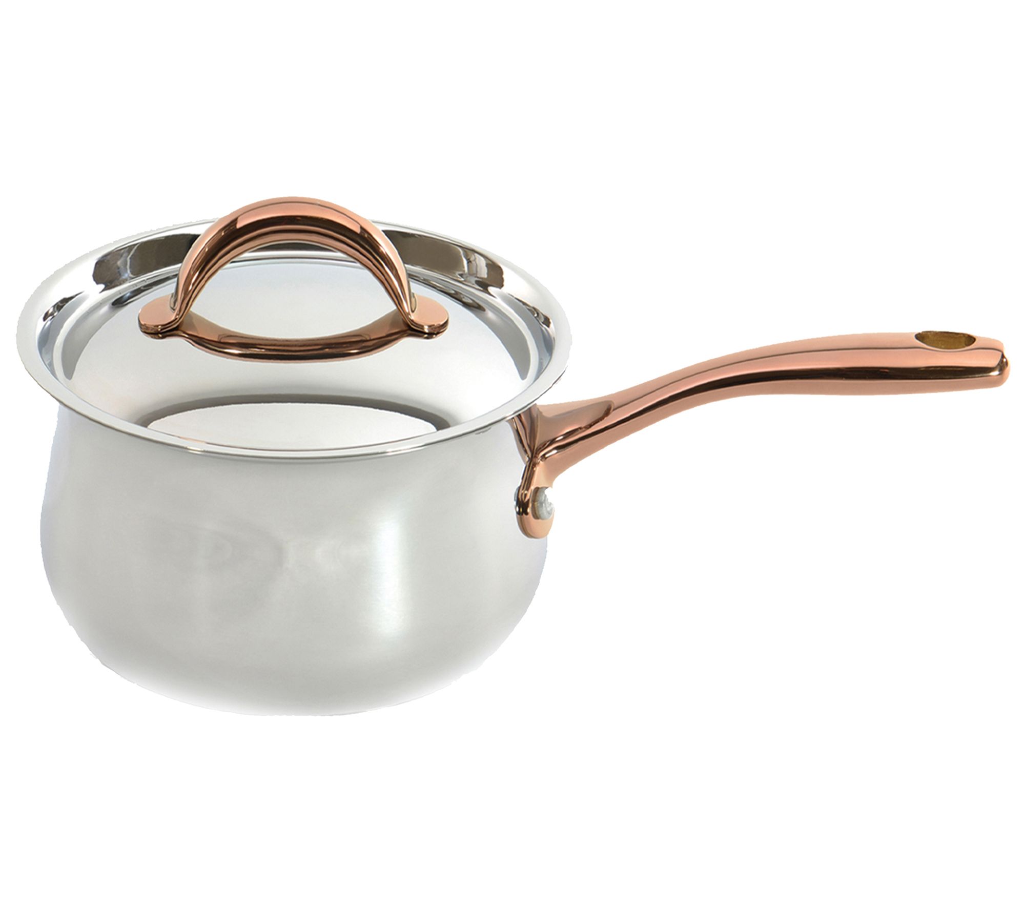 BergHOFF's Ouro Gold cookware delivers timeless beauty and lasting durability. Crafted from stainless steel with a mirrored finish, the set features rose gold accents on the handles for an elegant touch. Enjoy cooking on all cooktops thanks to the solid base and double-riveted handles with a copper inlay for a secure grip. From BergHOFF.