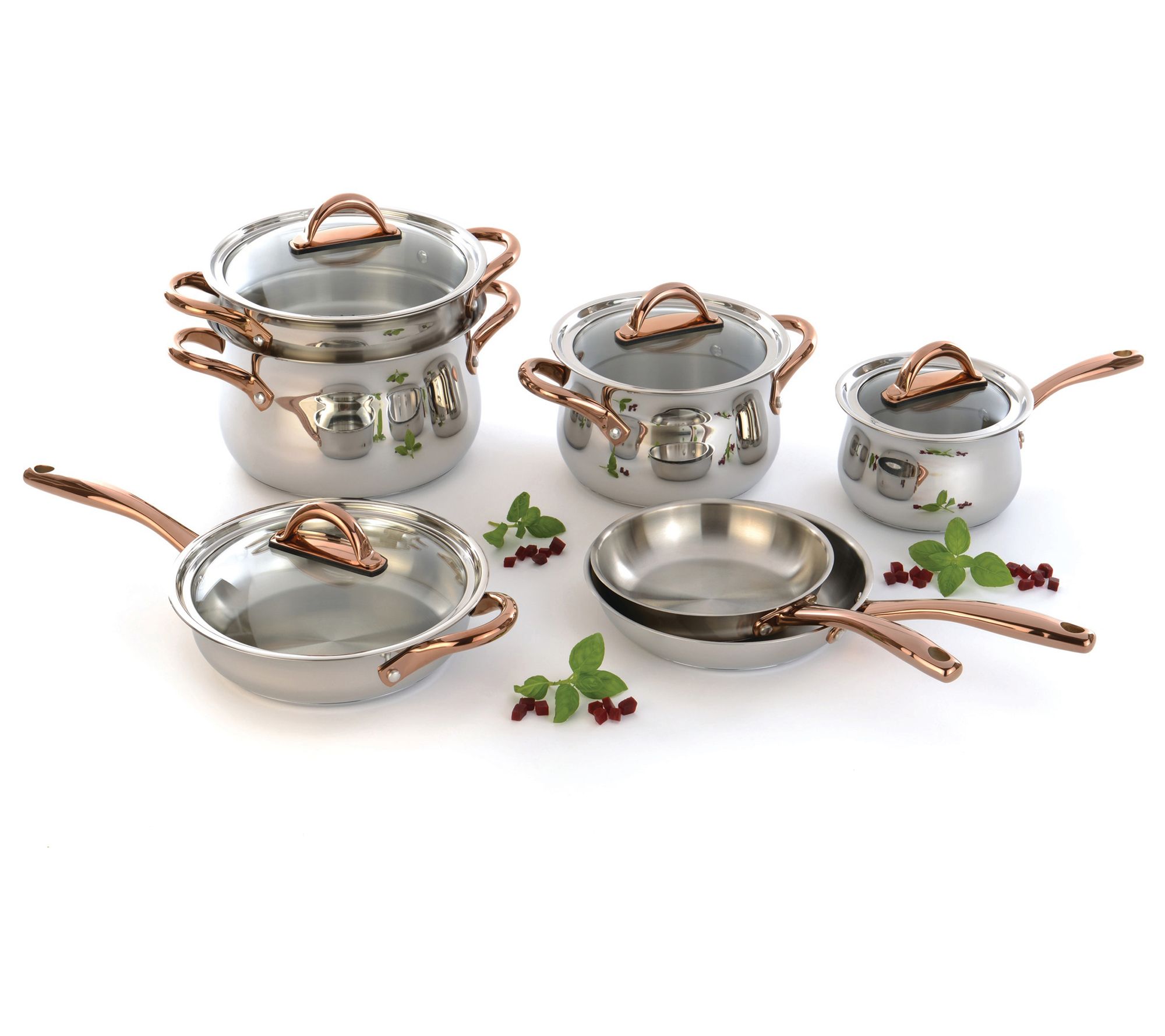 • Ergonomically designed rose gold handles