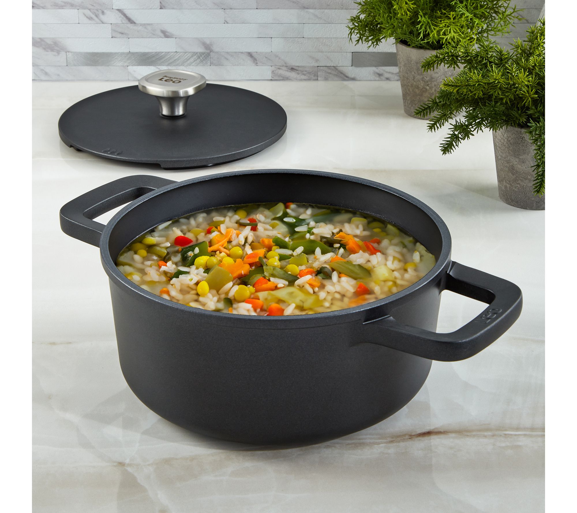 Effortlessly create rich soups, stews, and stocks with the BergHOFF Phantom nonstick ceramic 8" stockpot. This spacious 2.7-quart pot ensures superior heat distribution for consistent, flavorful results, while its lightweight cast aluminum construction is easy to handle. From BergHOFF.