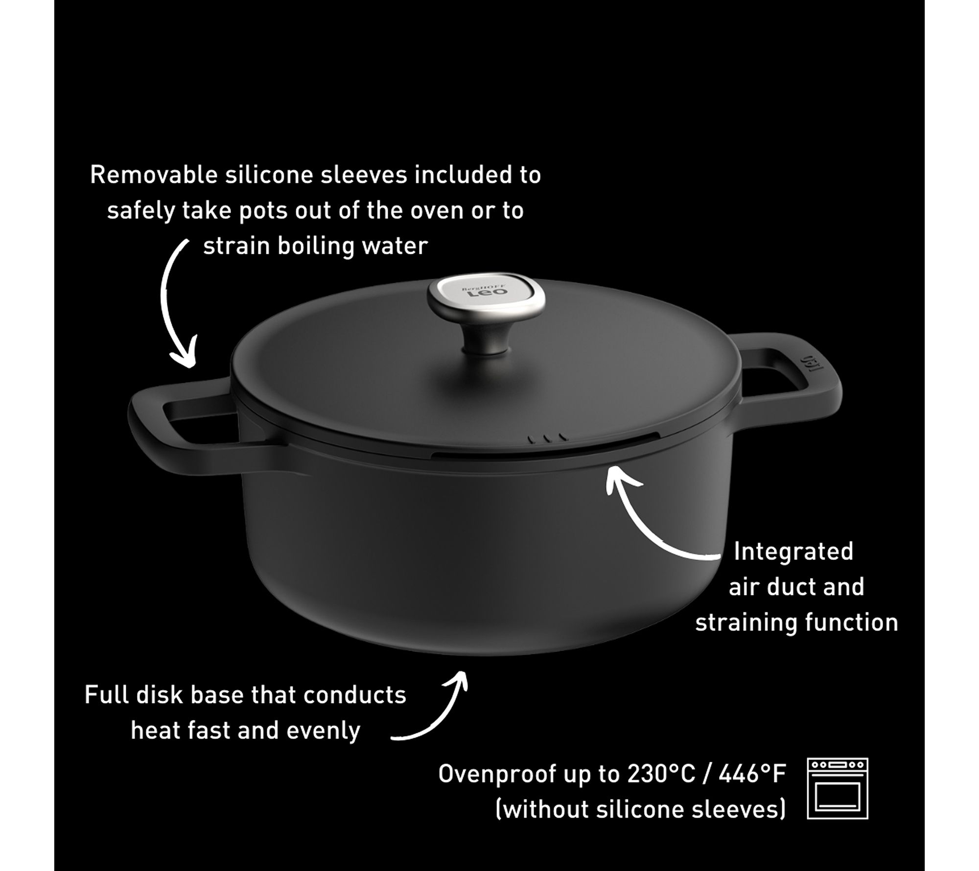 • Oven-safe up to 400F without silicone sleeves