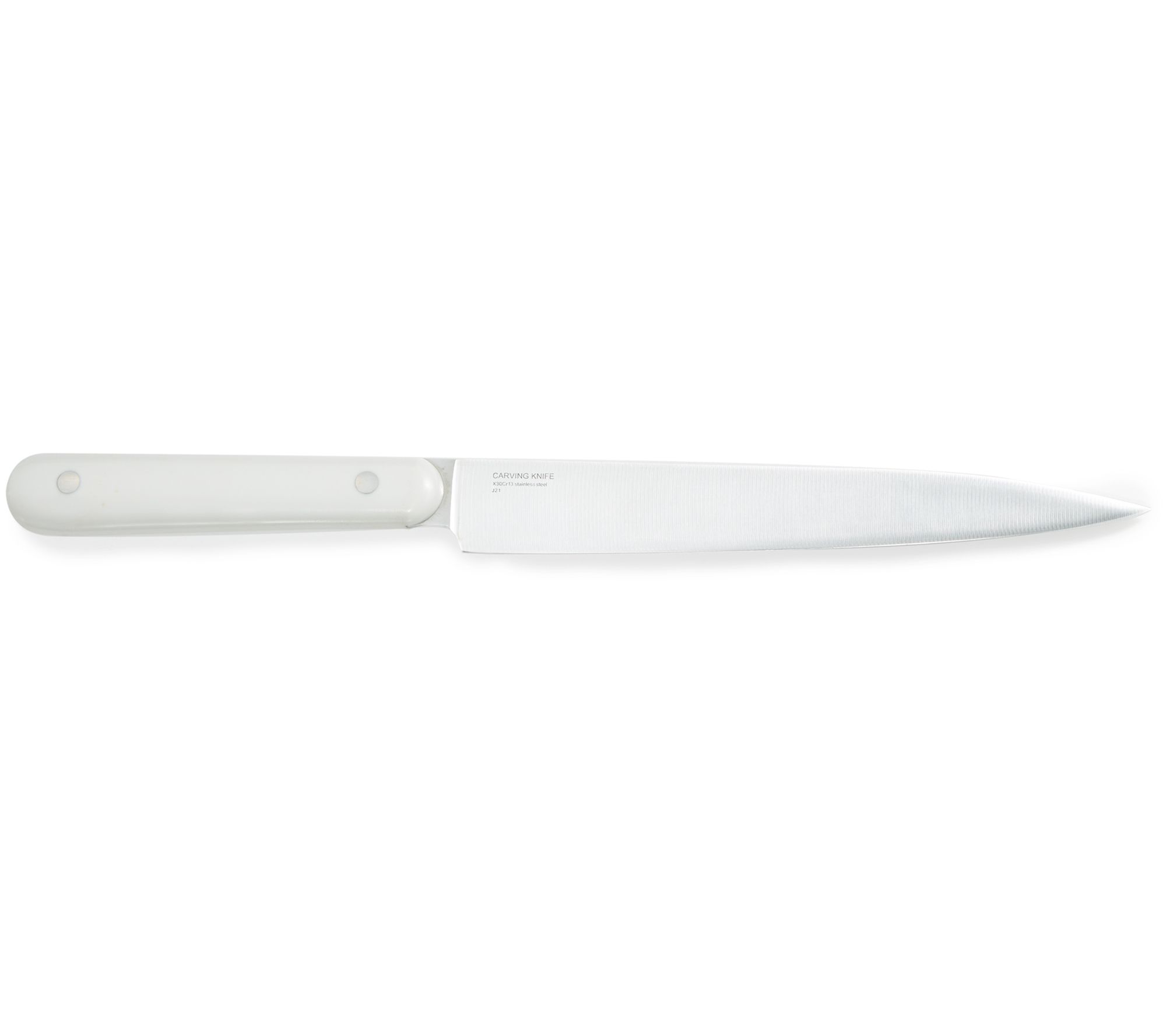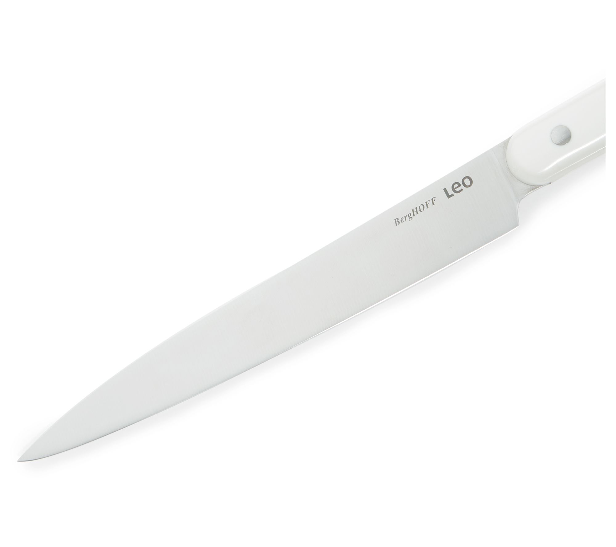Elevate your culinary experience with this carving knife featuring a razor-sharp blade perfect for precision slicing of meats. Its glossy handle, secured with dual rivets, offers both a safe grip and a touch of elegance to your kitchen. Ideal for family gatherings and special occasions, this knife ensures every slice is effortlessly smooth. From BergHOFF.