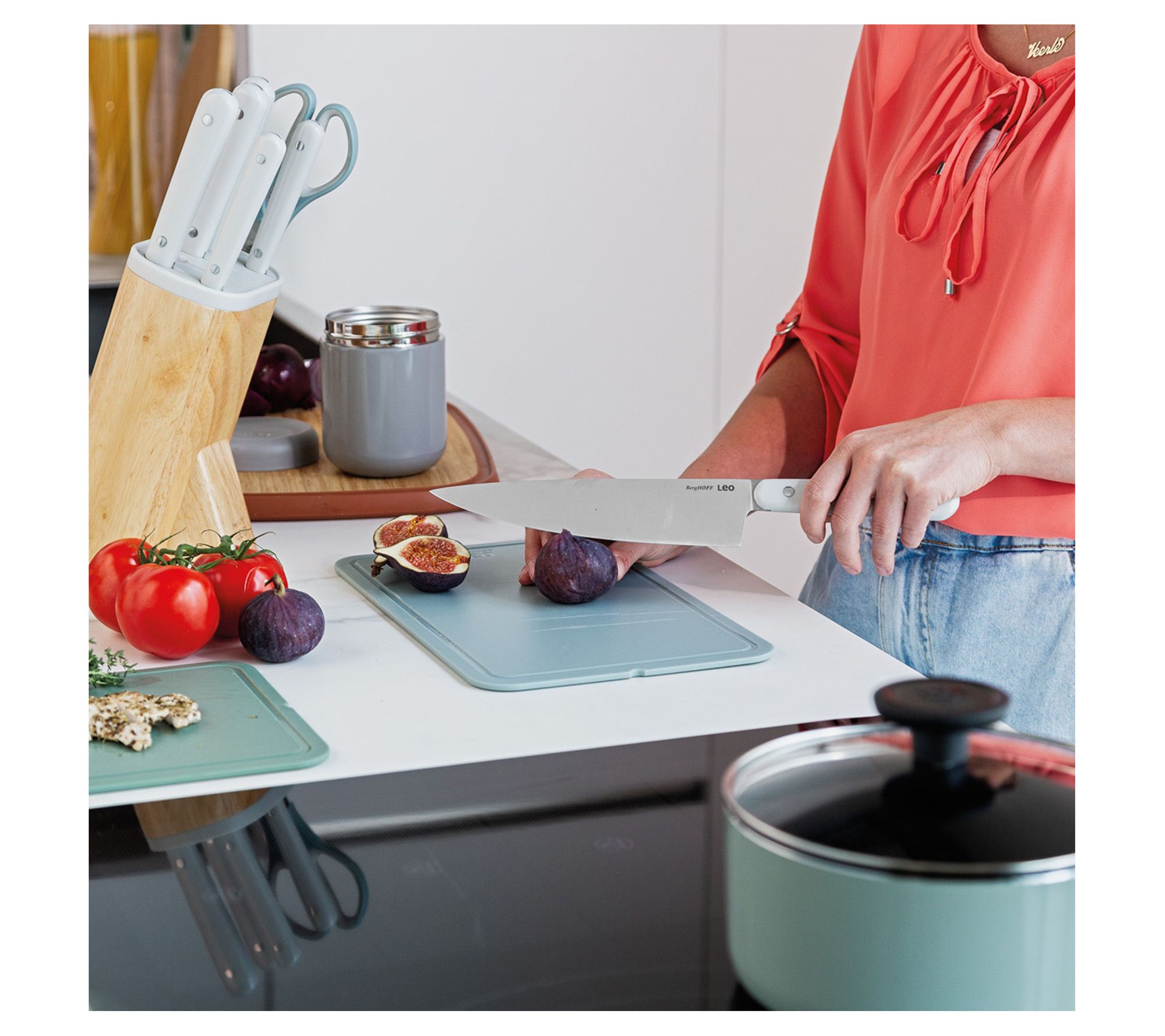 Elevate your culinary skills with this marvelous chef's knife designed for versatility and precision in the kitchen. Its high-quality stainless steel blade, complemented by a glossy satin finish, slices through meat, vegetables, and poultry with ease. The ergonomically designed handle, secured with dual rivets, ensures a safe and secure grip, making this knife a must-have for any cooking enthusiast. From BergHOFF.