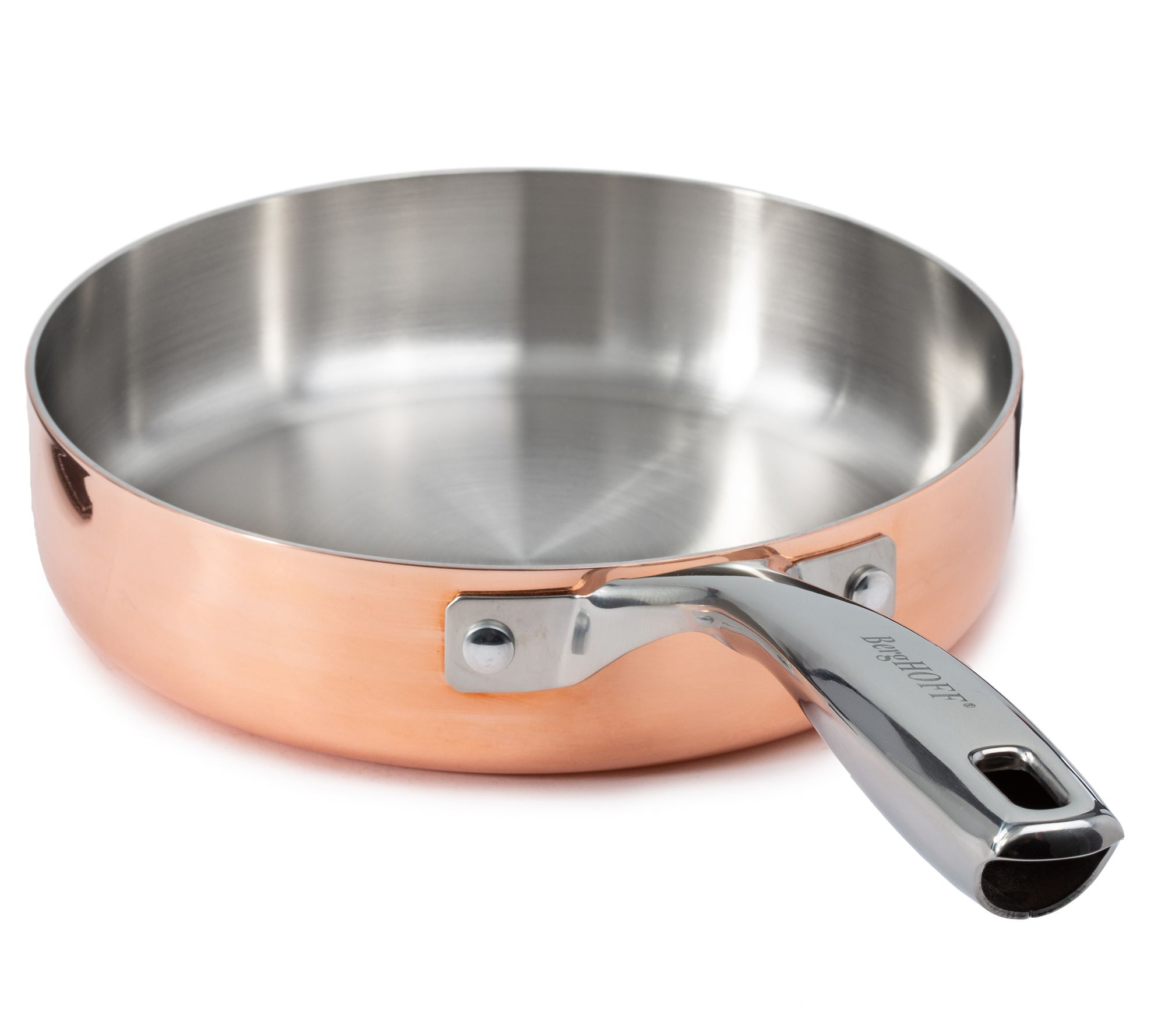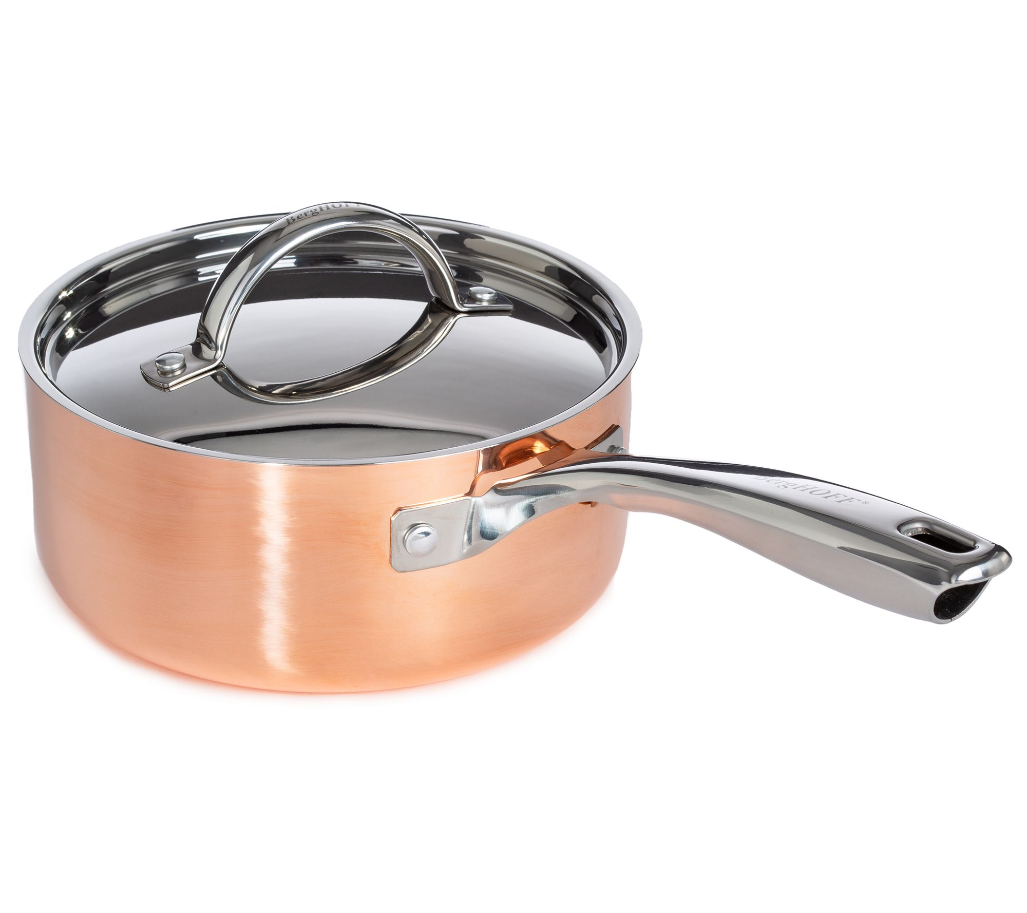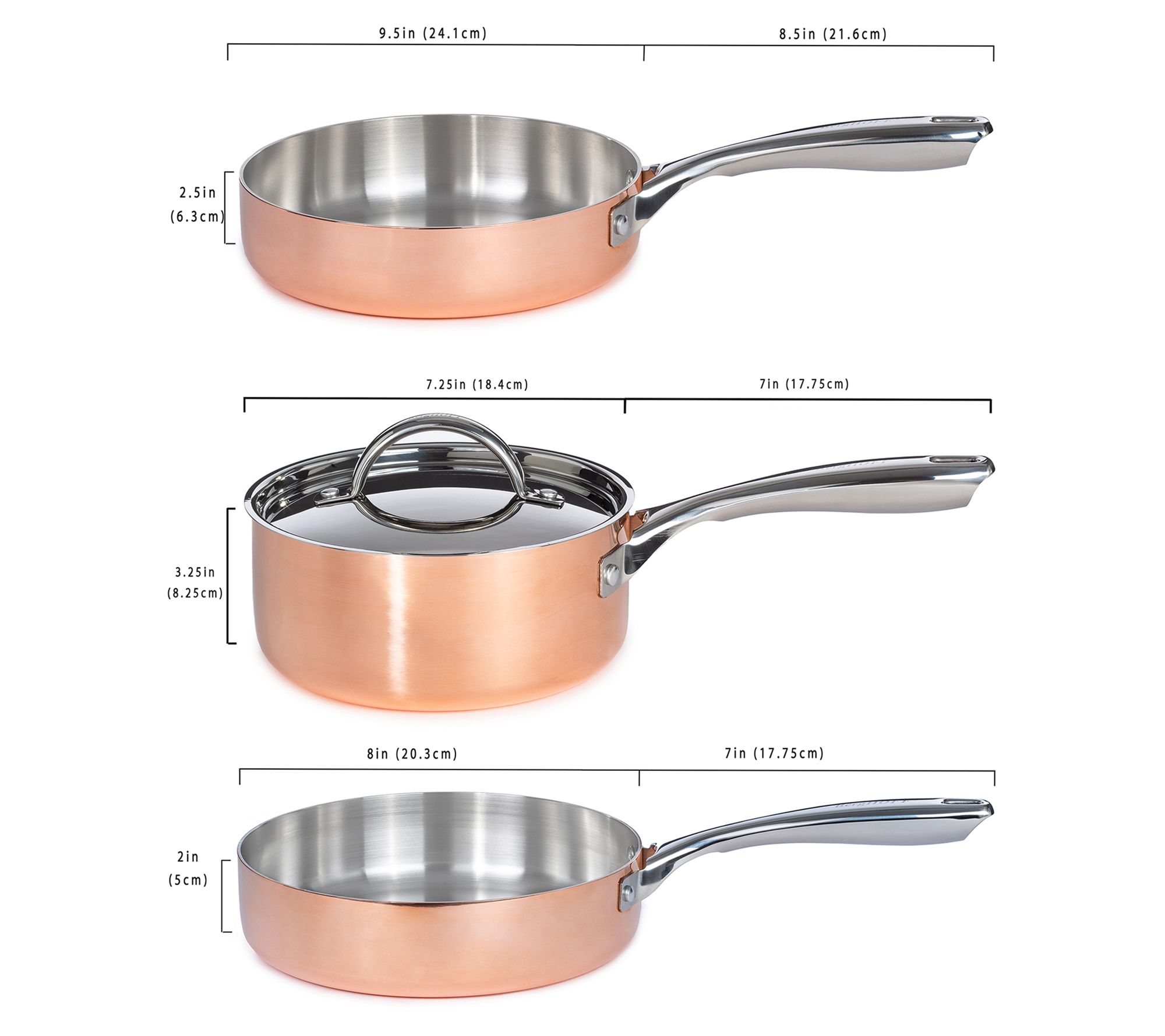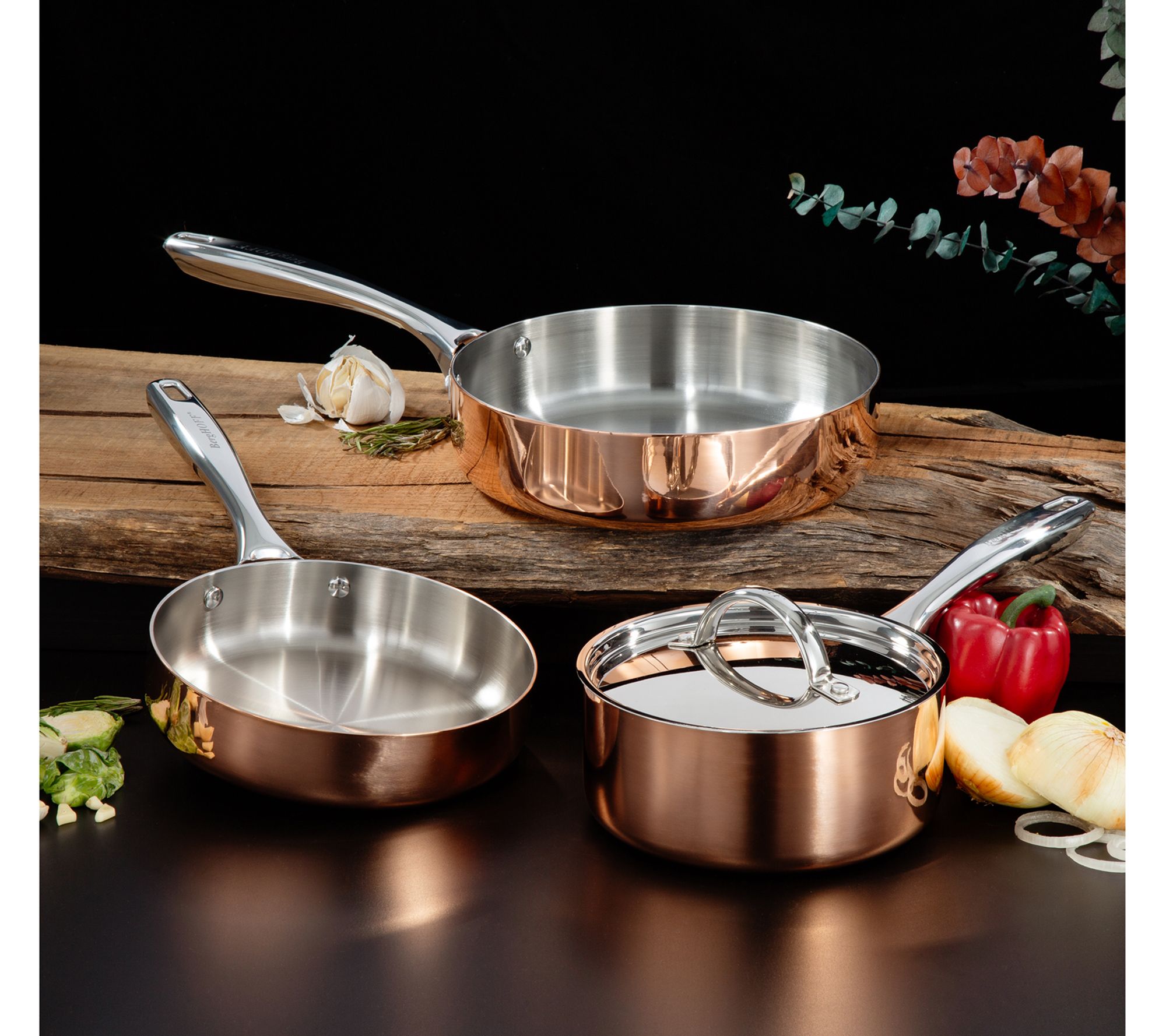 • Tri-ply construction: copper exterior, 18/10 stainless steel interior, aluminum core