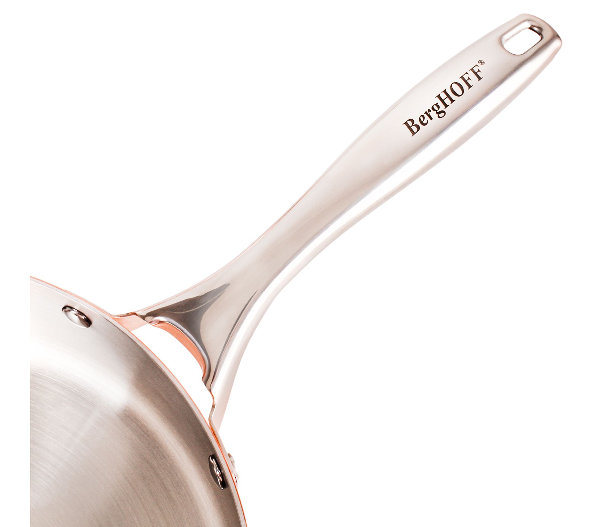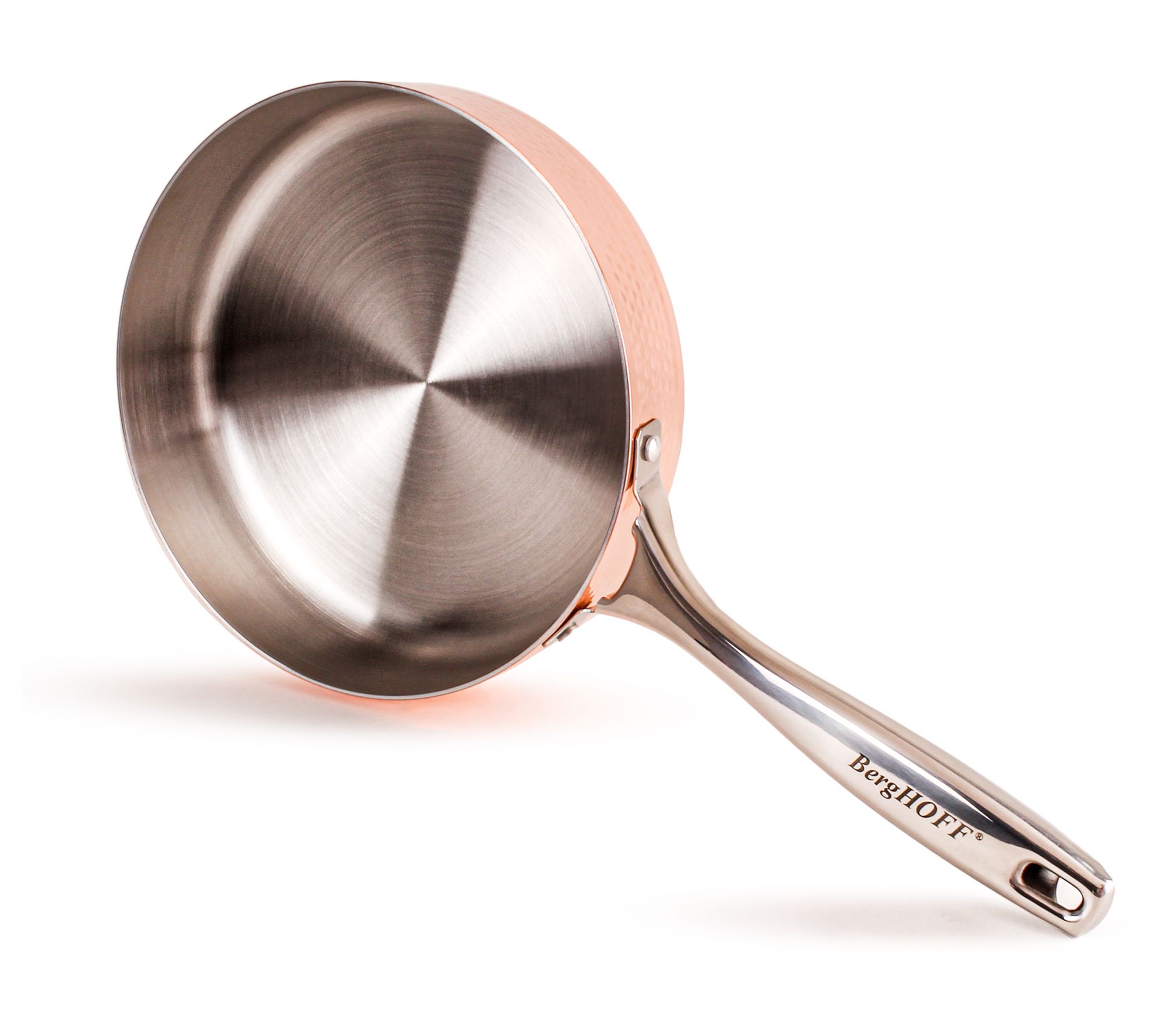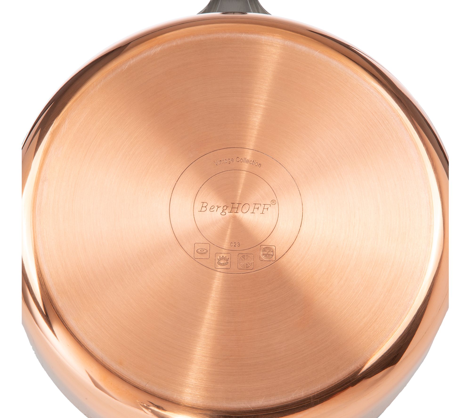 Bring a touch of timeless elegance to your kitchen with the BergHOFF Vintage 5pc copper saucepan and deep skillet cook set. Perfect for the culinary enthusiast, its tri-ply construction ensures superior heat distribution and retention. The ergonomic handles and tightly fitted lids add to the overall functionality. Cook sauces, pasta, or vegetables with ease. From BergHOFF.