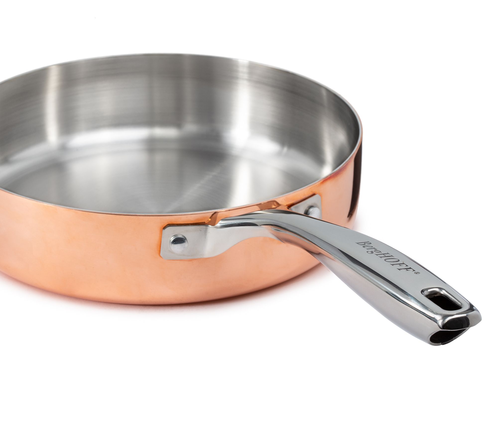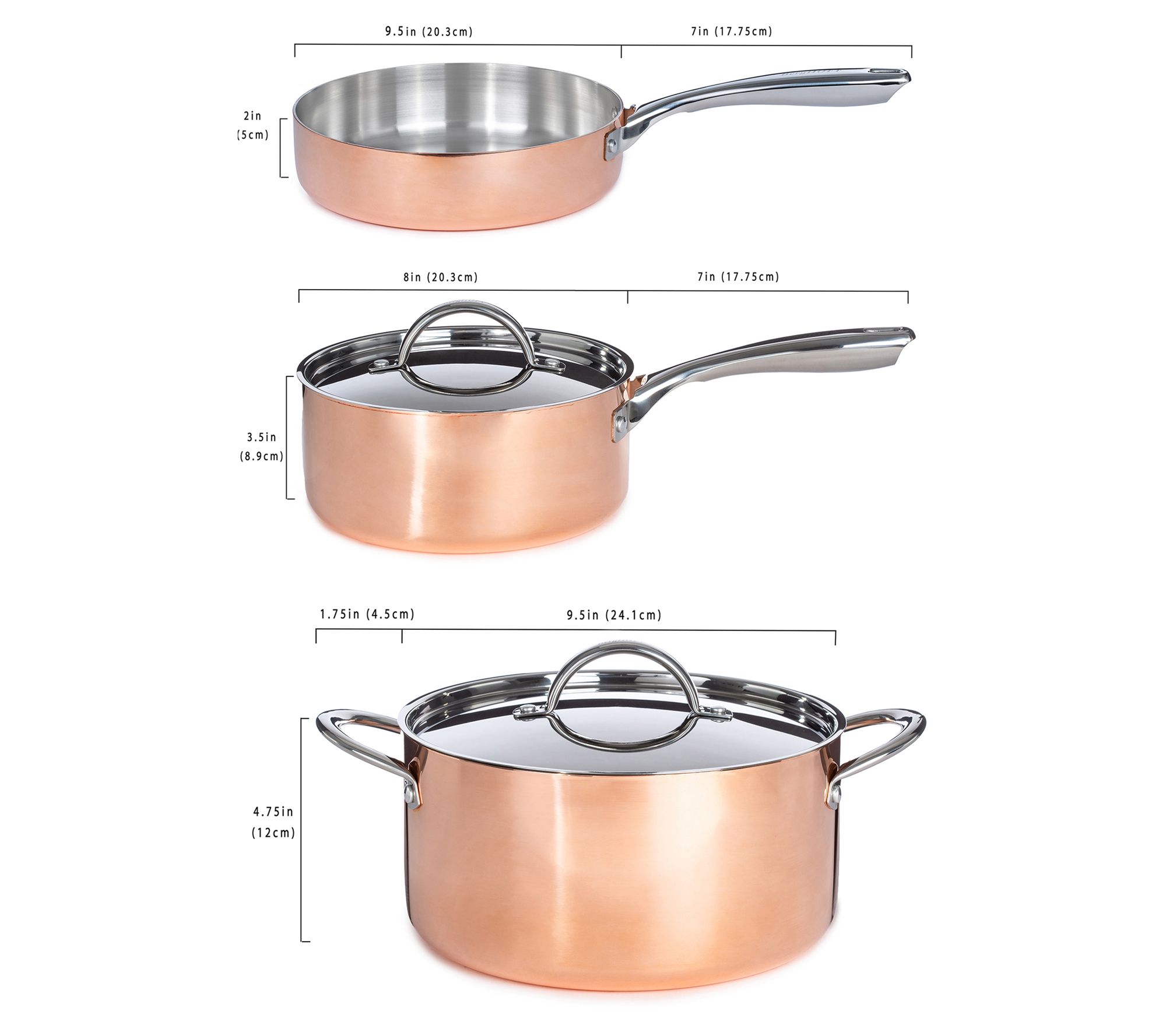 • Tri-ply material: 18/10 stainless steel interior, aluminum core, copper exterior