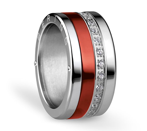 Bering Stainless & Red Stainless Interchangeable Band Ring Se