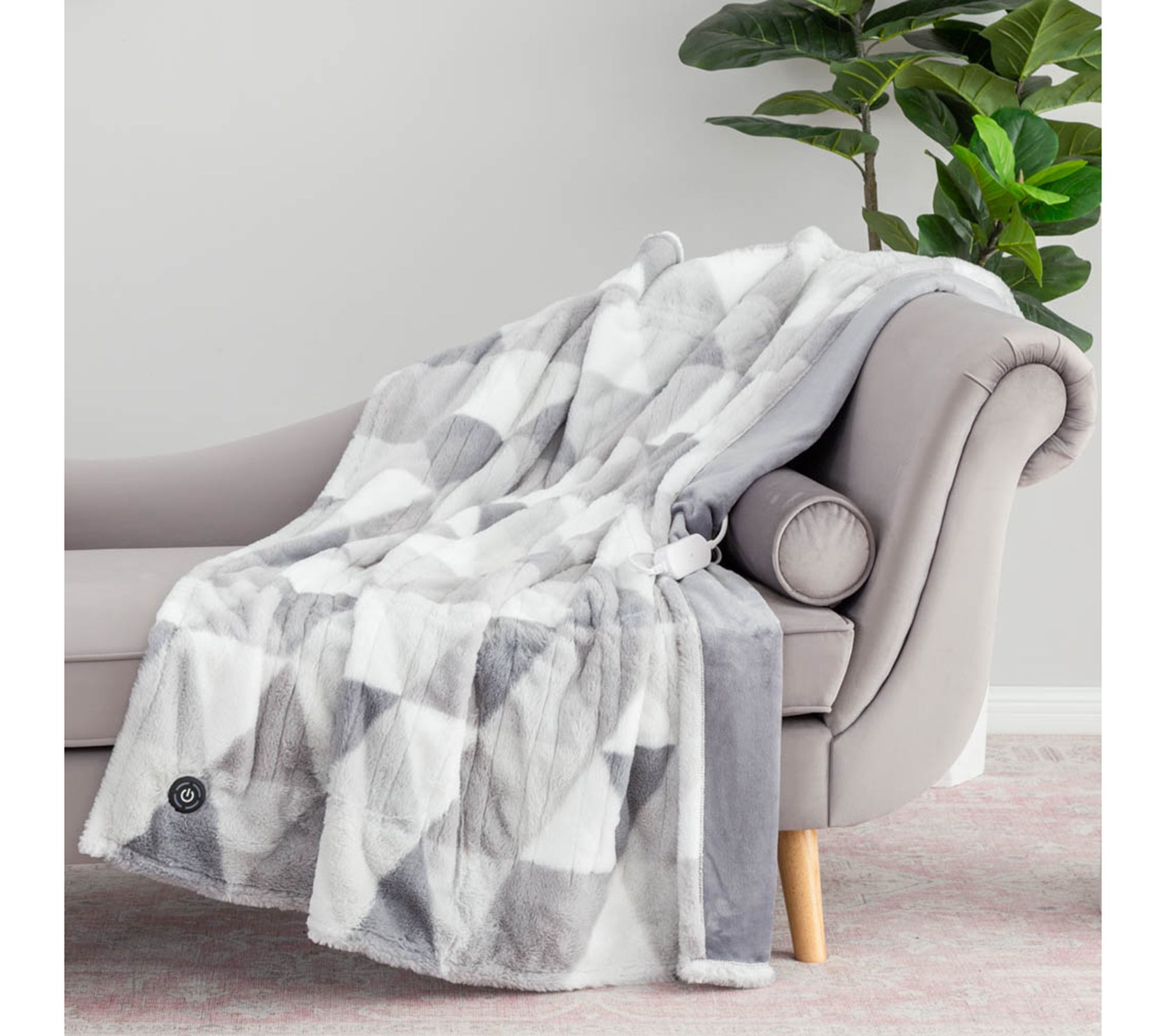 Wrap yourself in the luxurious warmth of the Berkshire Blanket faux fur VelvetLoft heated throw. This plush blanket is perfect for cozy nights with its ultra-soft texture and four adjustable heat settings. From Berkshire Blanket.