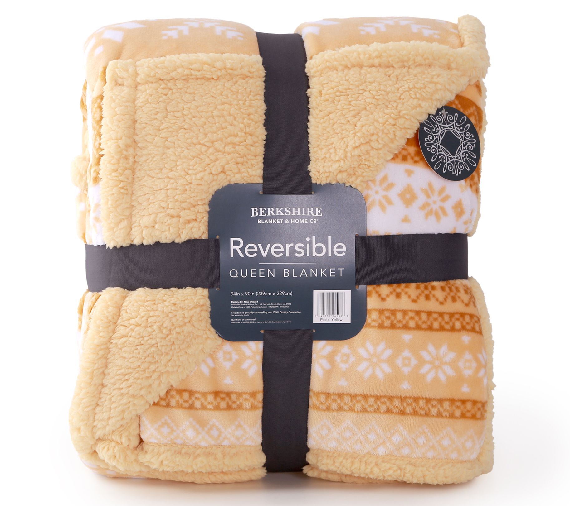 Berkshire Blanket Velvet Soft/Sherpa Fair Isle Blanket - Full. Dimensions: 80"x85" Content: 100% Polyester Care: MWCGCS/UONCBAN/TDNH/AOLD/DNI Imported.