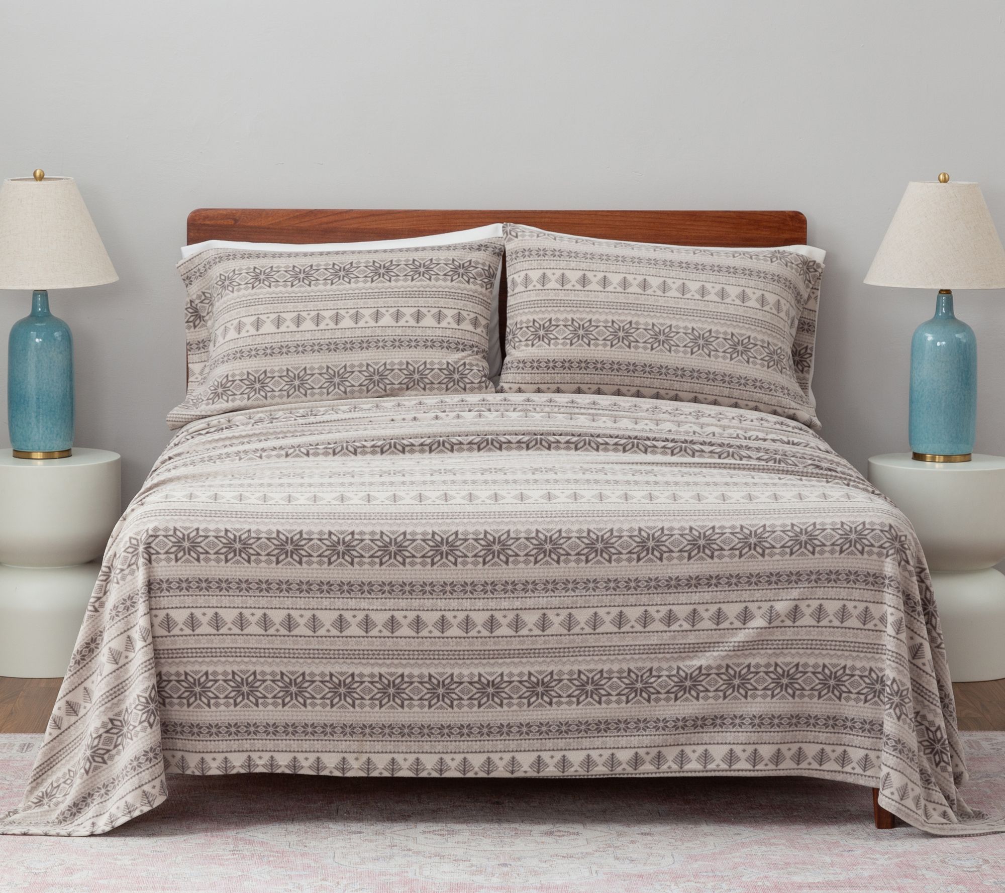 Forecast says first frost? You'll never be cold in these Polarfleece sheets. Only perfectly comfortable. Soft, warm, cozy, and so inviting, you won't even mind it -- much -- when winds start whipping. And that welcoming Fairisle print? It covers your bed in all the cabin-chic feels. From Berkshire Blanket.