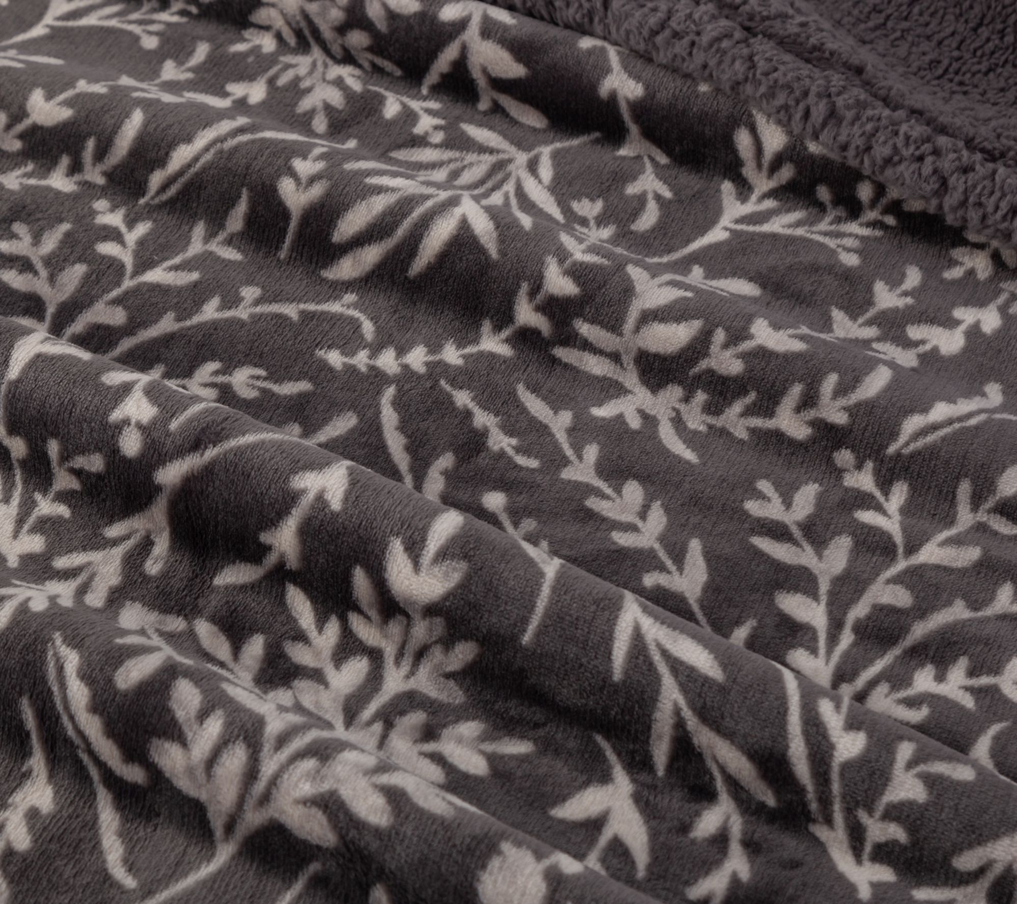 Velvetsoft print side reverses to solid-color sherpa side