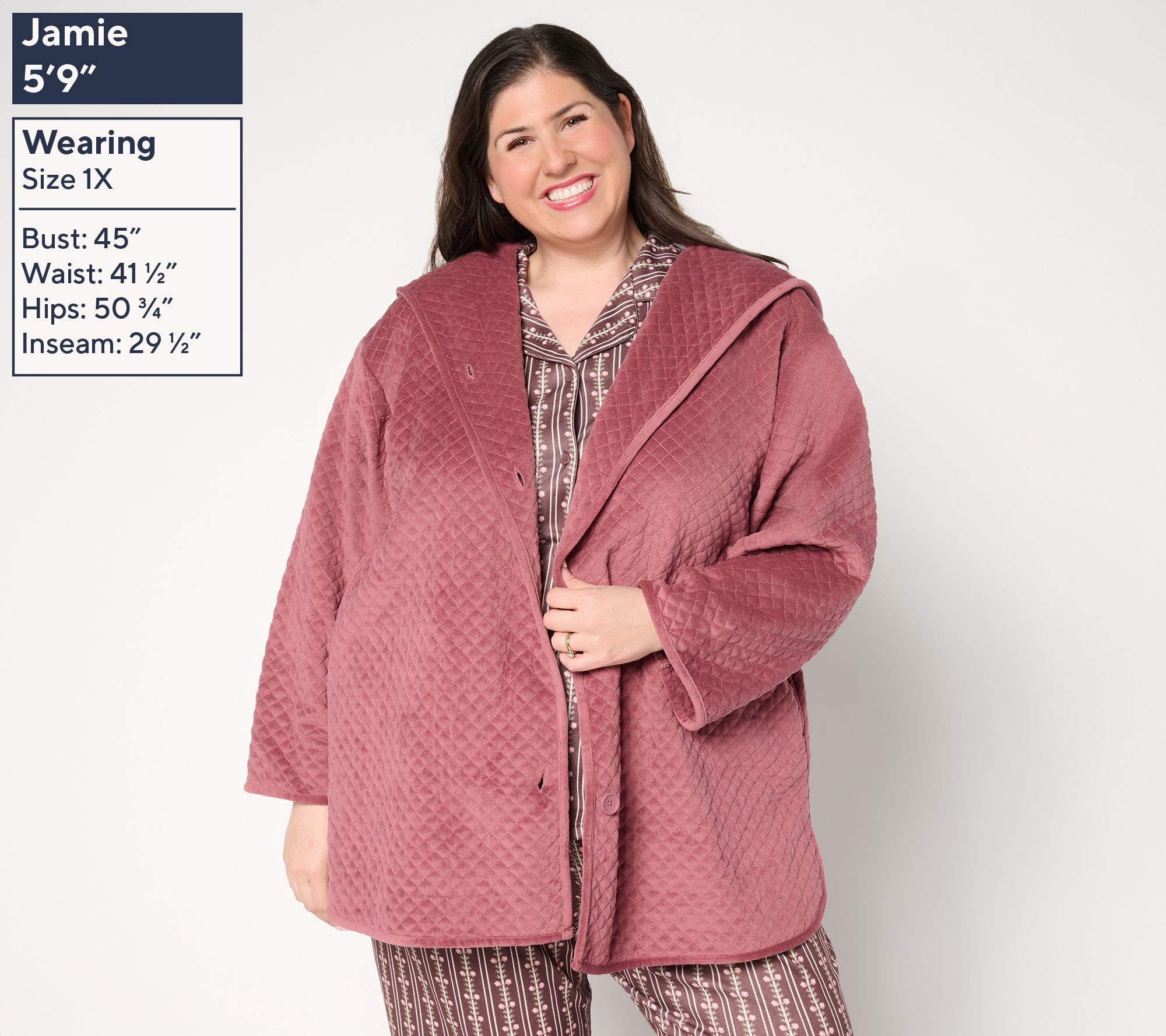 Settle in for a cozy evening or add a soft layer before stepping out with this quilted knit cardigan. The roomy hood, button-front design, and side slits offer relaxed comfort whether you're lounging at home or heading out for casual catch-ups. From Berkshire Homewear.