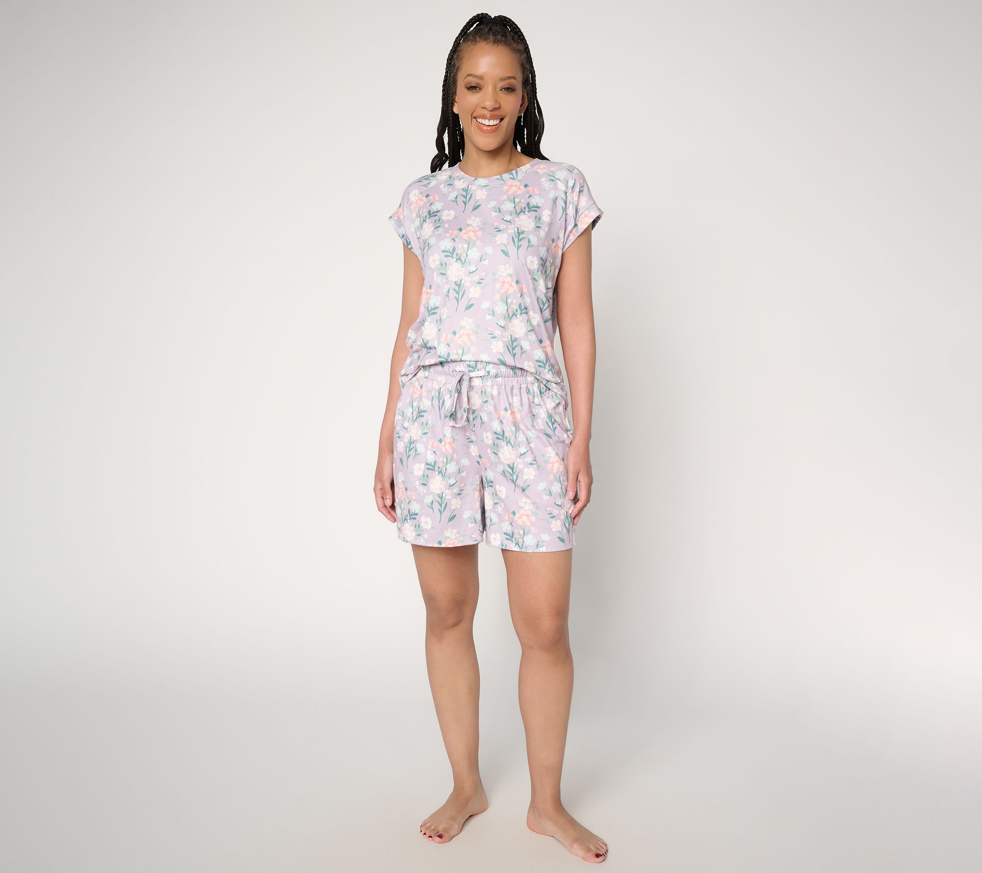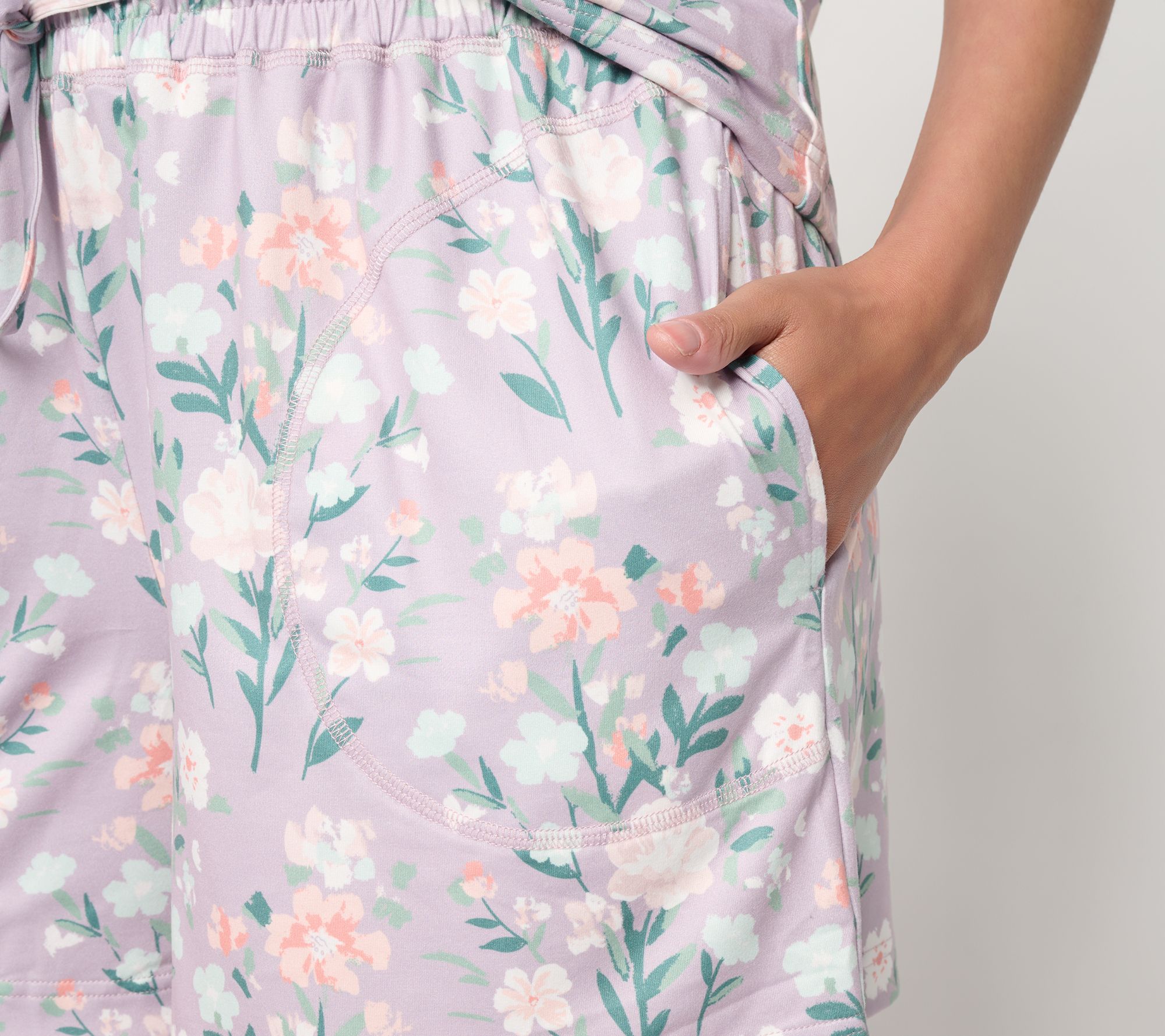 Heading into a night of restful sleep or lounging around the house becomes extra delightful in this PJ set, featuring a silky smooth knit top and matching shorts. The fuss-free relaxed fit, pockets, and adjustable waistband keep comfort at the forefront, so you can unwind your way any time of day. From Berkshire Homewear.