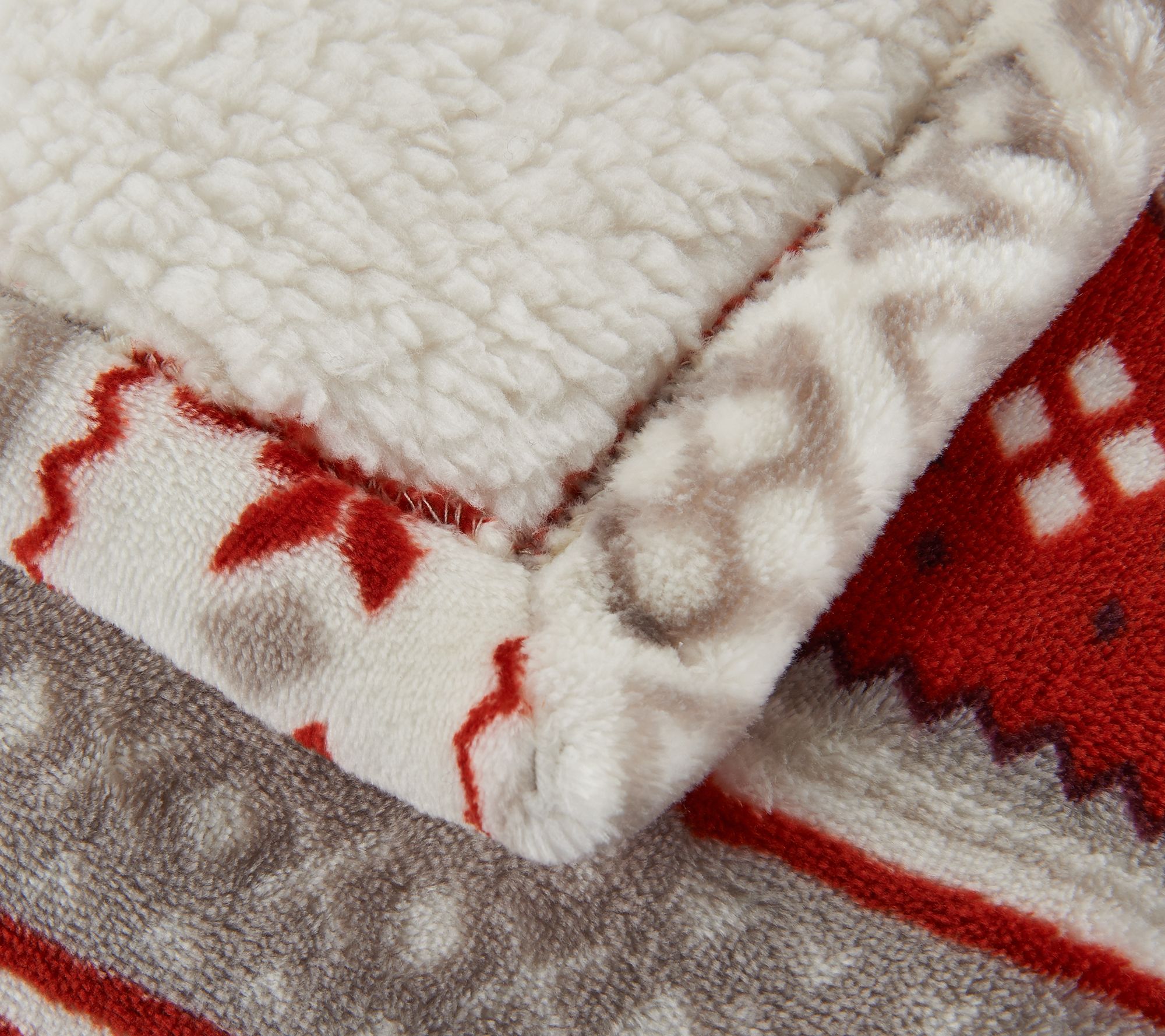 Come in from the cold and warm up beneath this Berkshire sherpa blanket. Its festive Fair Isle pattern brings a delightful decorative touch to any living space, while the oversized design gives you plenty of room to keep cozy. From Berkshire Blanket.