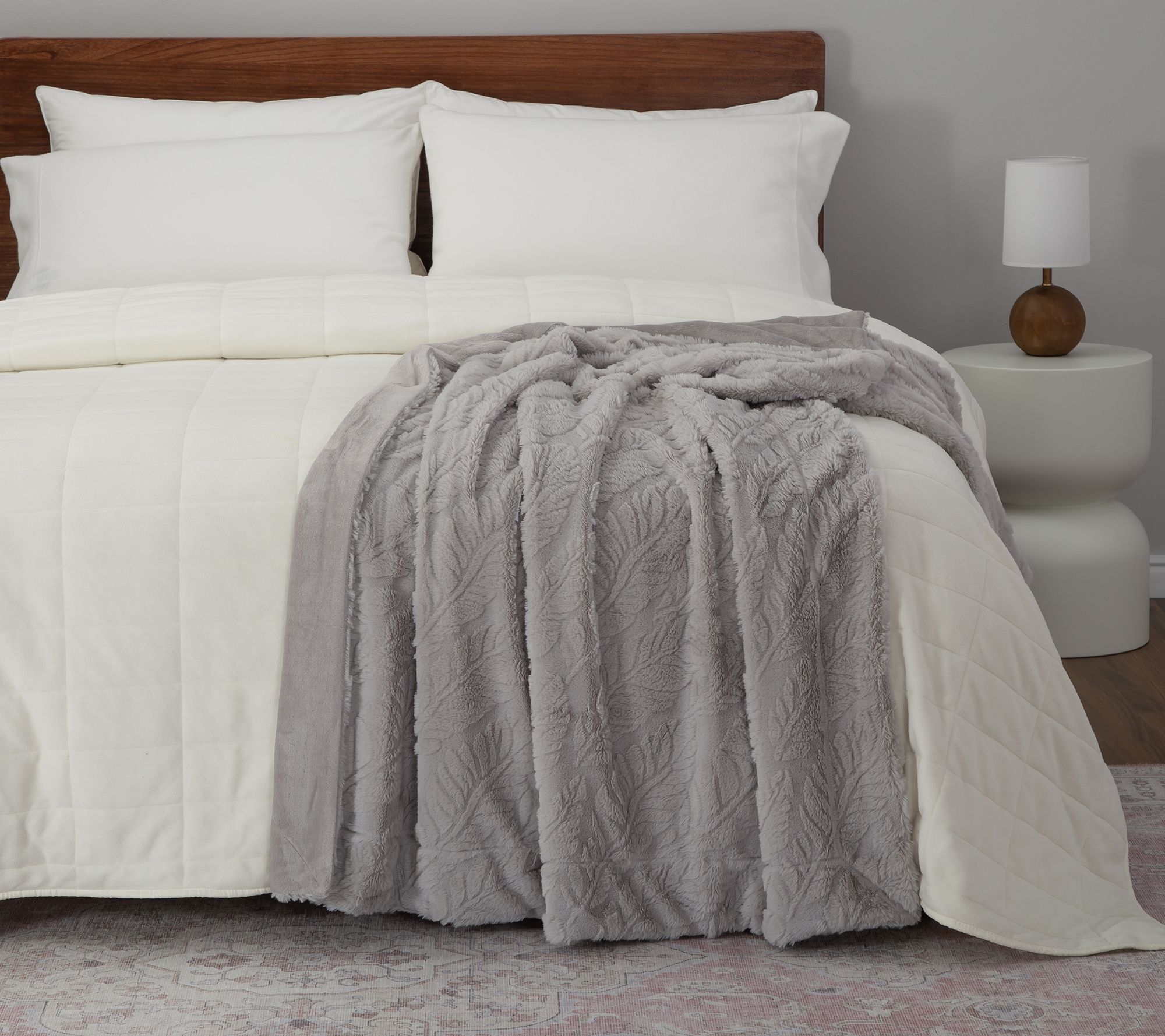 Wrap yourself in heavenly comfort with this plush angel feather throw. From Berkshire Blanket.