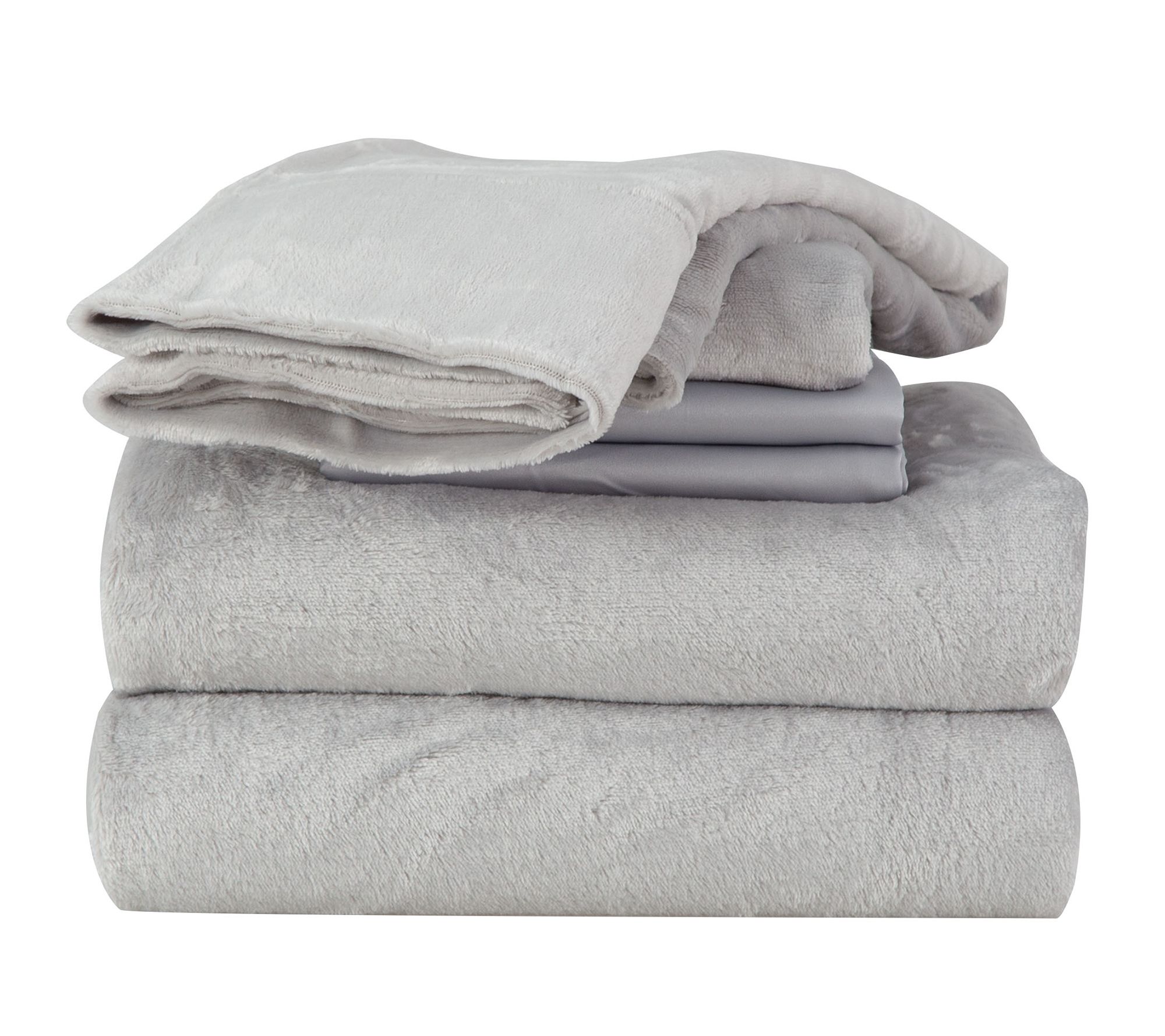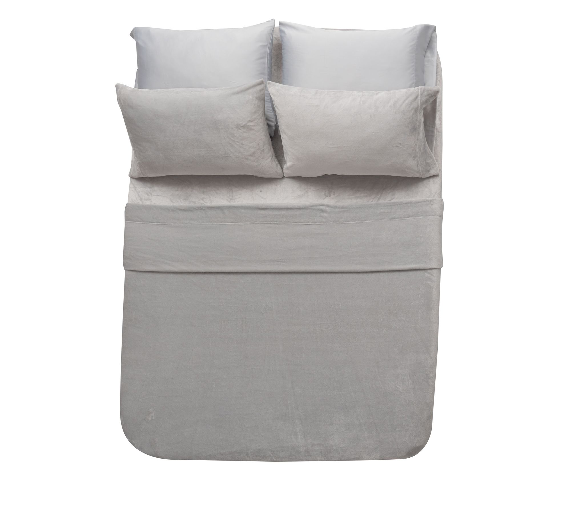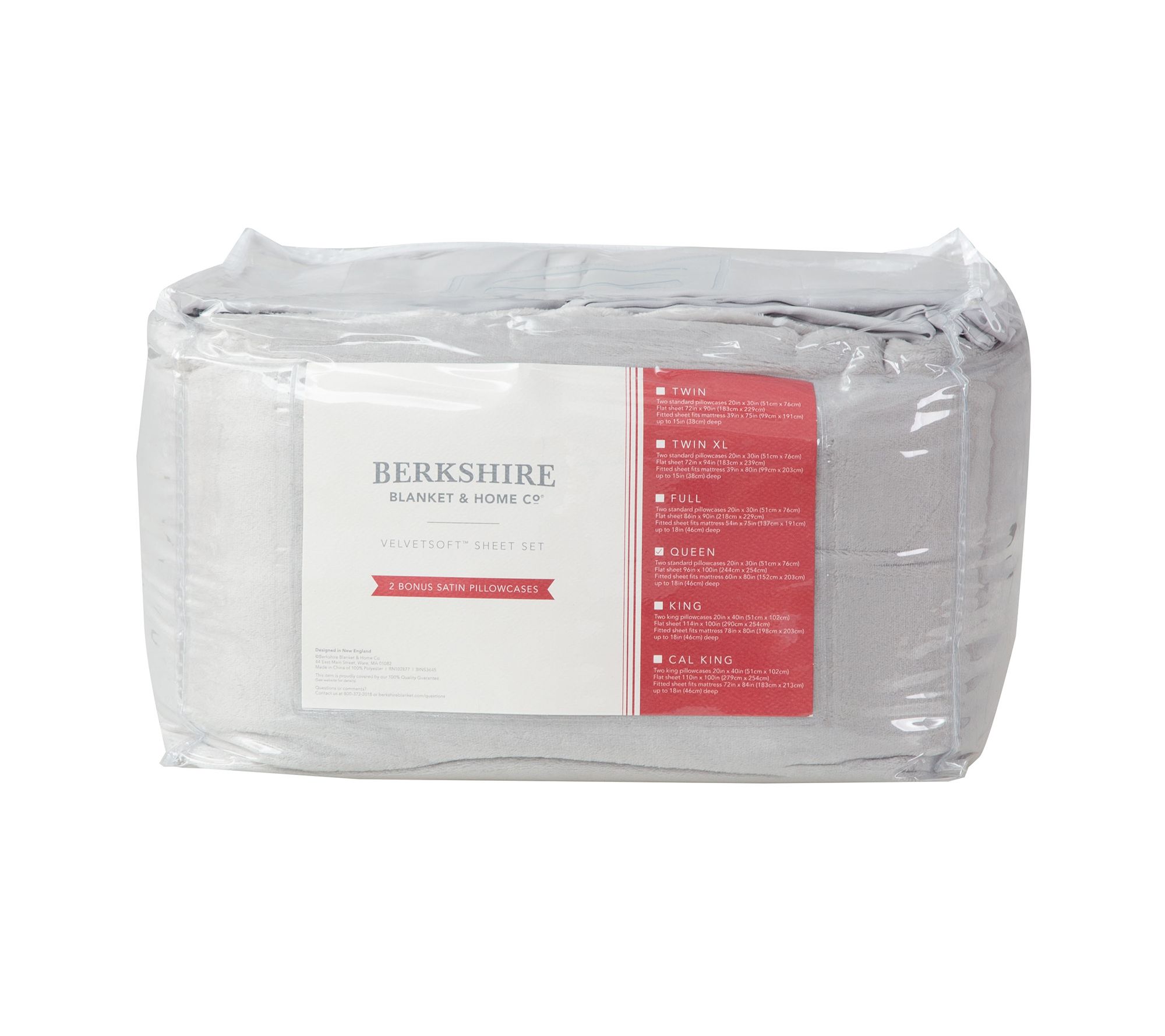 Includes flat sheet, fitted sheet, two Velvetsoft pillowcases, and two satin pillowcases
