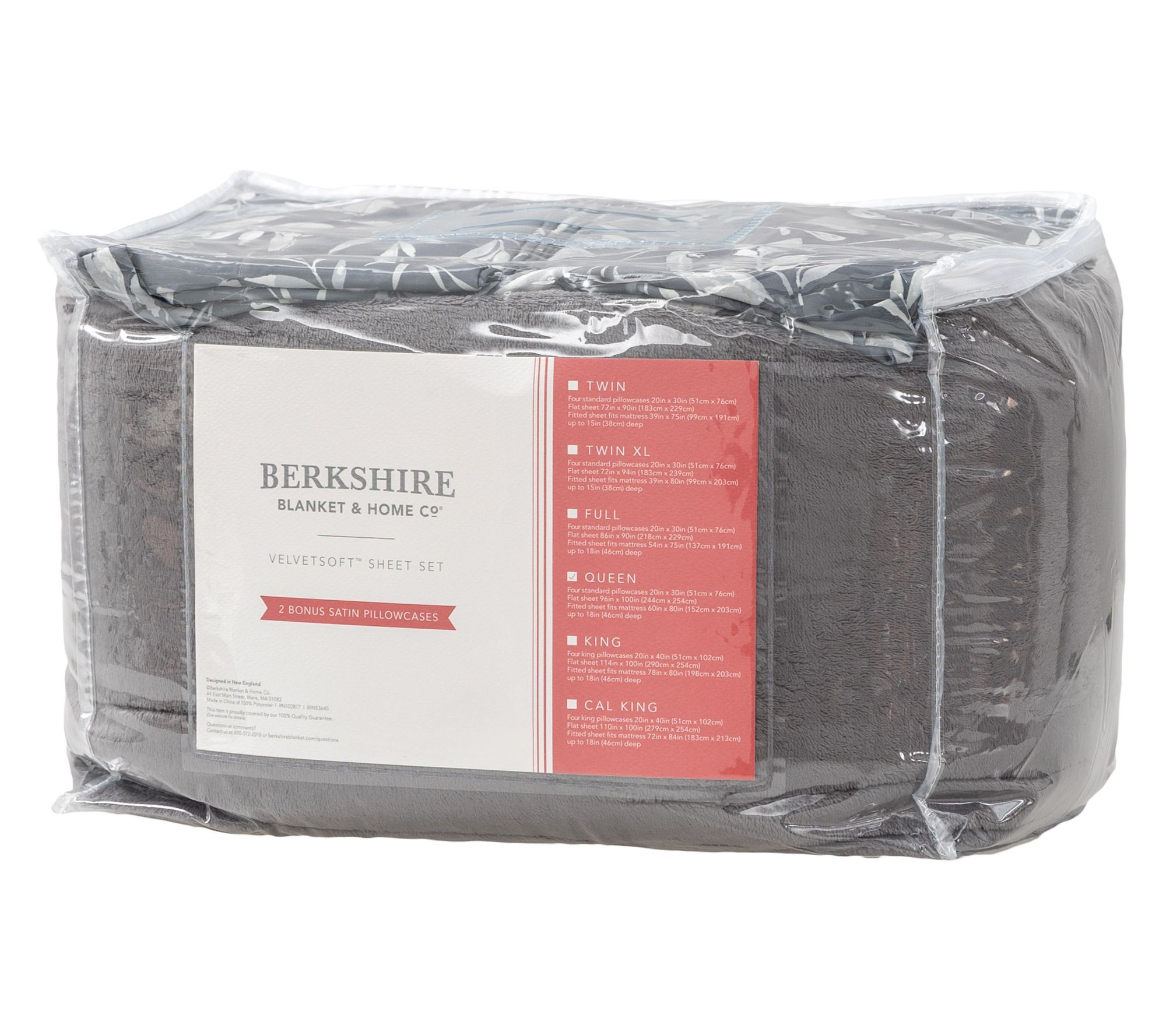Includes flat sheet, fitted sheet, two Velvetsoft pillowcases, and two satin pillowcases