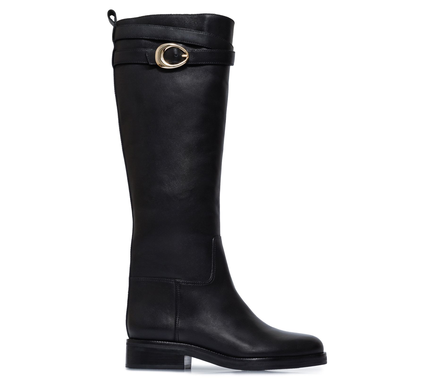 Classic meets contemporary in these tall-shaft leather riding boots. Featuring a low heel, rounded toe, and detachable buckle, they're a smart and practical addition to your fall and winter wardrobe. From Bernardo.