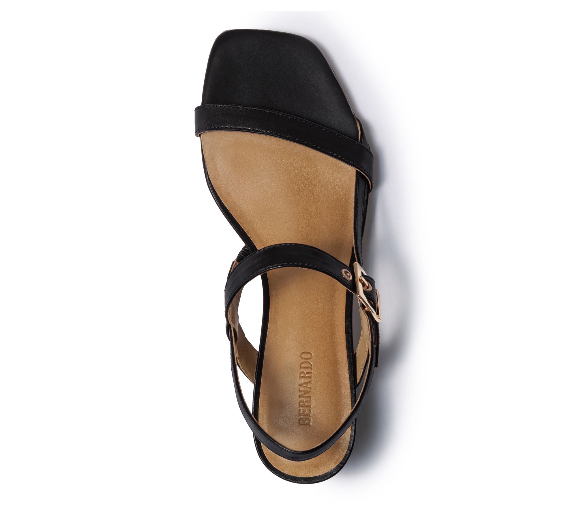 Slide into warm-weather days with ease wearing these low heel leather sandals. A minimal, streamlined strap design pairs effortlessly with wide-leg pants for brunch, or your favorite sundress for a sunset stroll. From Bernardo.