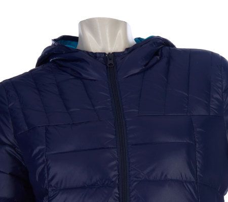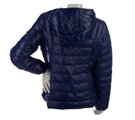 You know how cozy a down blanket can be. Well, this quilted coat is filled with both down and feathers to help keep you just as warm when you're out in the elements. A hood and two front pockets add another layer of can't-be-beat comfort. From Bernardo.