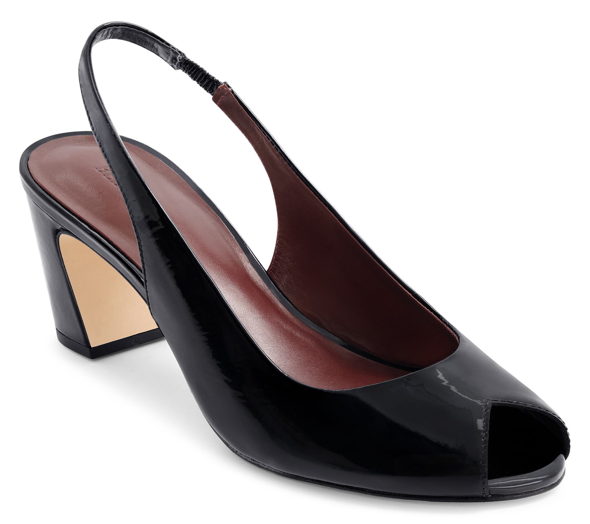 Slingback peep-toe design, patent leather or kid suede upper