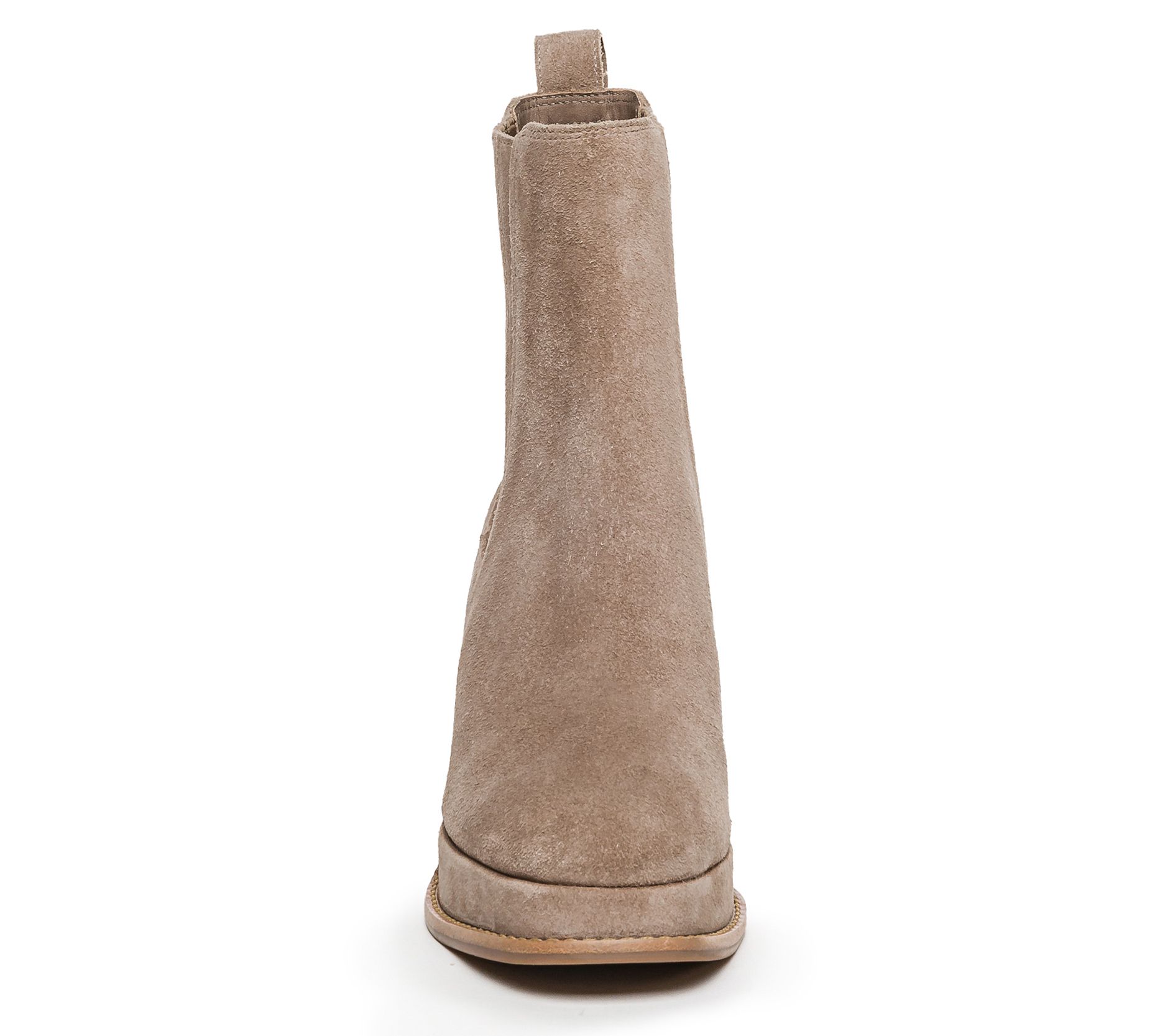 • Pull-on style, elastic gore panel, back pull tab, block heel, rounded toe