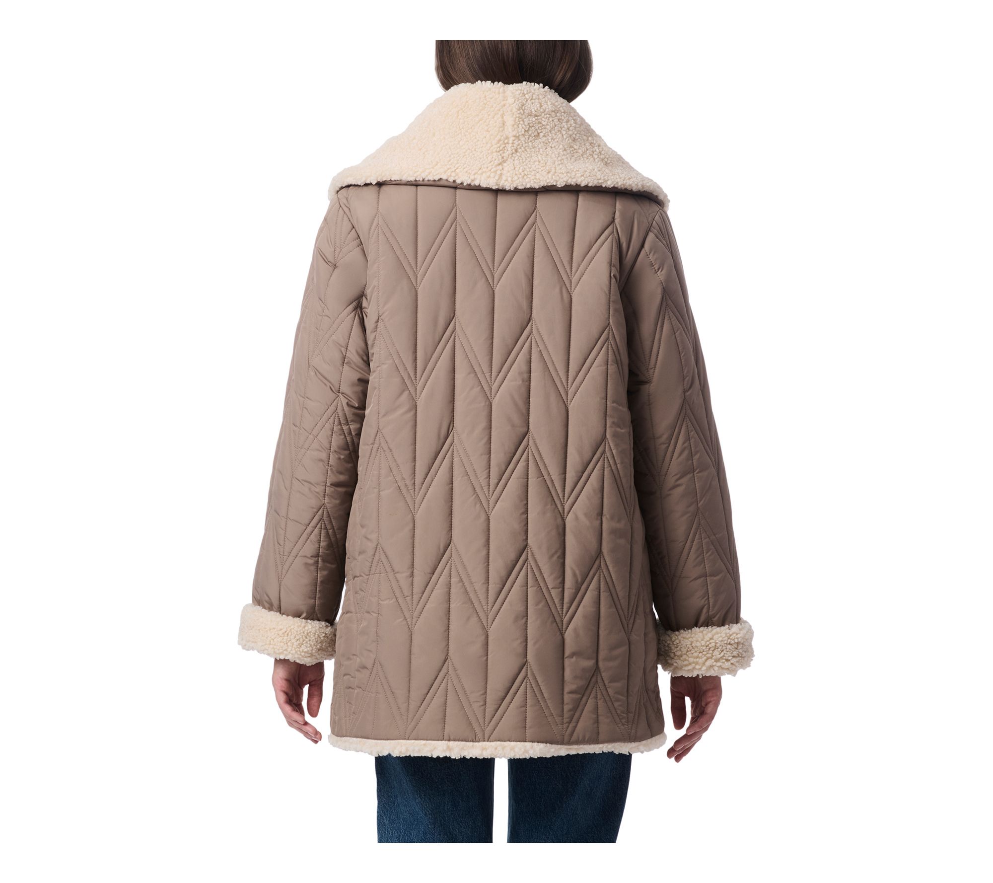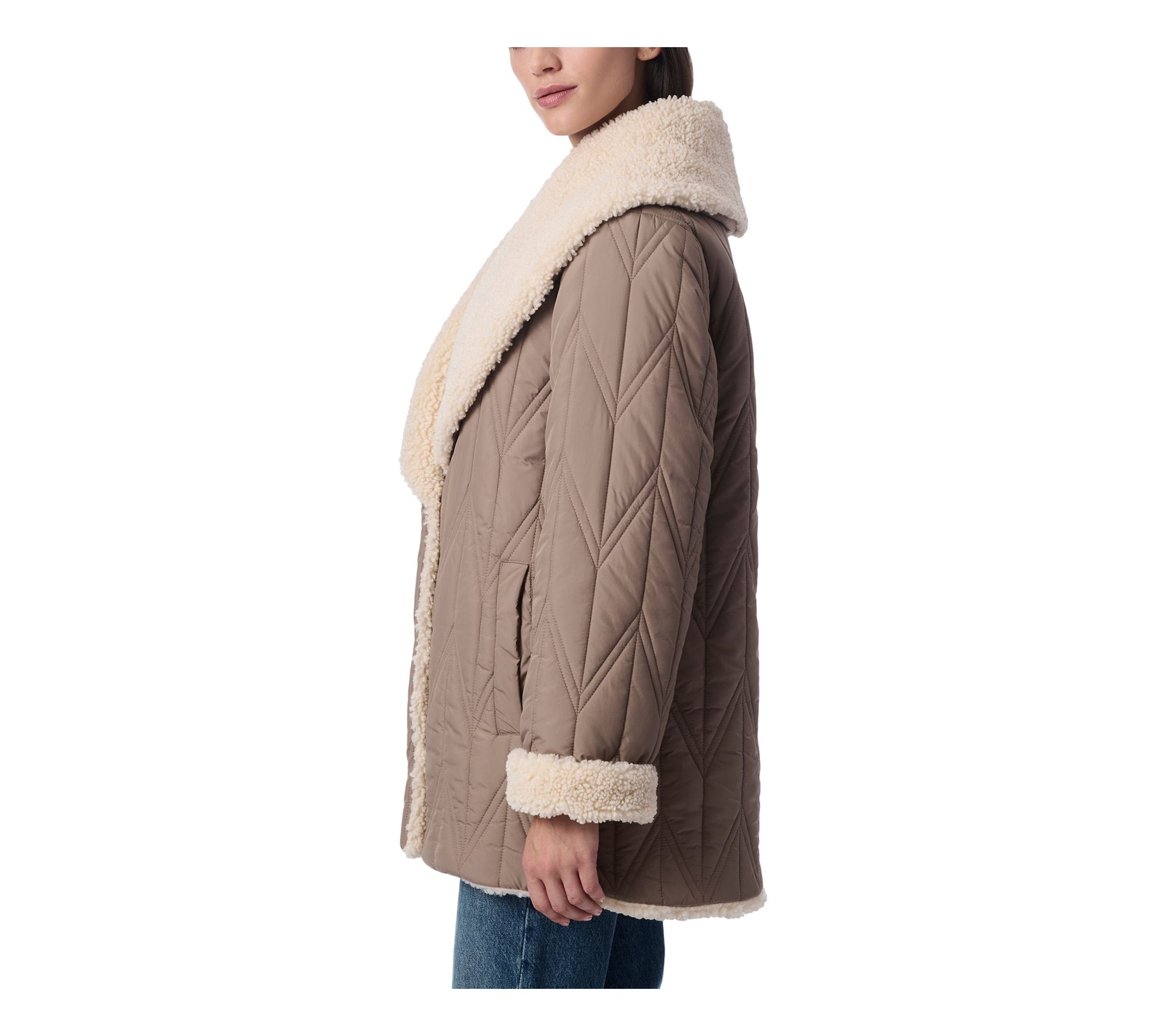 Bernardo Quilted Faux Sherpa Shawl Collar Jacket