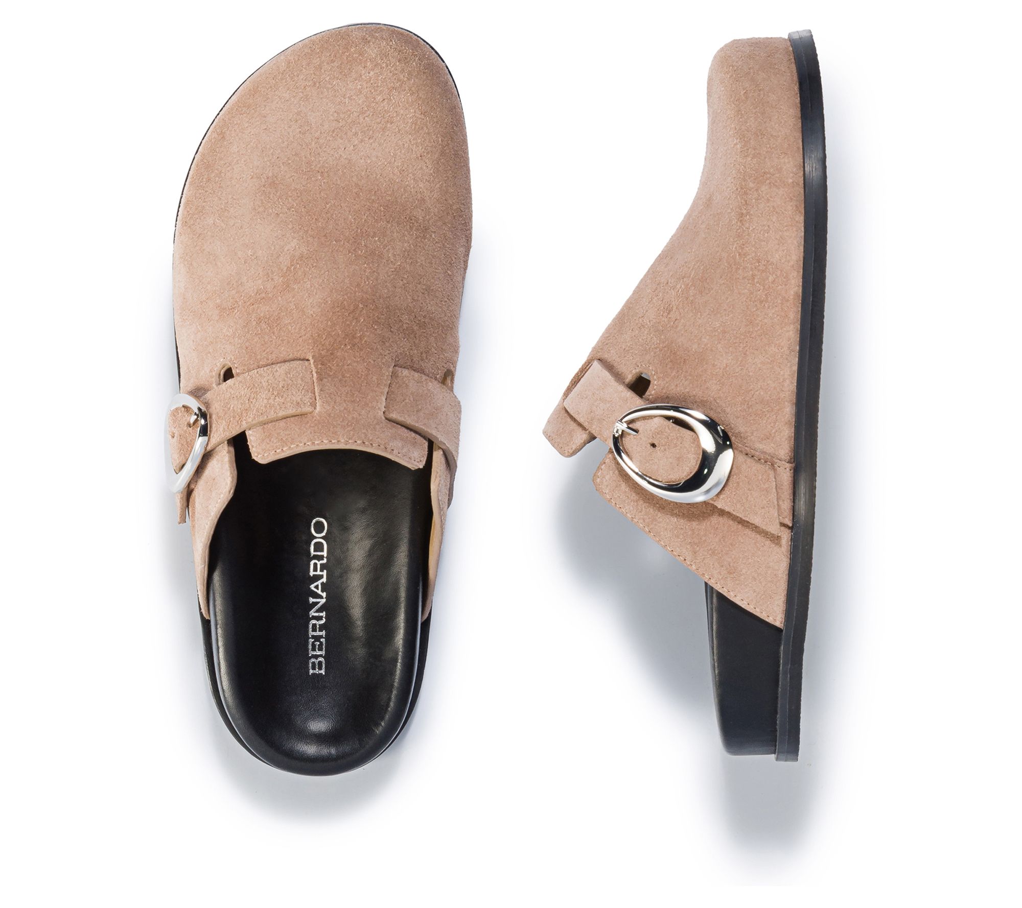 Step into effortless style and comfort with the Easton slip-on clog. Crafted with a unique buckle design and luxurious soft leather, this slide is perfect for any occasion, offering both sophistication and ease. From Bernardo.