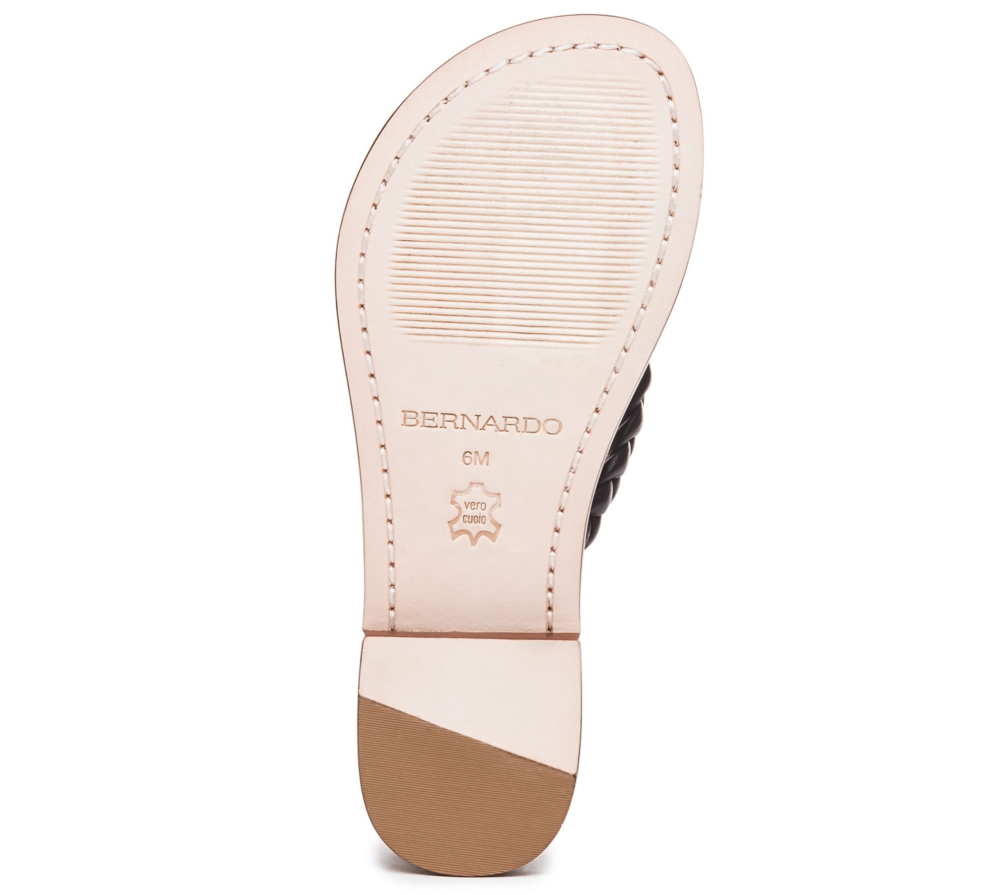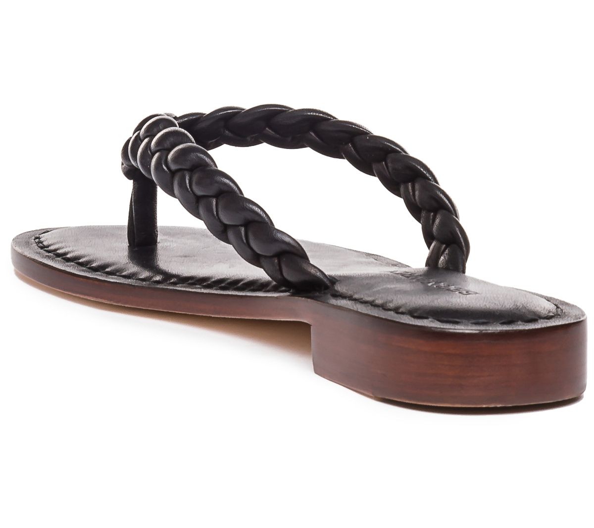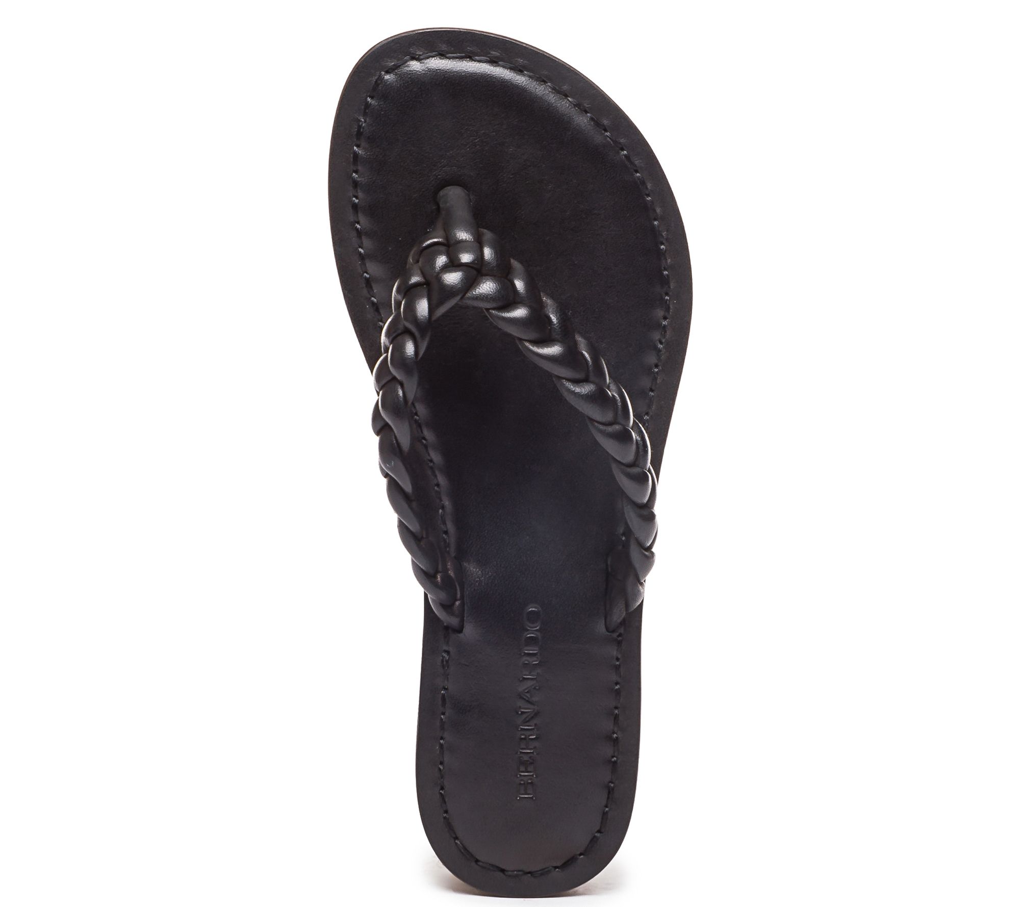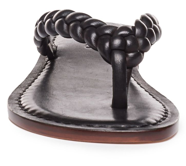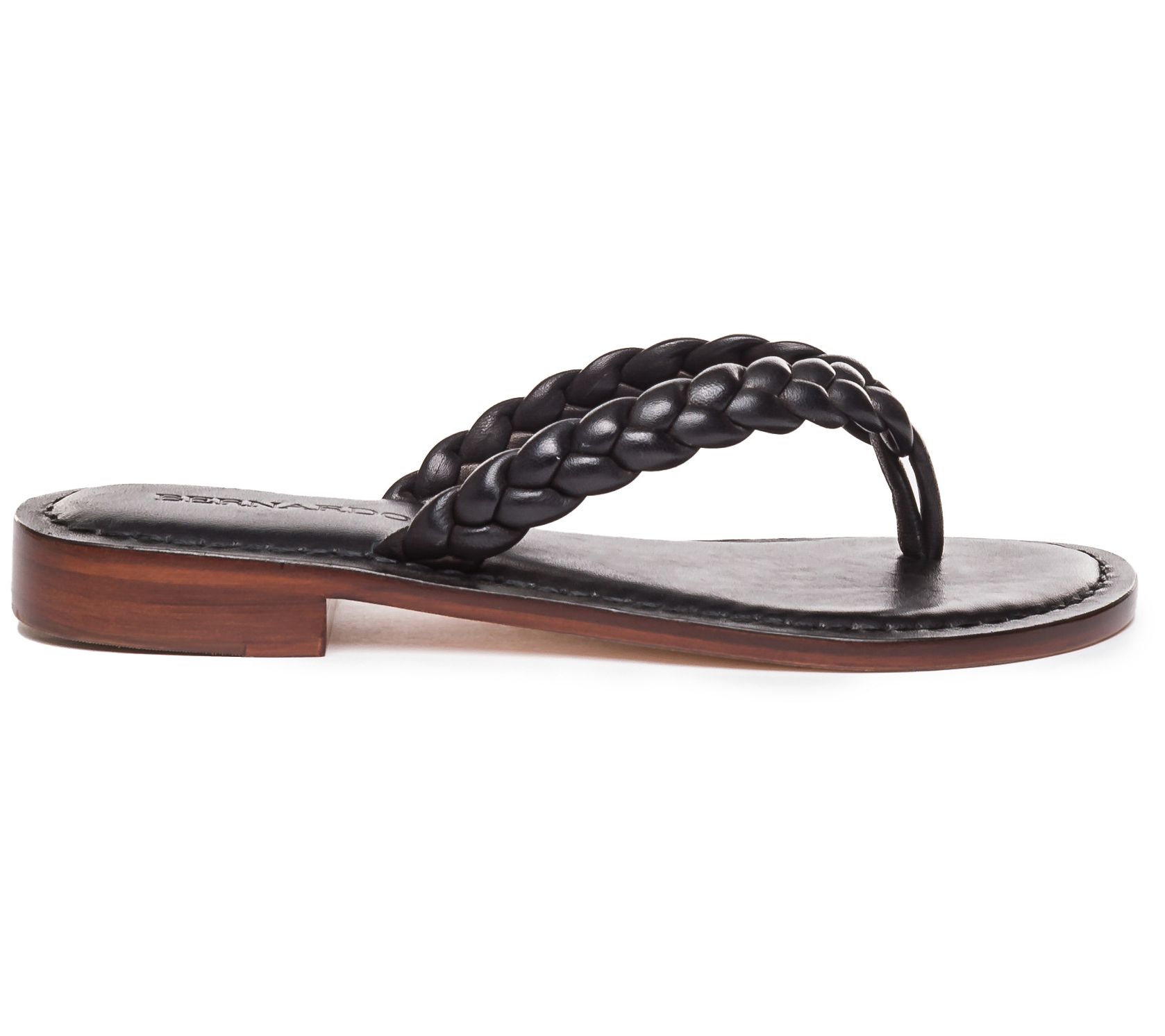 This classic thong gets a new 'do, styled with a braided leather strap for striking appeal. From Bernardo.
