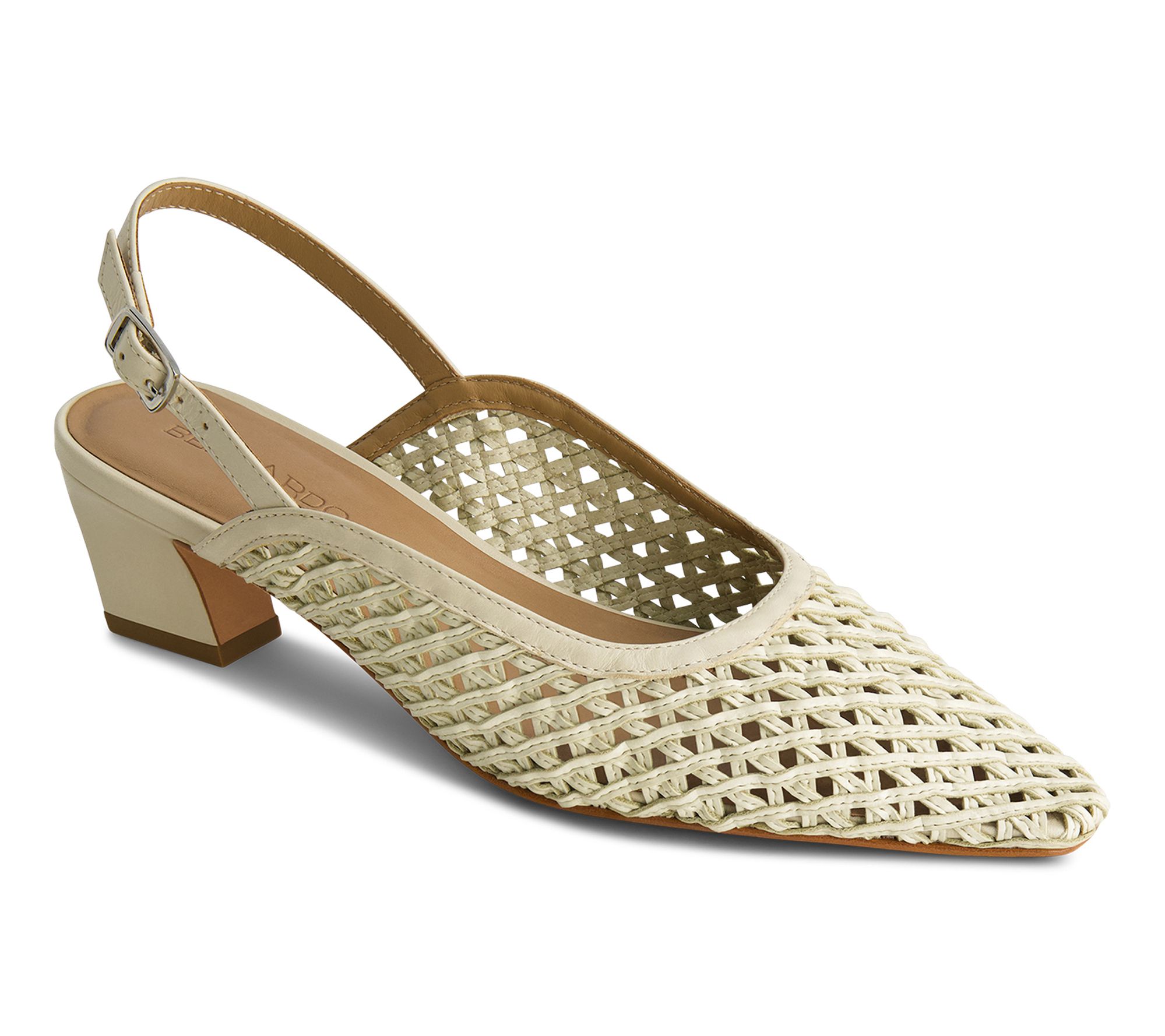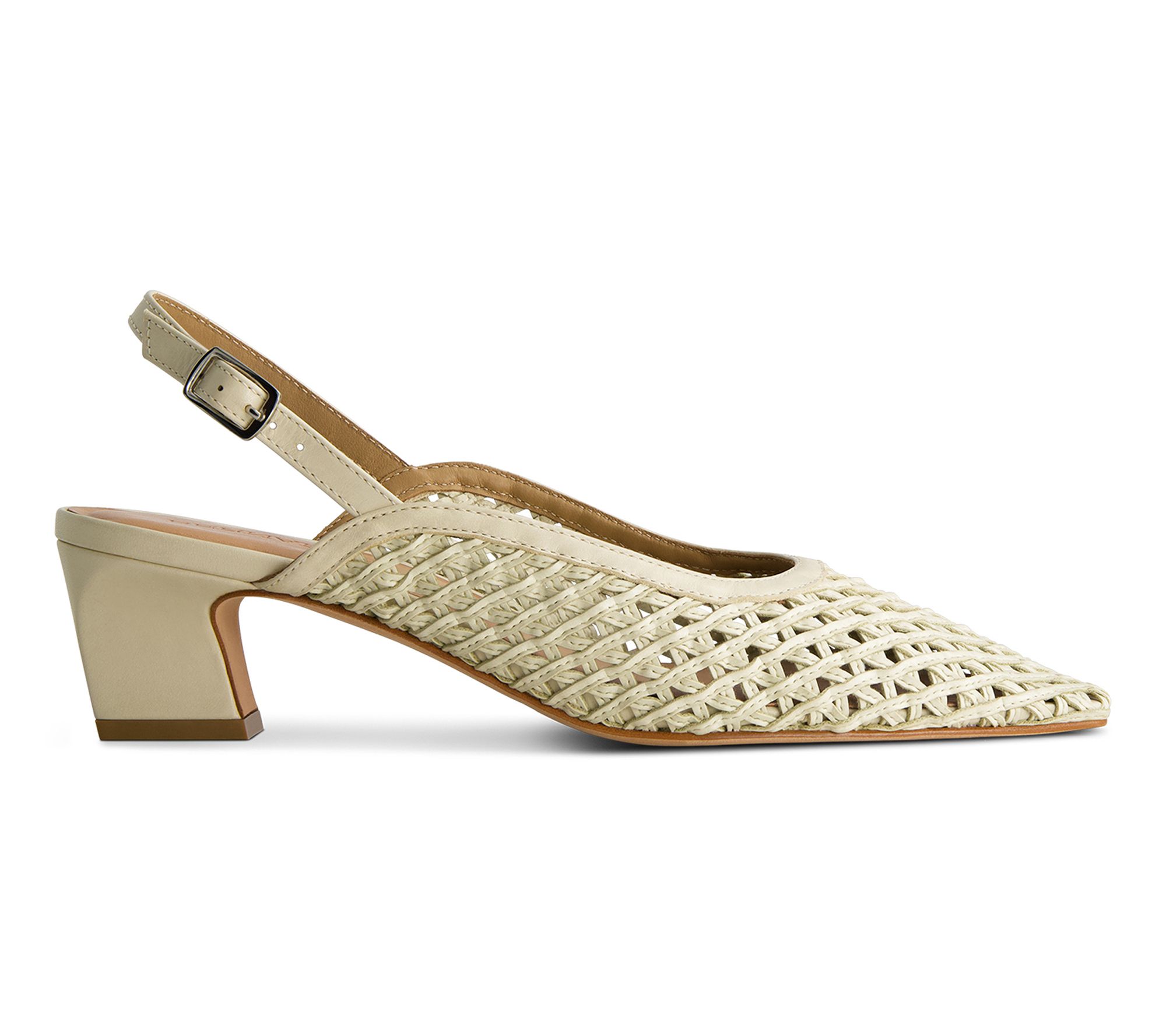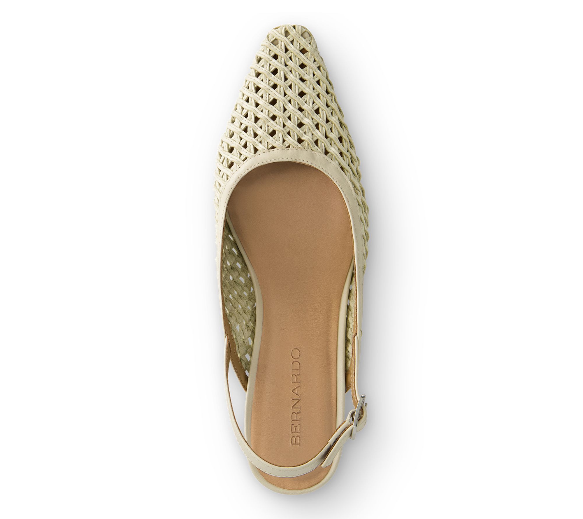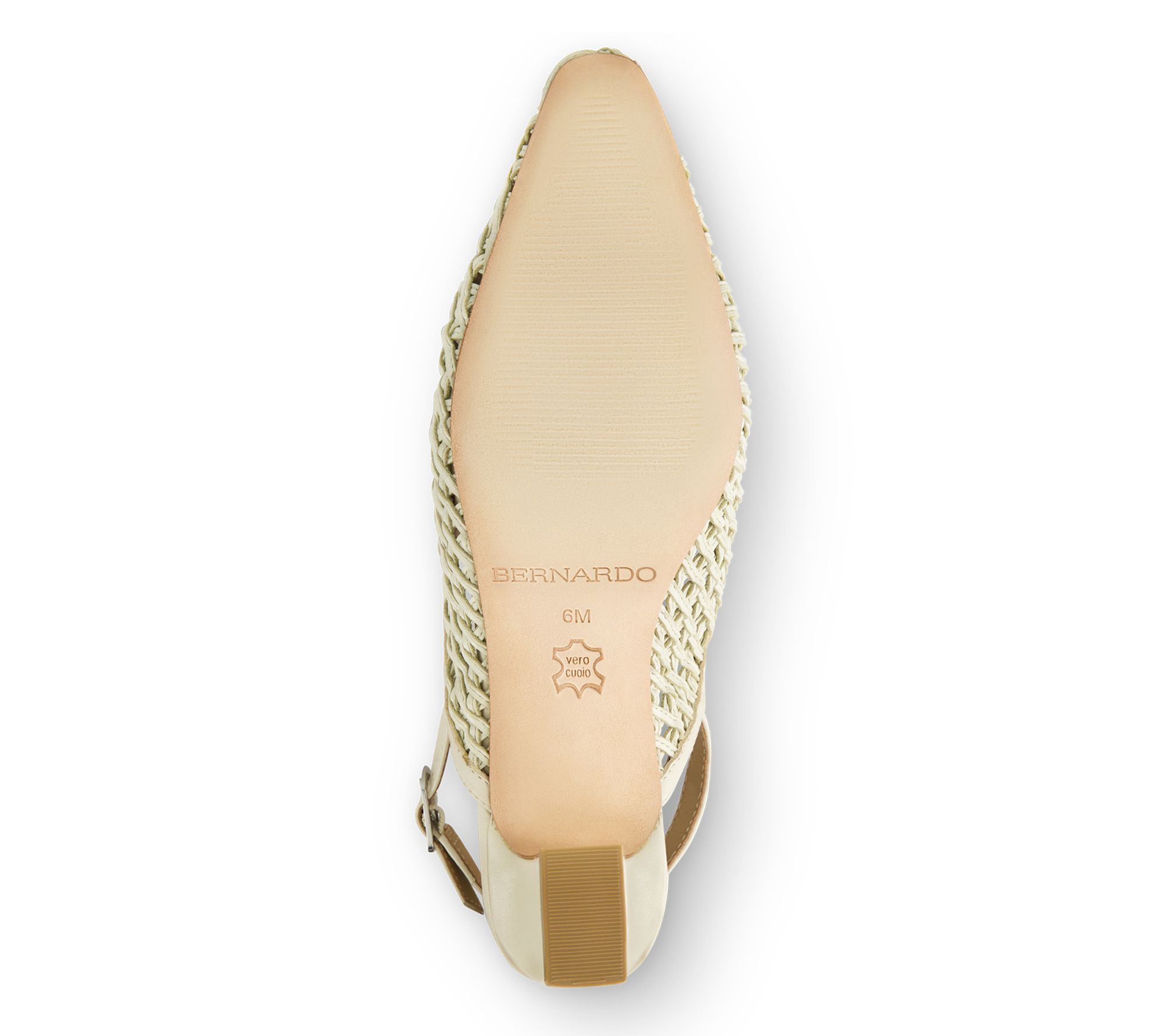 Step into timeless sophistication with the Bernardo woven leather slingback pump. With a meticulously crafted upper and modern curved lines, these pumps marry classic elegance with a contemporary twist. The elasticated straps and block heels provide a secure and comfortable fit, making them perfect for any occasion. From Bernardo.