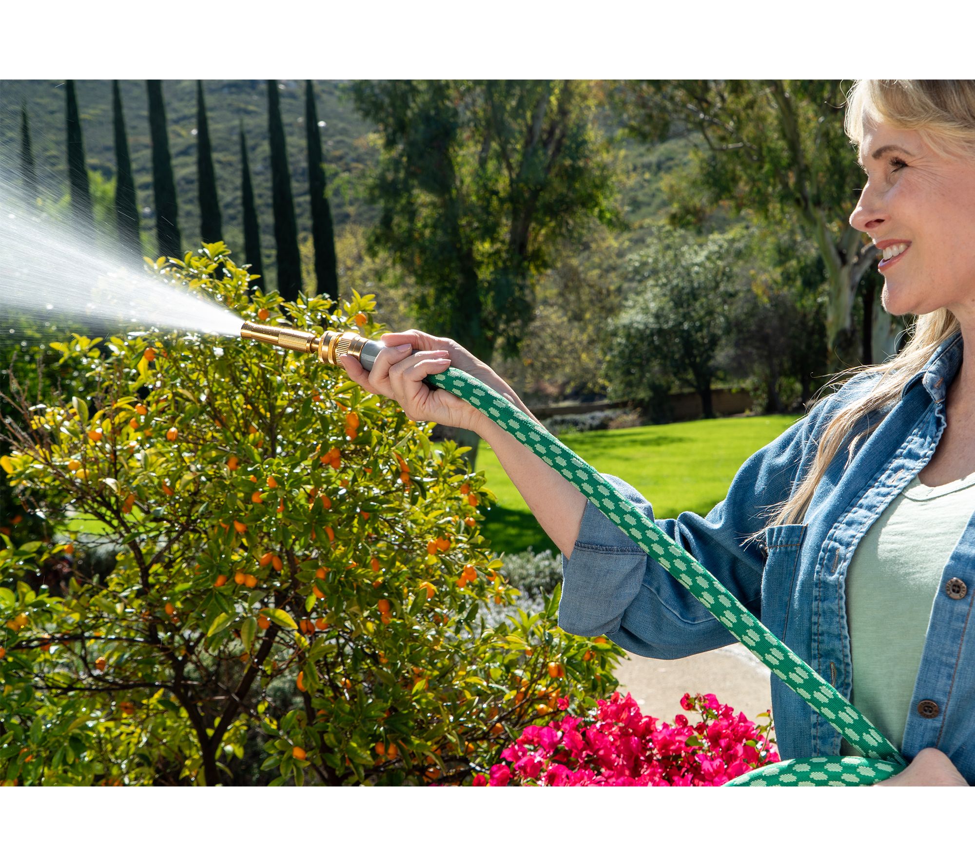 It's fashion and function for your landscape and garden! With its patented O-Hose and Flat Fire Hose technology, the 50' woven HydoHose takes up minimal space while ensuring consistent water flow. The twist on/off adjustable spray nozzle offers versatility for all your watering needs. From Bernini.