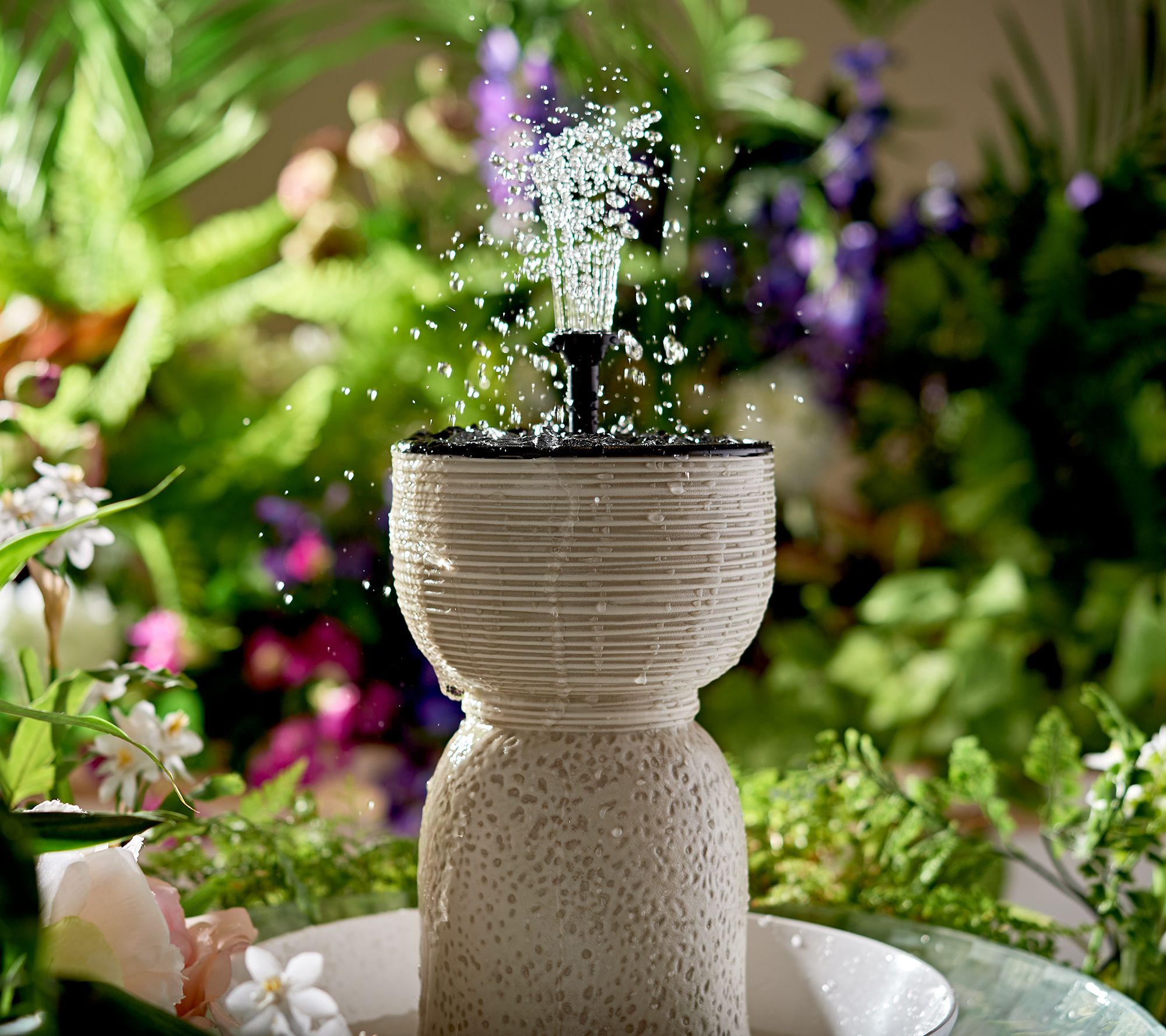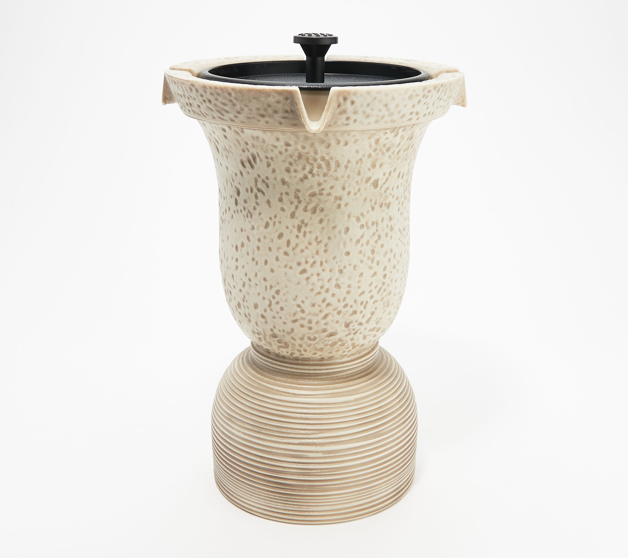 You're about to nail the stylish summer entertaining thing with one inventive accessory: Bernini's self-contained fountain tower. Place it in your favorite container (like that vintage vessel you found last year or a pretty planter, plants optional), add water, and pause for oohs and aahs from arriving guests. We're even imagining it for holiday displays! From Bernini.