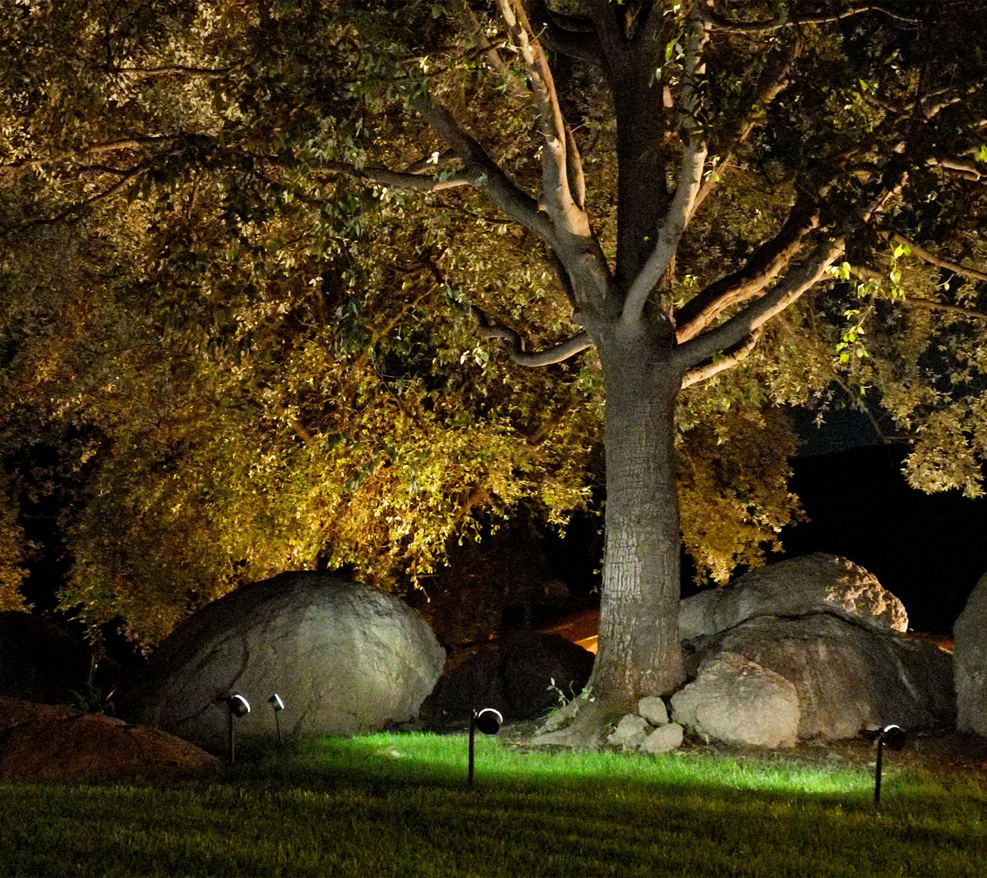 Includes four Luma solar-powered lights and four stakes