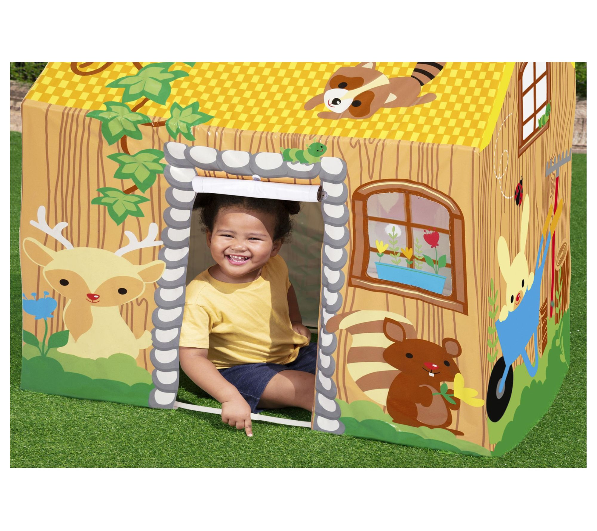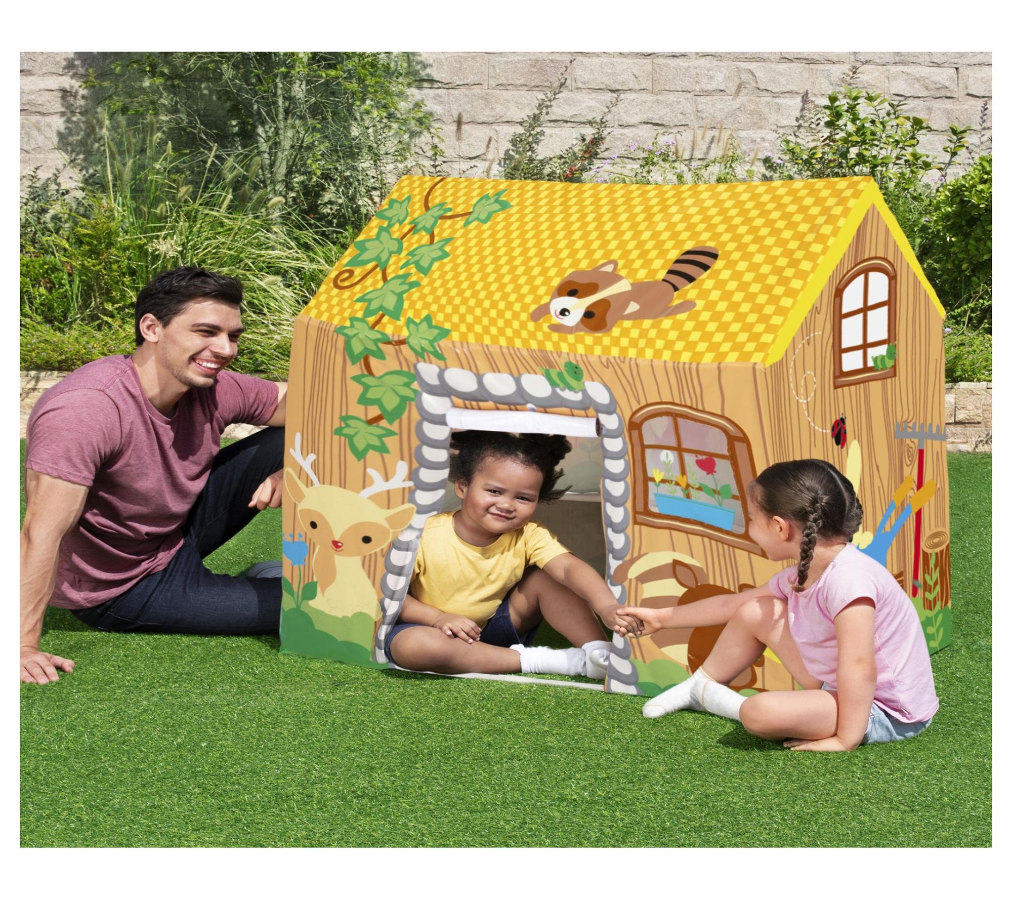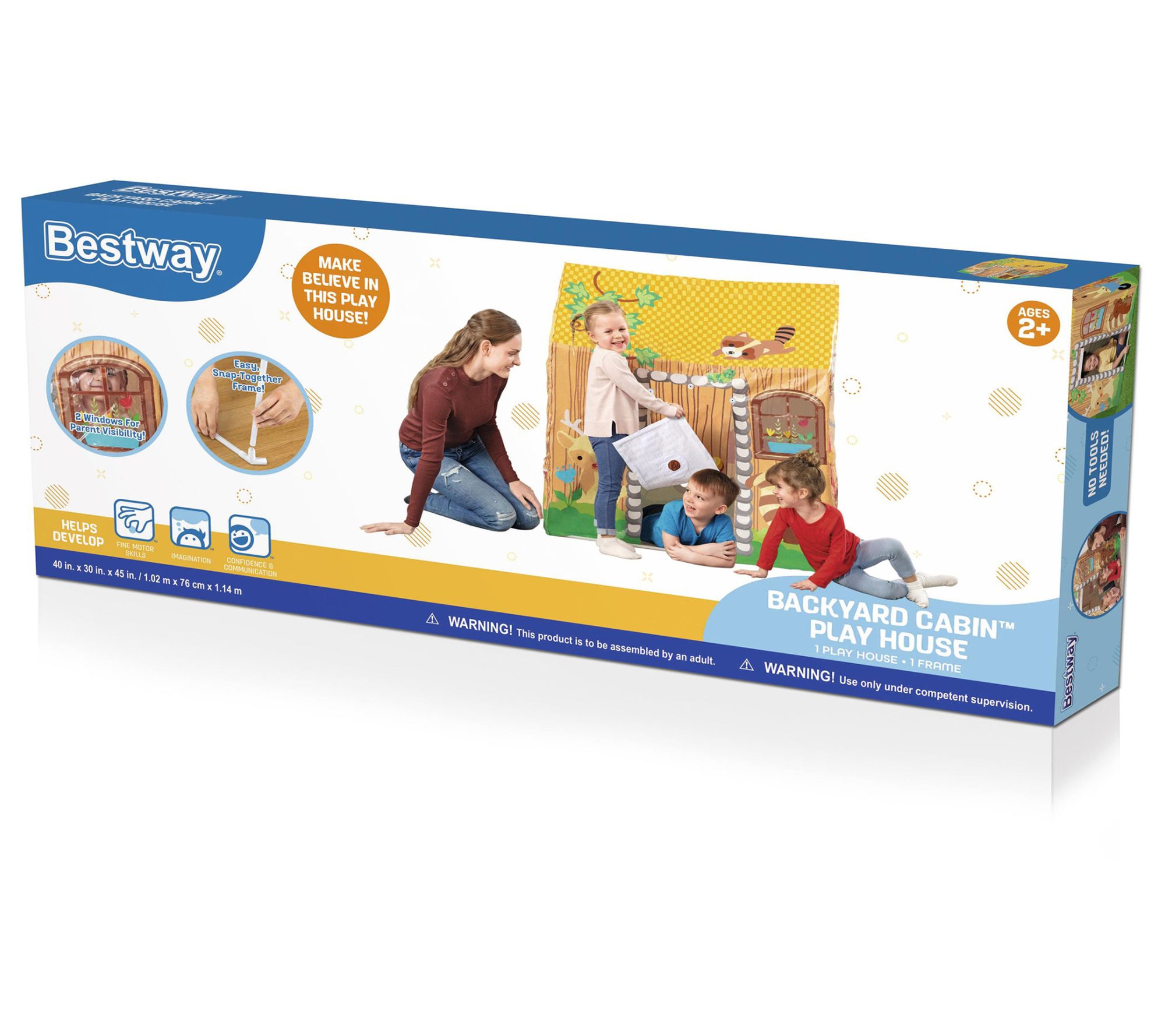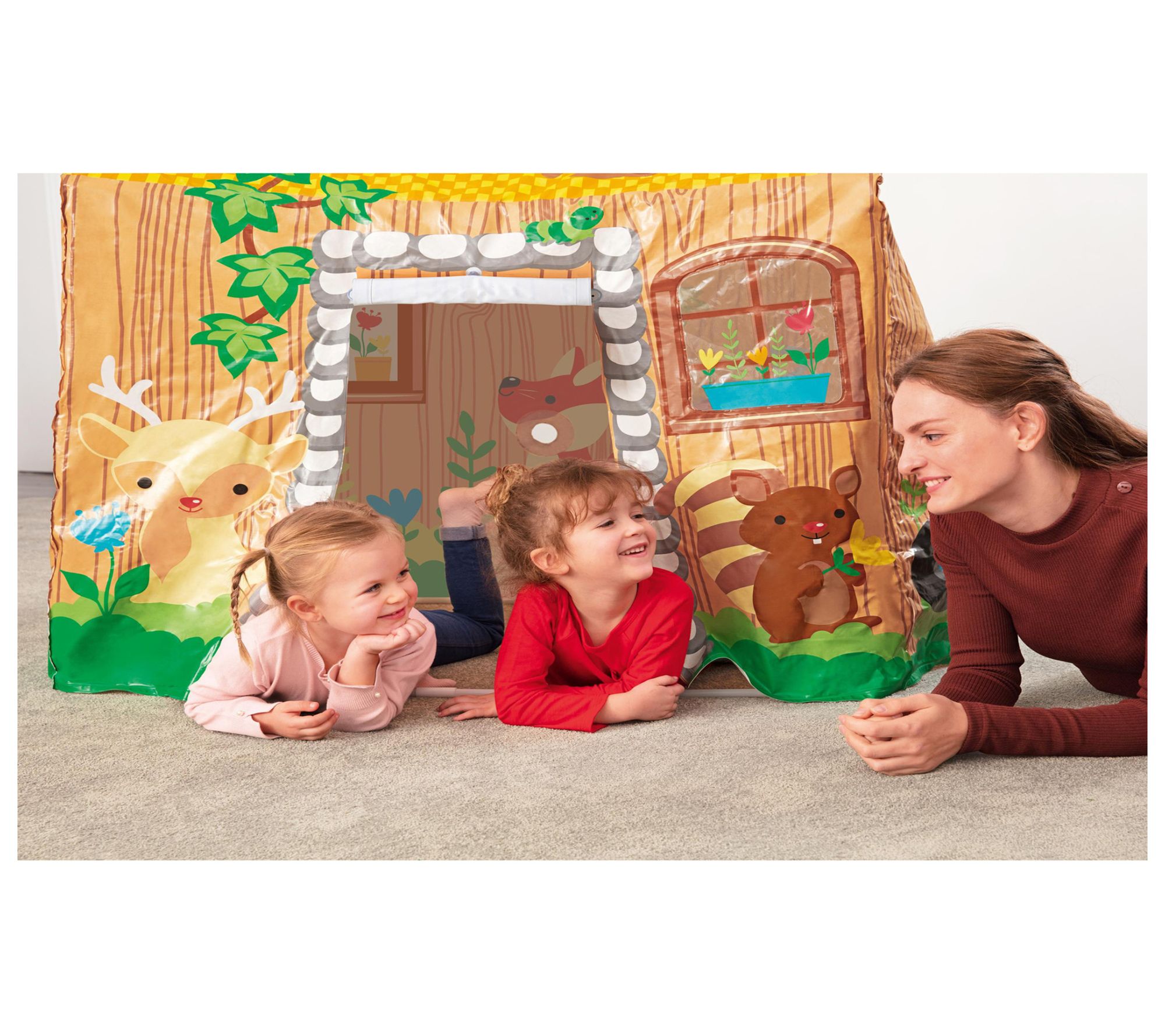 Set up a perfect play area with this inflactable cabin boasting bright illustrations with windows and a door to activate young imaginations. From Bestway International, Ltd.