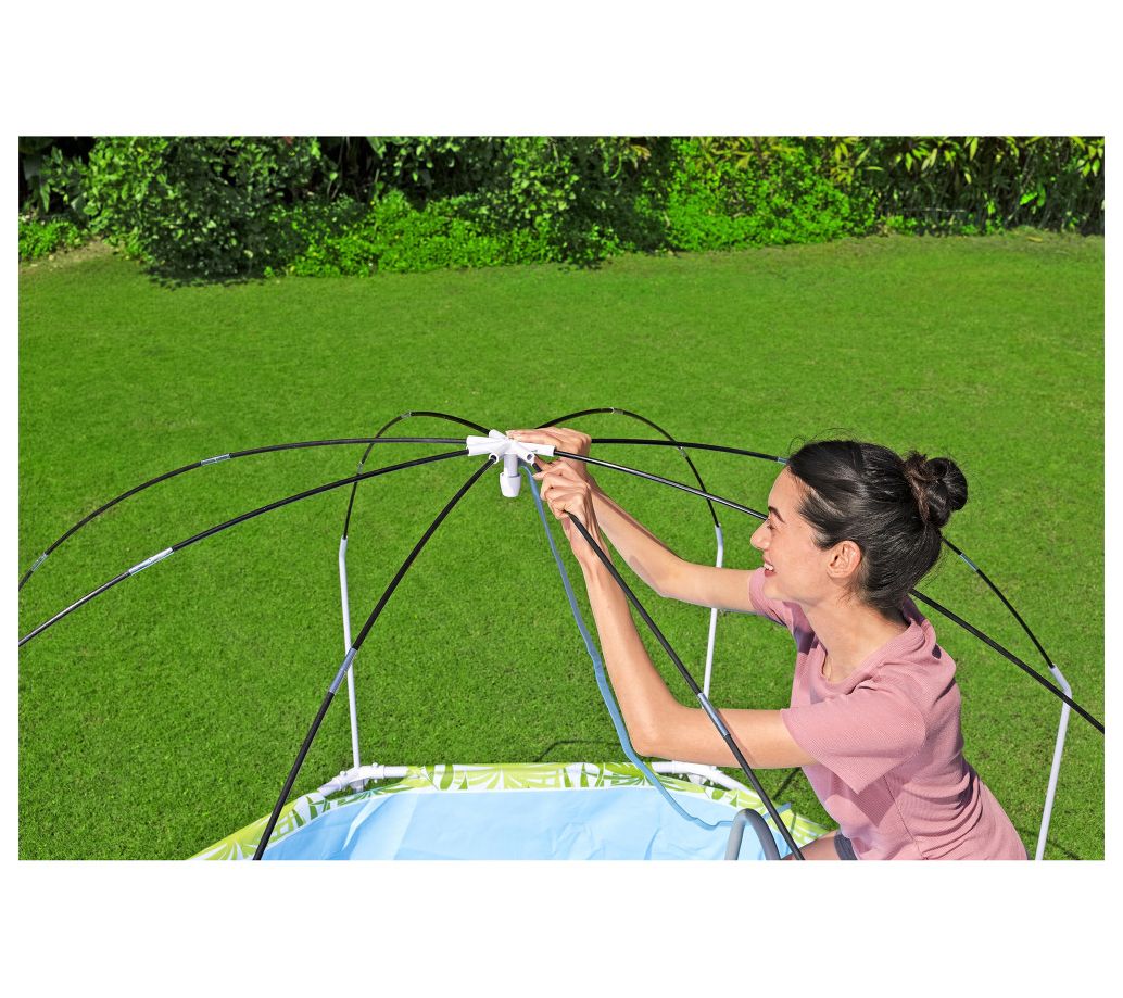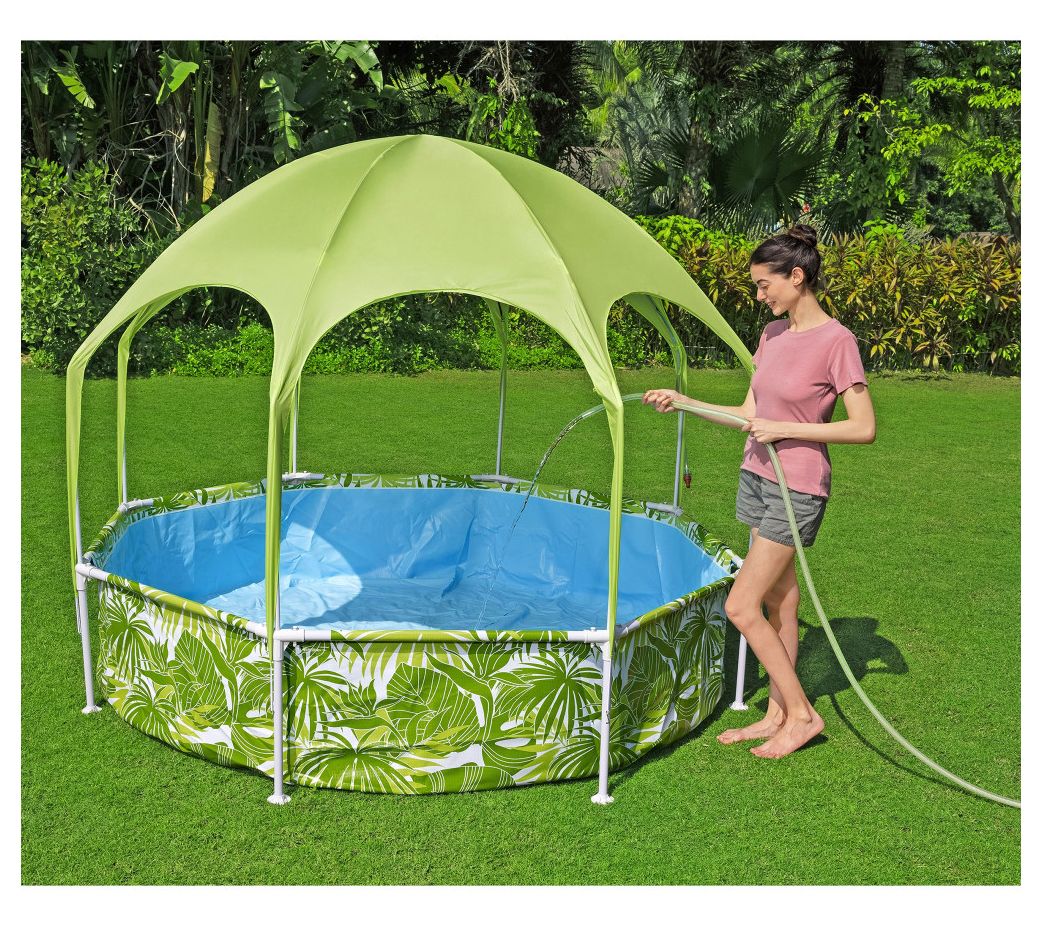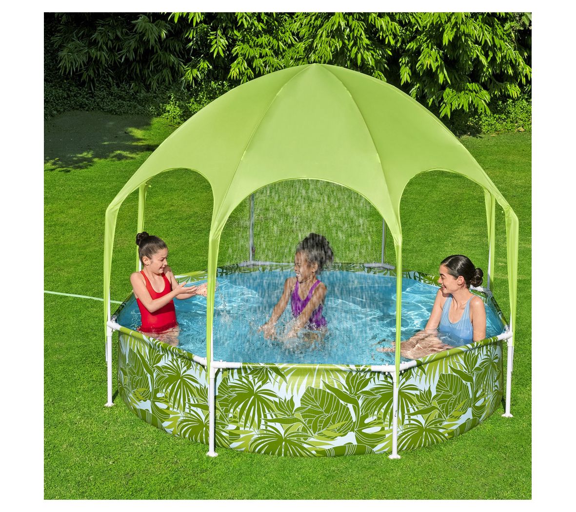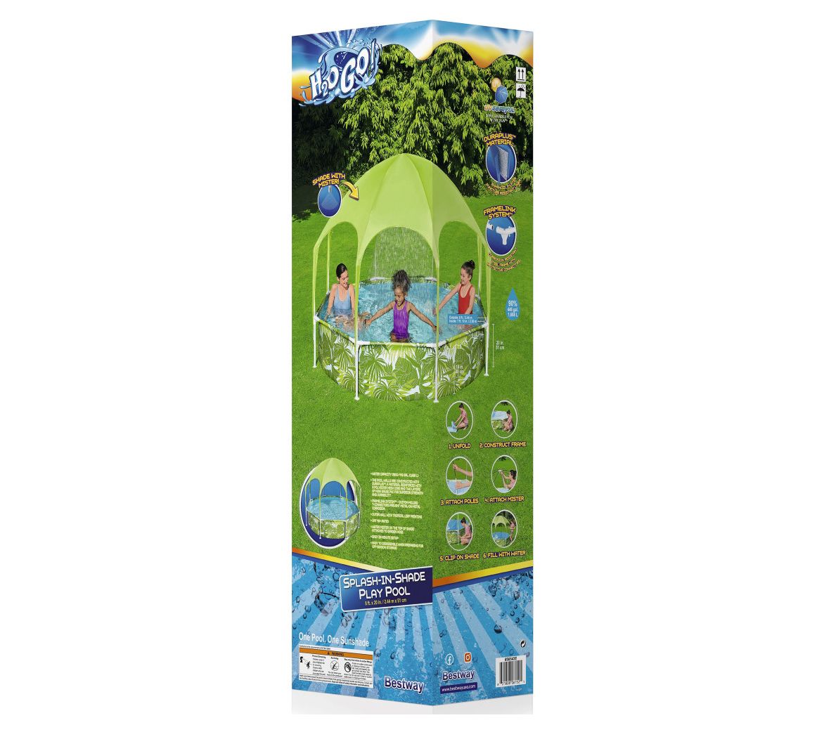 Dive into summer fun with the H2OGO! Splash-In-Shade play pool, featuring a sunshade to keep you cool and shielded from the rays. Its sturdy steel frame and DuraPlus liner ensure durability, while the mister promises that you stay refreshed all season long. From Bestway.