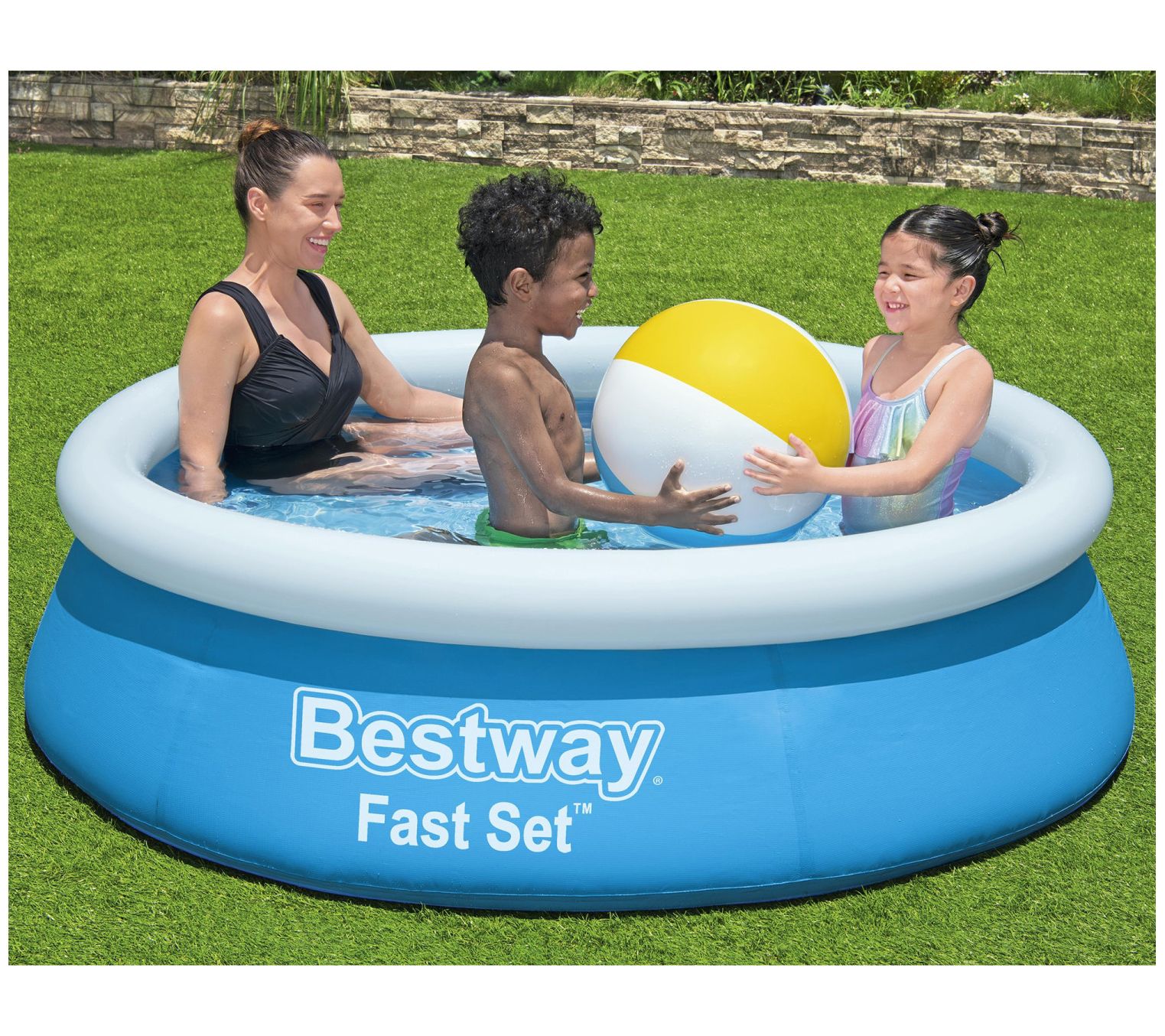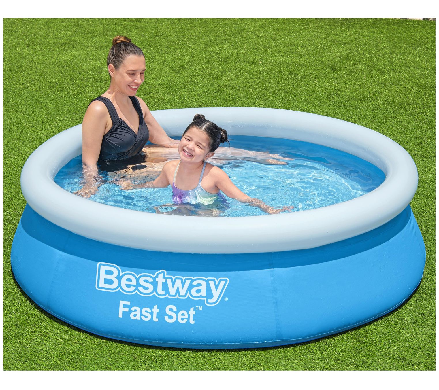 Get ready for endless splashes and summer fun with this Bestway inflatable pool. Perfect for families, this pool sets up quickly -- just choose a flat surface, inflate the top ring, and watch it rise as it fills with water. The Tritech liner, made of three reinforced layers, ensures durability, so you can enjoy the pool season after season. Kids will love diving in, while parents can take a refreshing break from the heat. From Bestway.