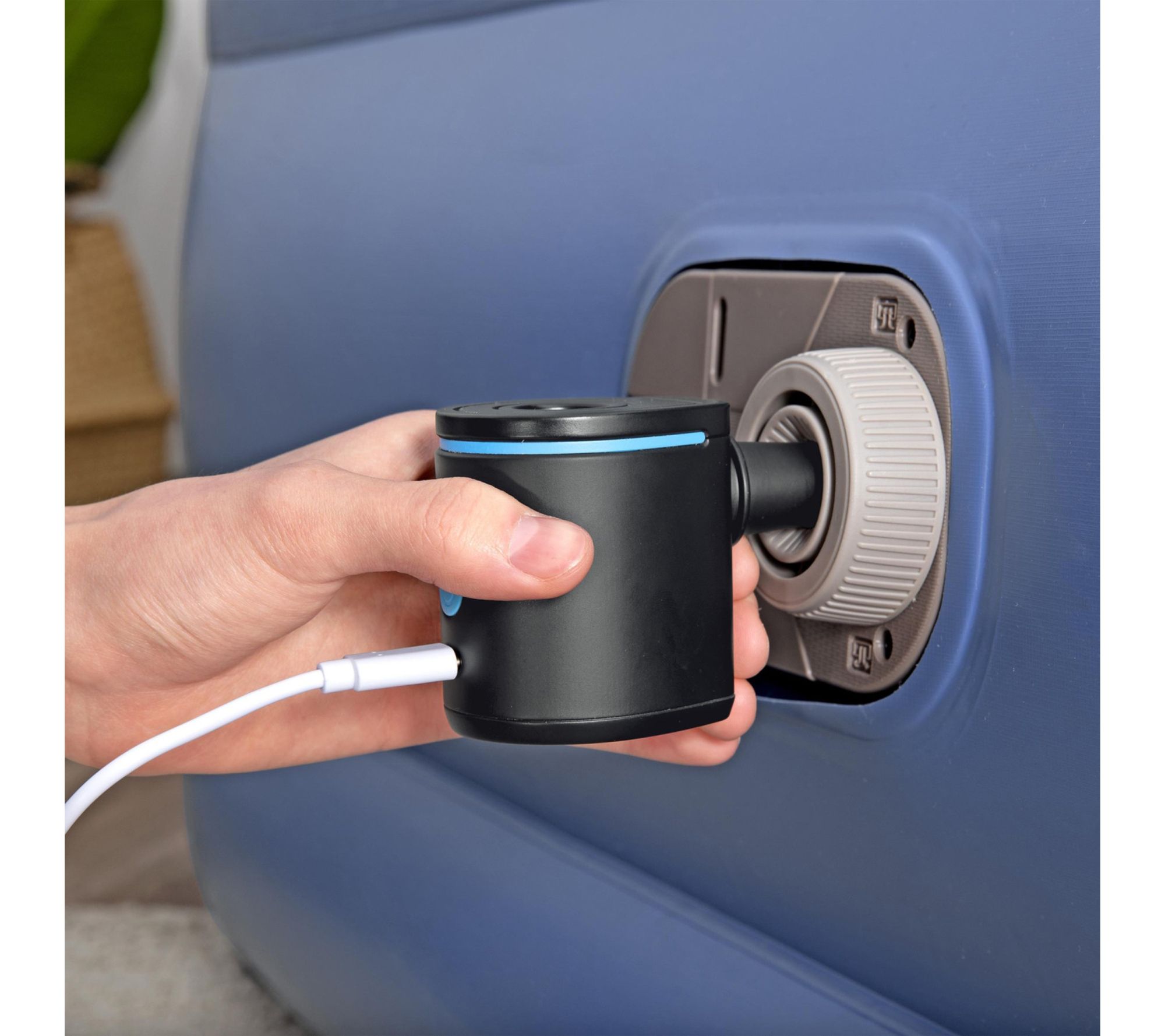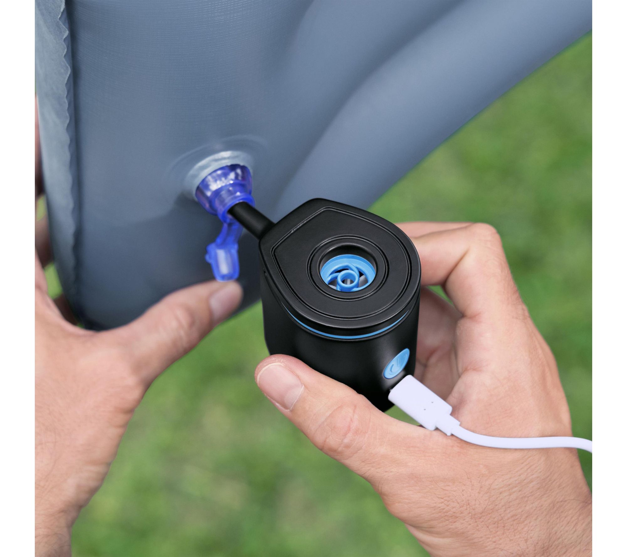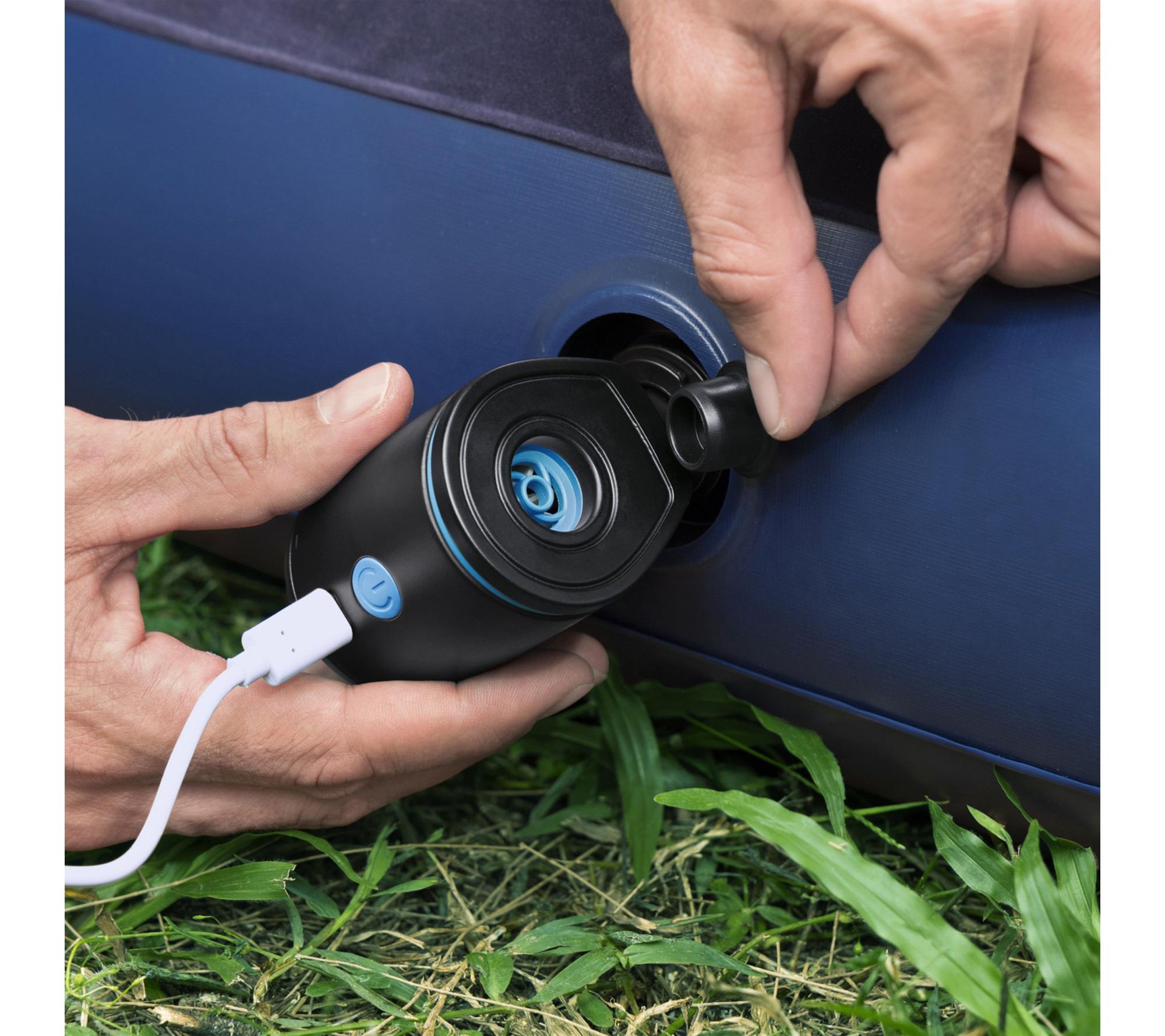 Toss this compact electric air pump into your bag and inflate camping mats, pool floats, or small toys wherever adventure takes you. It switches easily between inflation and deflation, powered by a handy USB cord -- just plug in and power up, right from a car outlet, wall plug, or battery pack. From Bestway.