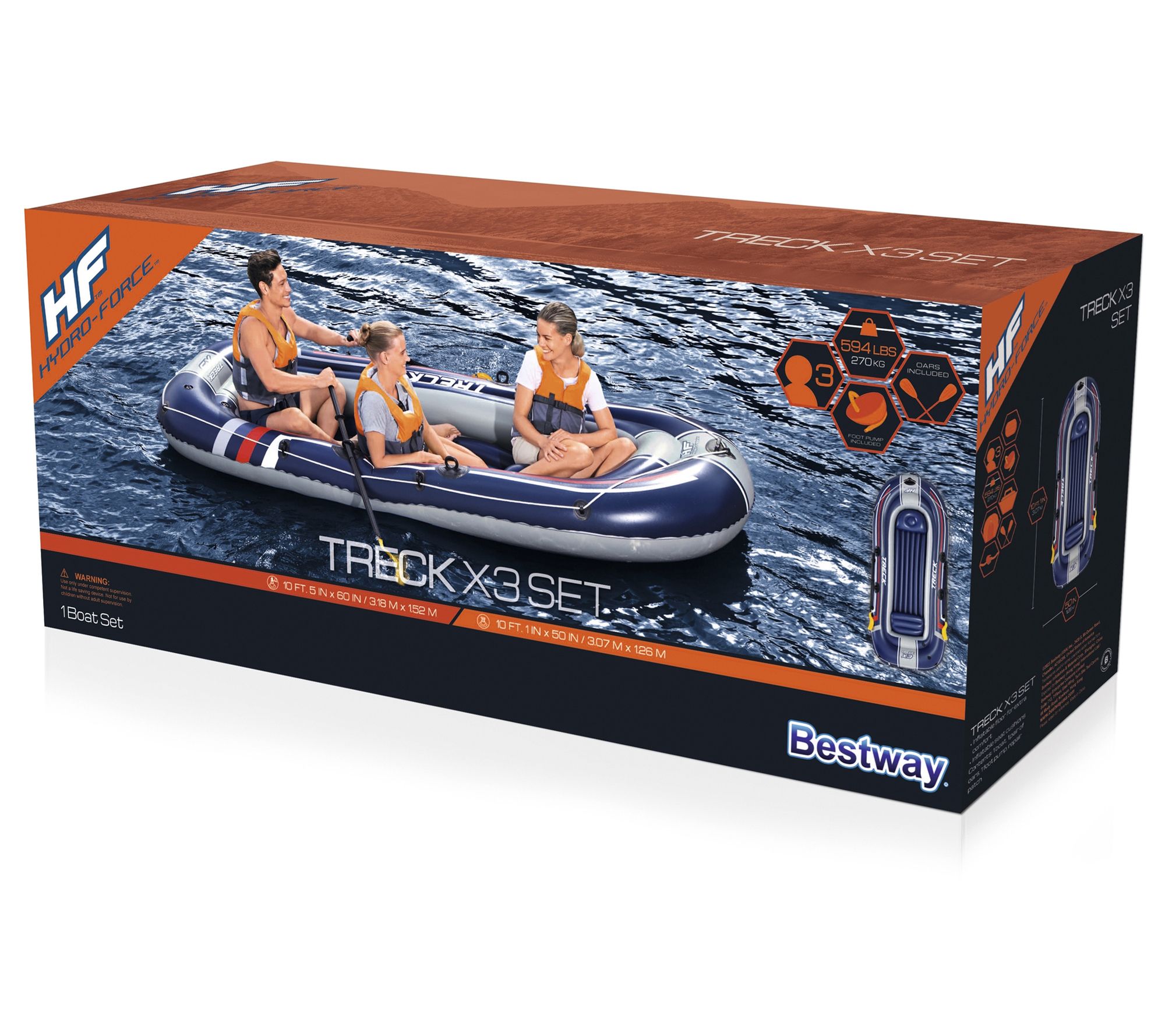 Embark on your next aquatic adventure with ease when you have the Treck X3 inflatable raft set. Designed for the outdoor enthusiast, this set includes everything you need for a day on the water, featuring sturdy oarlocks, an inflatable floor, comfortable seat cushions, and a wraparound grab rope for easy docking. Whether you're exploring lakes or rivers, the Treck X3 ensures a memorable and comfortable journey. From Bestway.